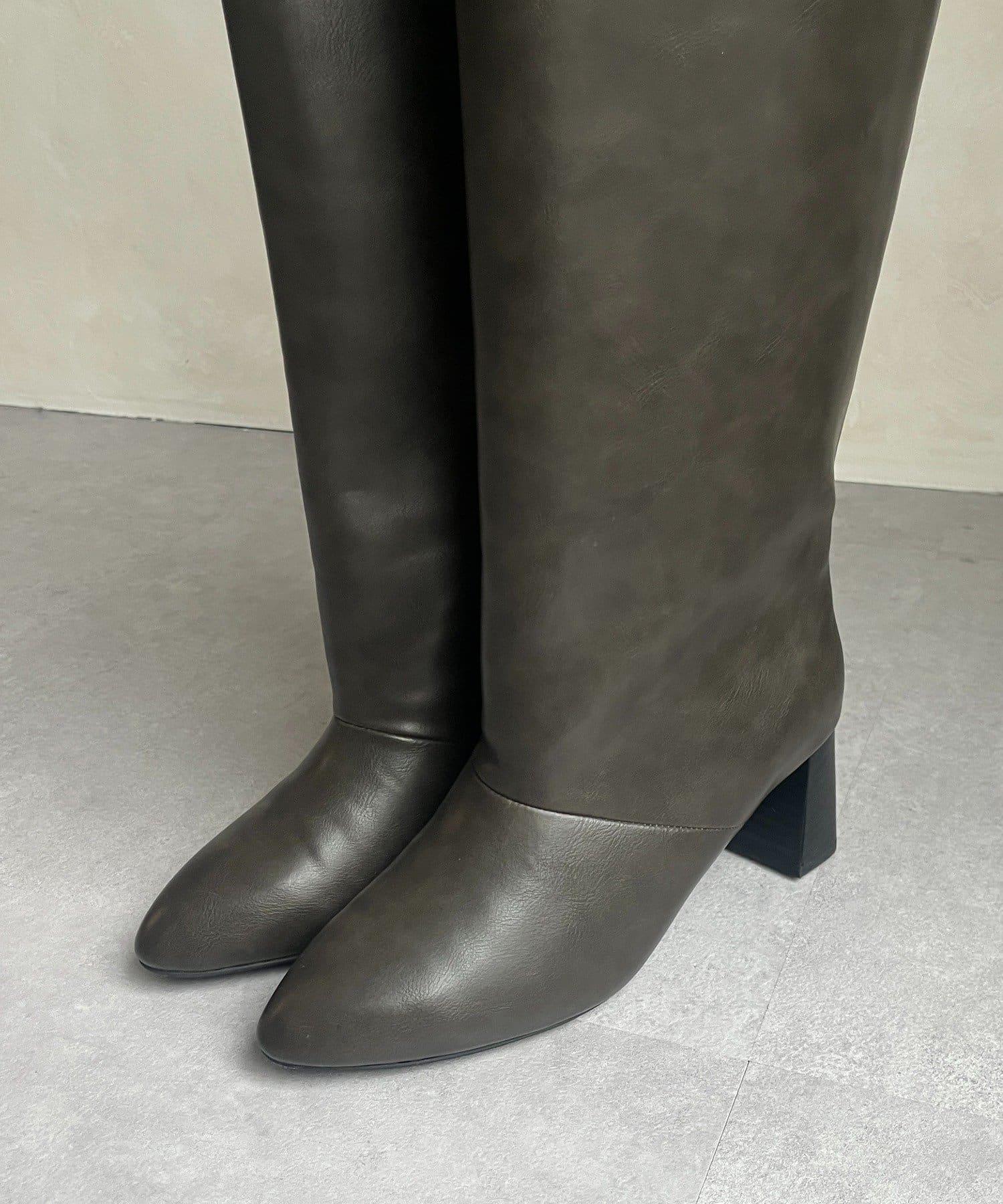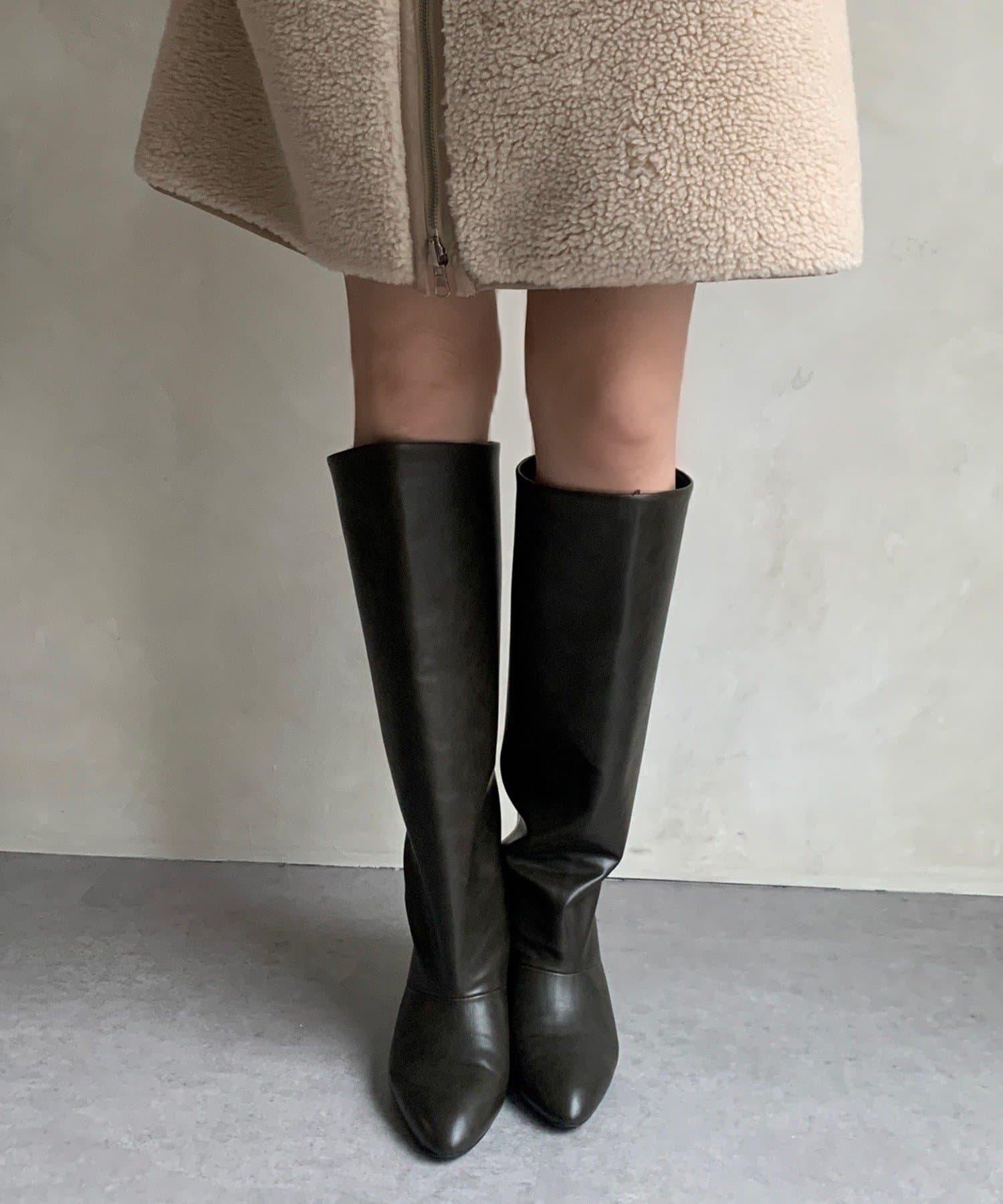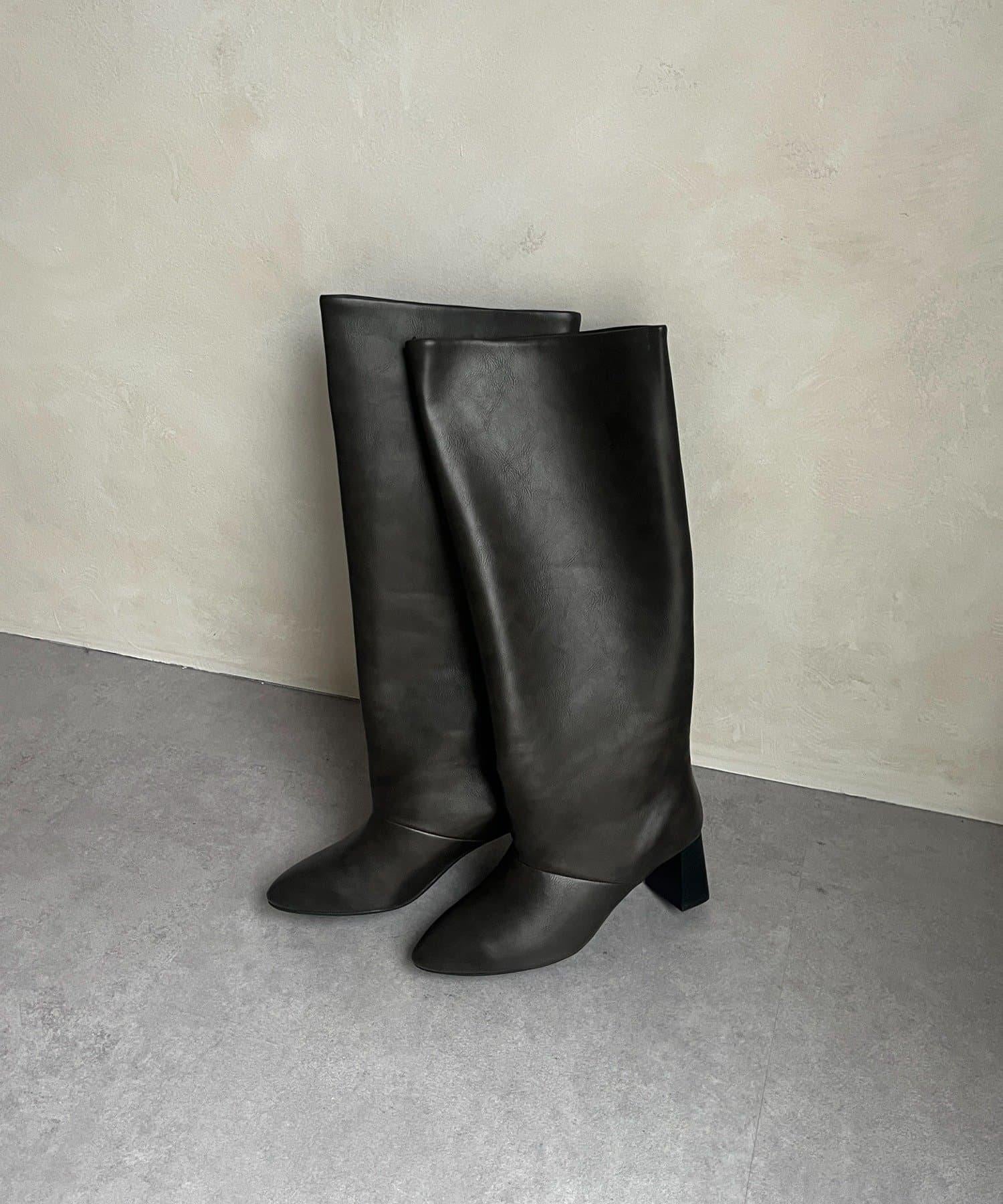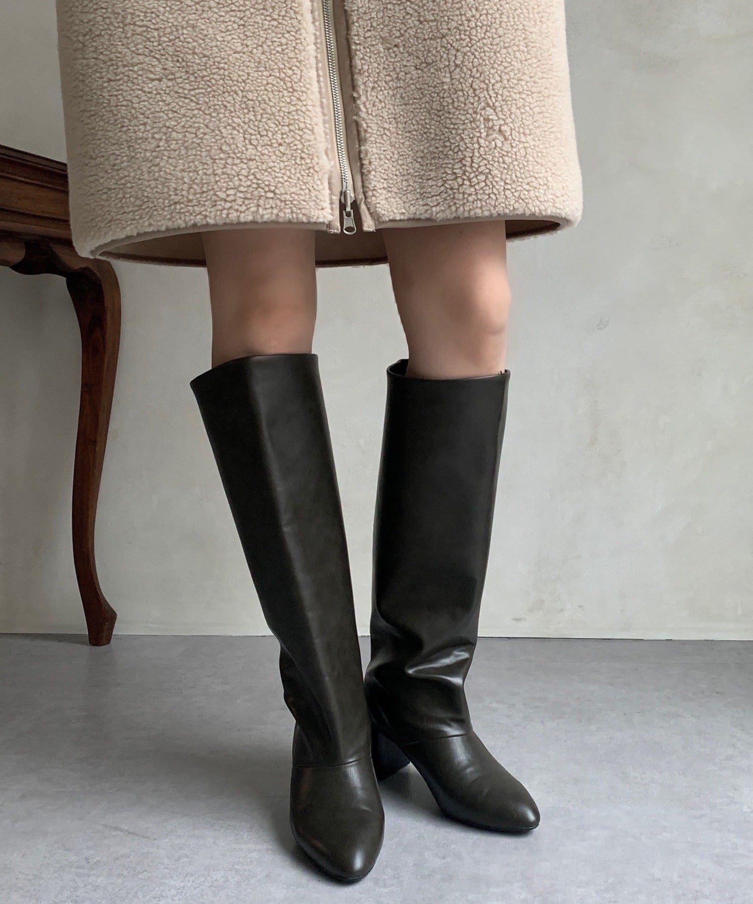 這款坡跟長靴採用了今年👍流行的粗筒設計。