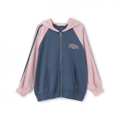 【7days】拼色寬鬆拉鍊連帽衛衣