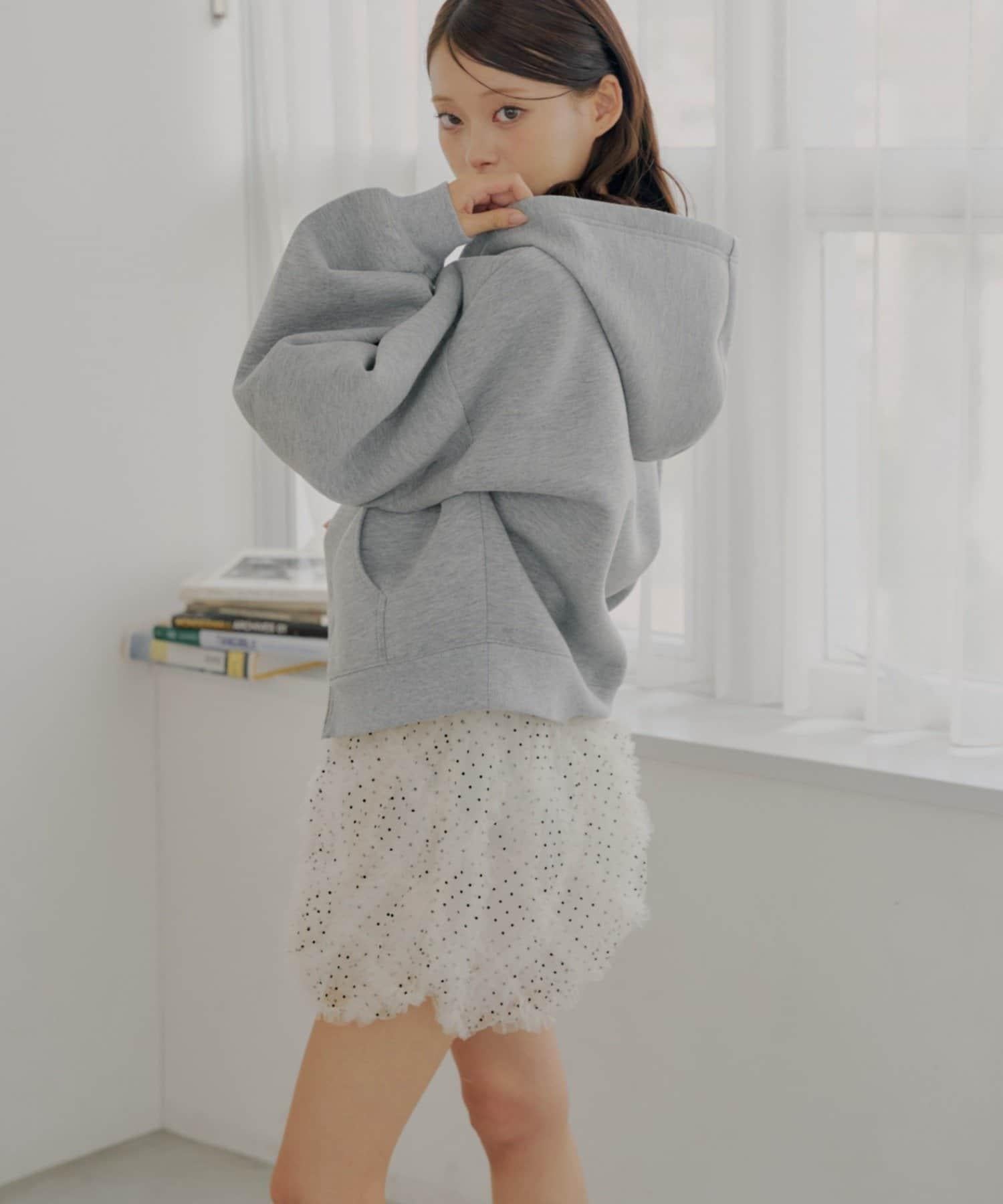 氣球廓形從下襬開始逐漸變細,同時柔軟地包裹住大腿,使雙腿看起來更加纖細。