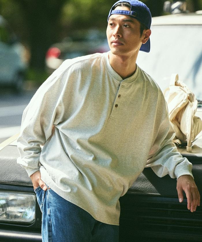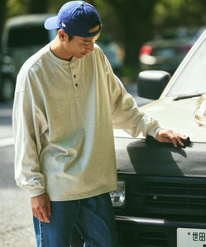 9盎司重磅寬鬆版型亨利領長袖T恤/重磅/長袖T恤