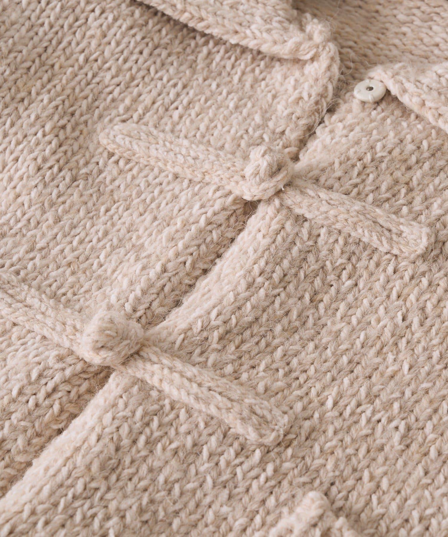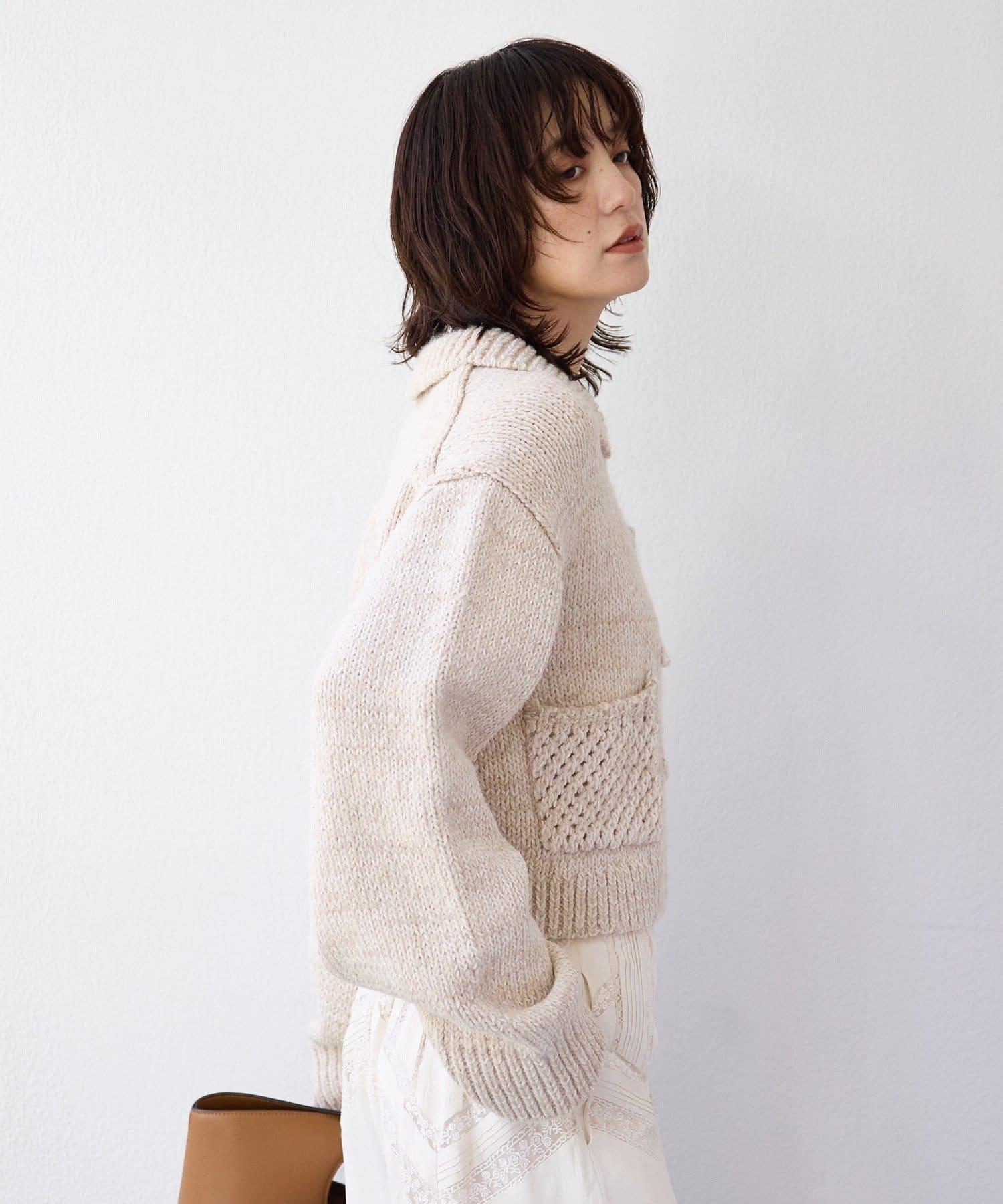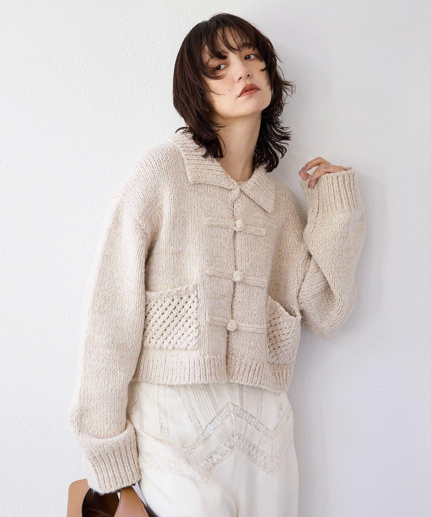 這款夾克注重細節,中國鈕釦由相同的材料編織而成,口袋則由鉤針編織物製成。