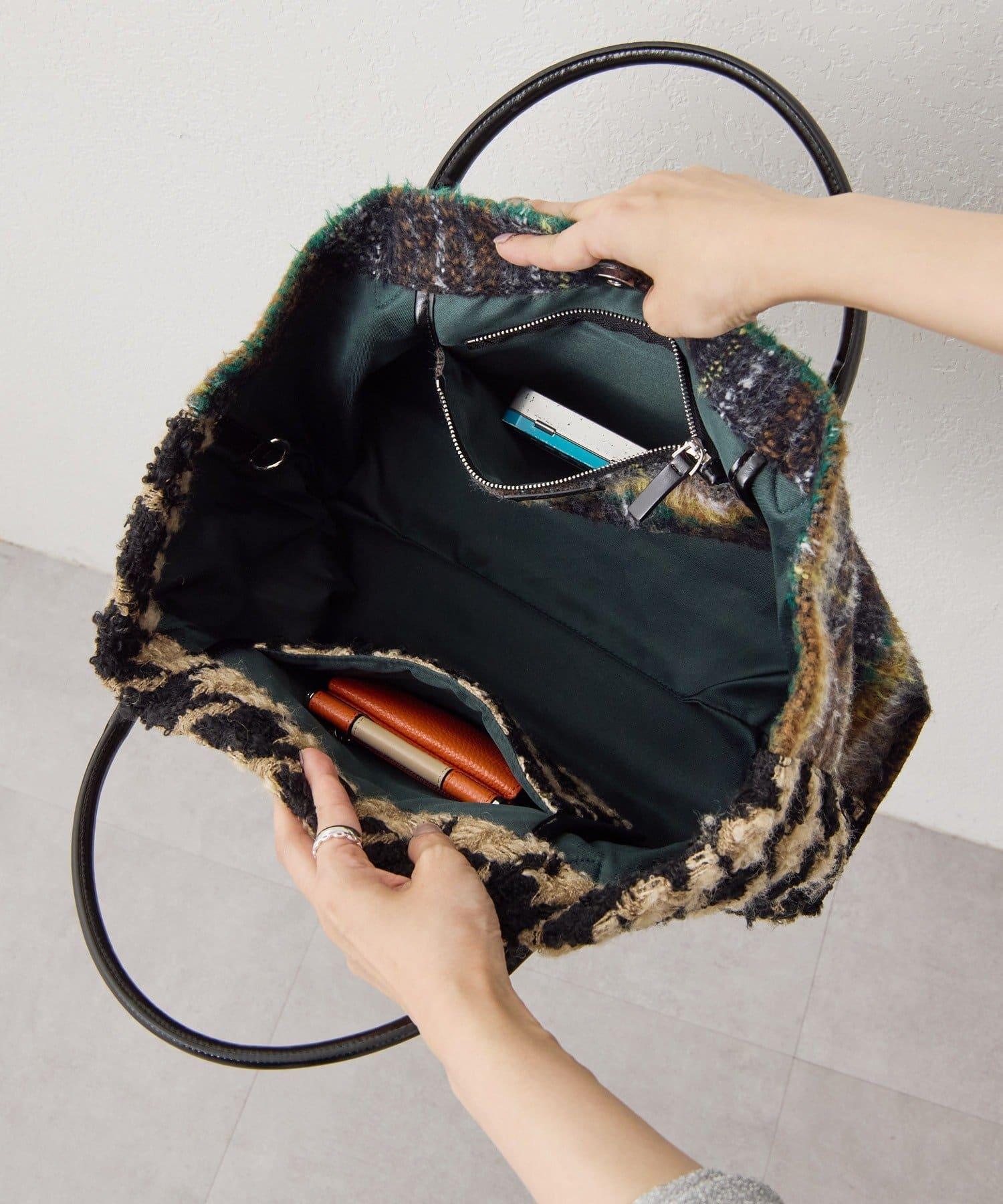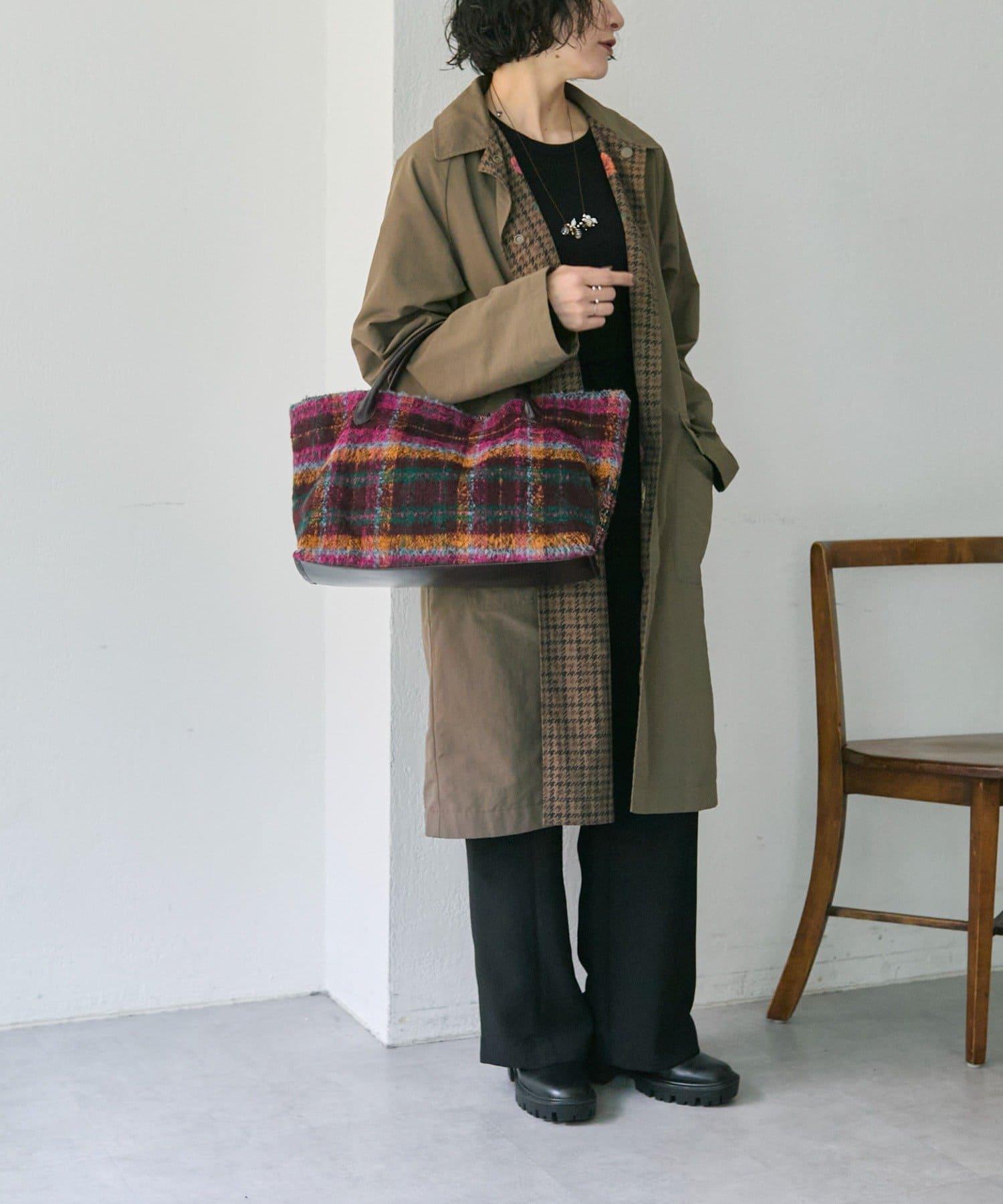 多色交織的棋盤格圖案為單調的秋冬款式增添了層次感。