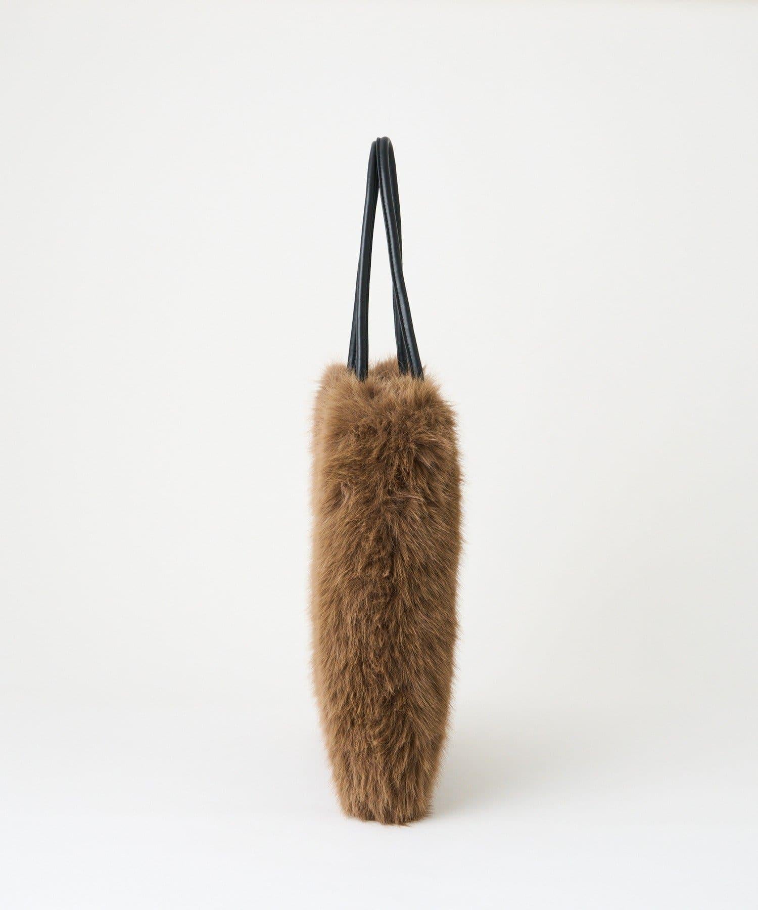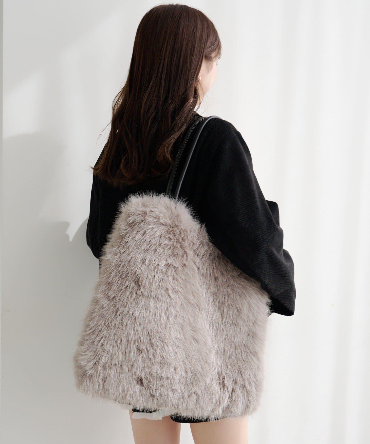 這款手提包採用蓬鬆的拉比弗材質,讓人忍不住想摸一摸。