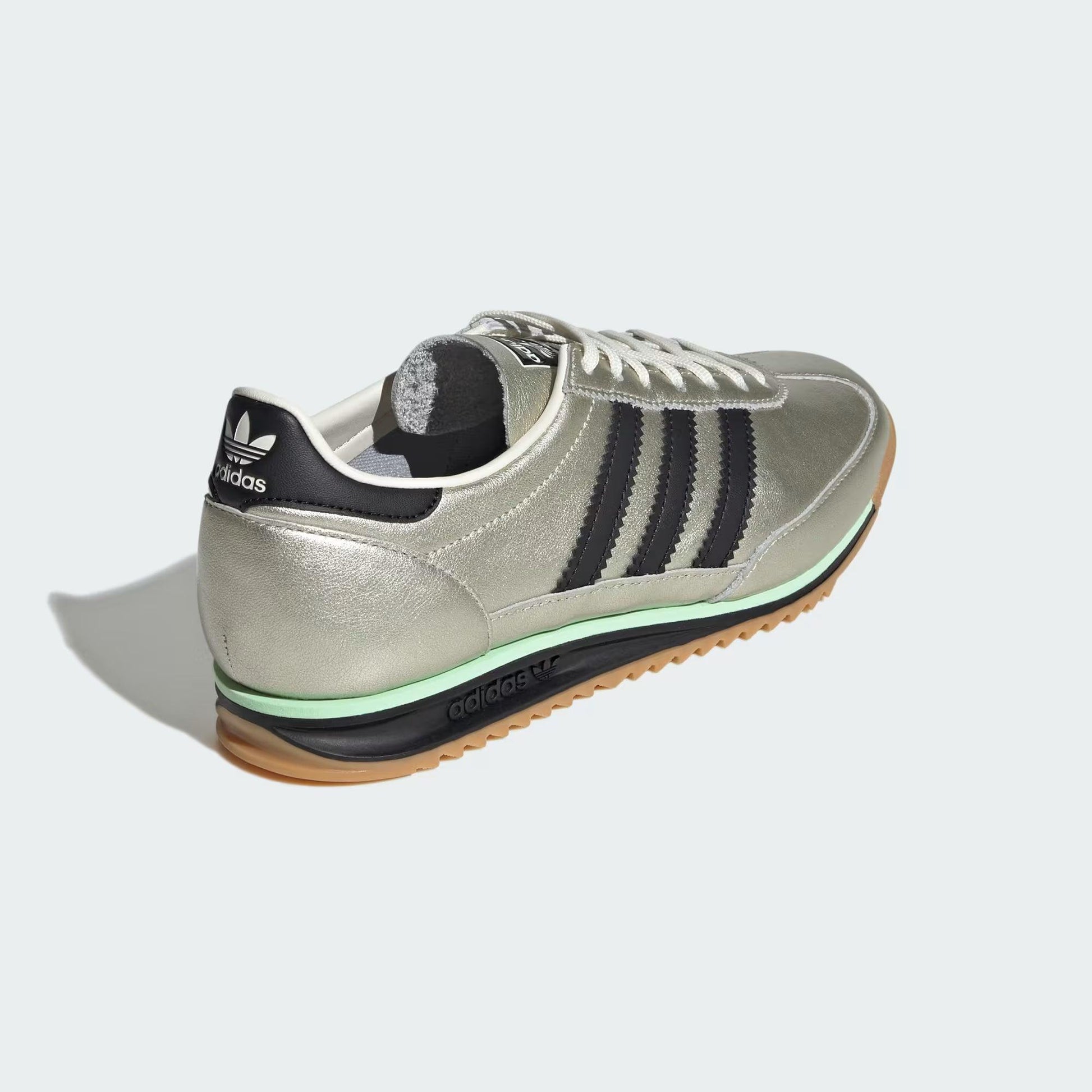 adidas SL72 訓練鞋自 1972 年推出以來便創造了歷史。SL "代表超級輕量化,這一先鋒概念拓展了鞋類的可能性。這款訓練鞋經過重新設計,以現代風格體現了原版鞋的創新精神。金屬質感的皮革鞋面上點綴著經典的皮革三條紋和後跟標籤,這是對運動品牌傳統的致敬。合成纖維(EVA)中底和橡膠外底增添了現代氣息。