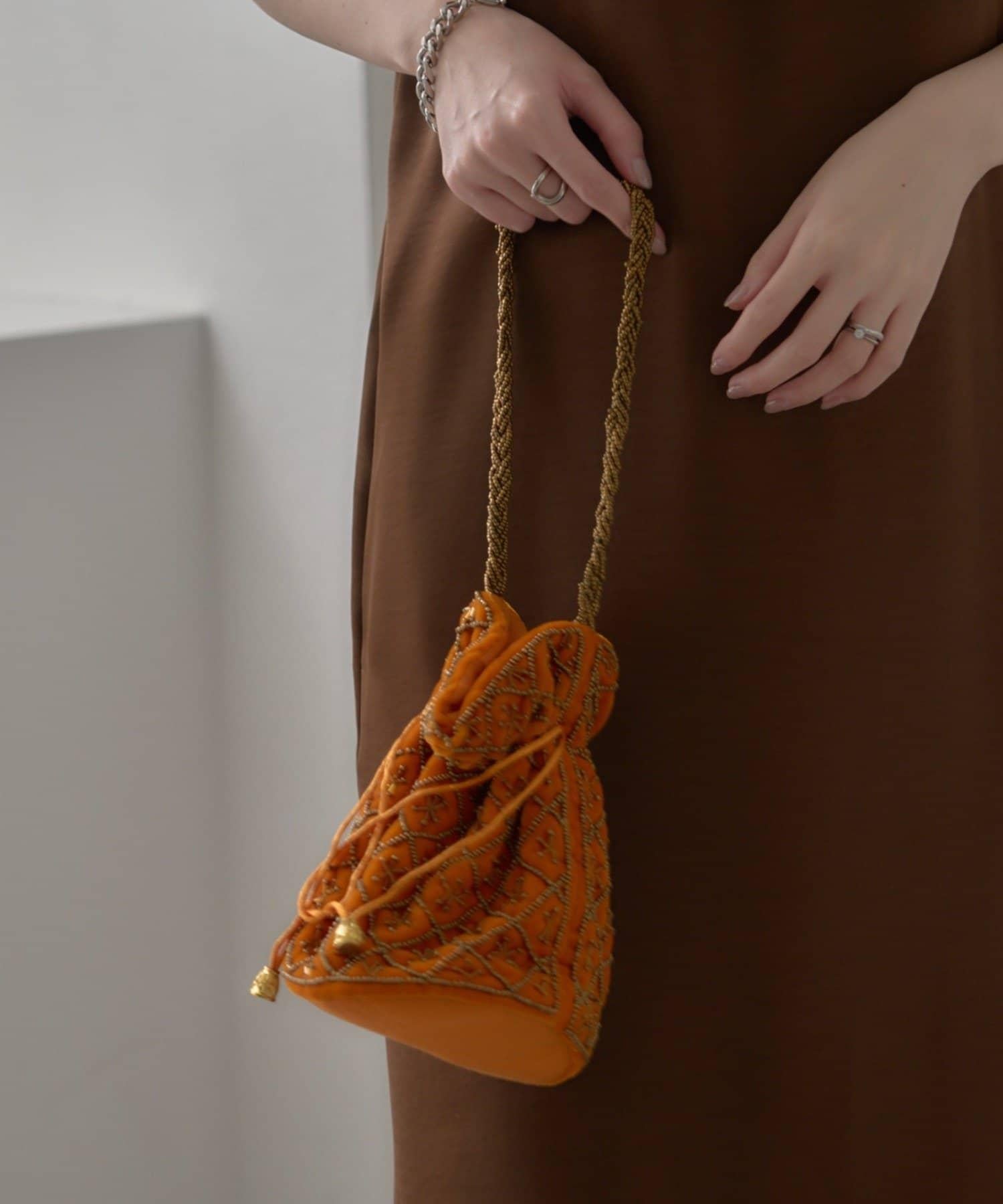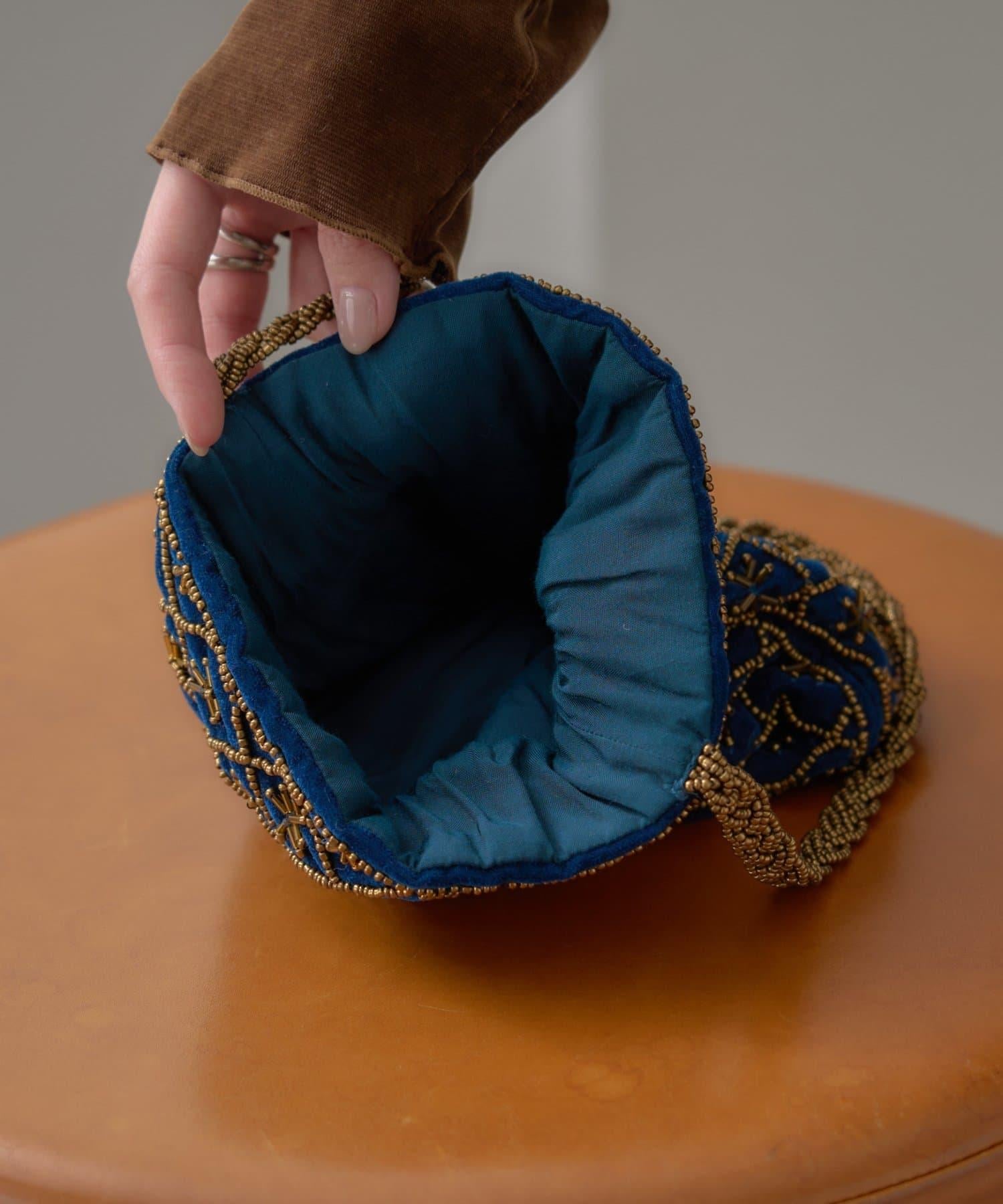 用珠子編織的手柄非常醒目,抽繩式的封口營造出一種古典的可愛感。