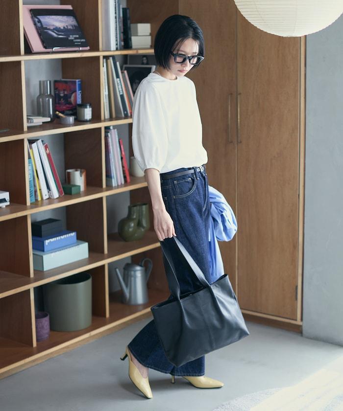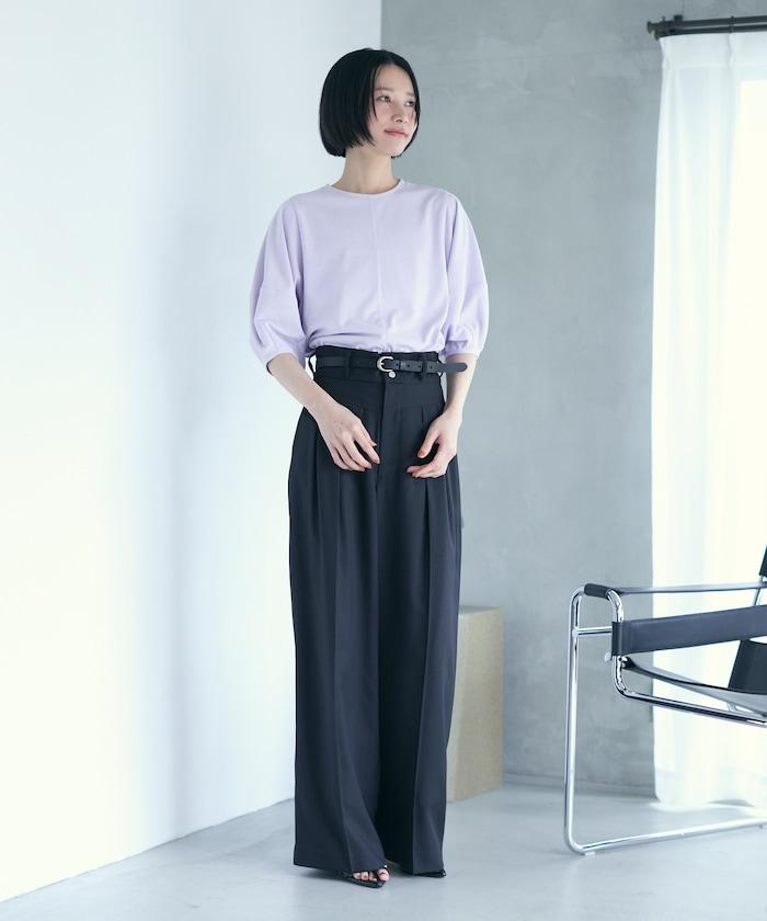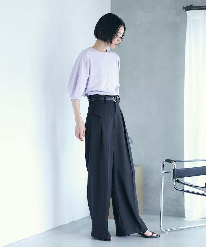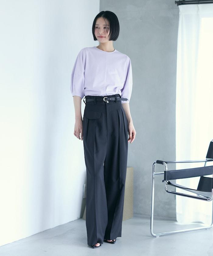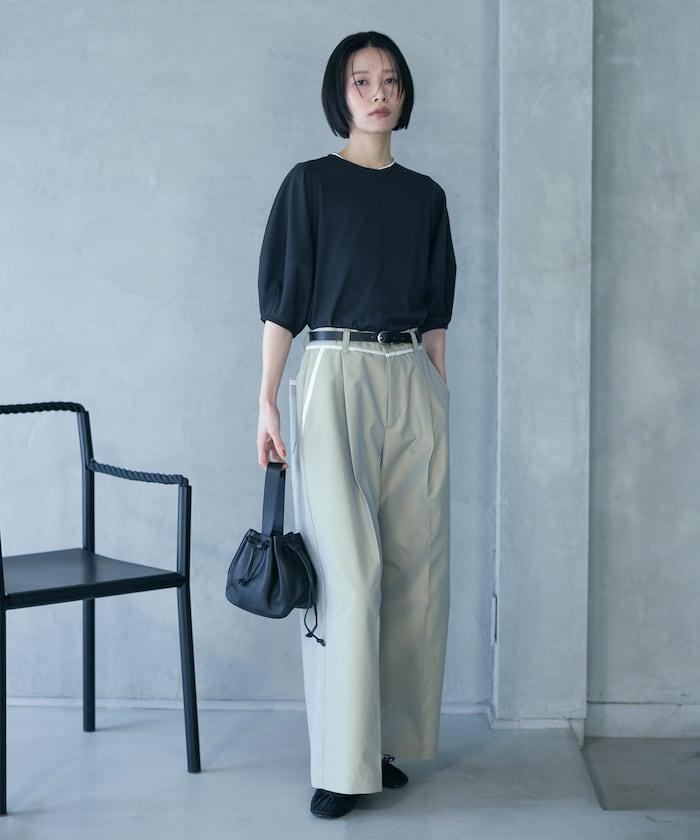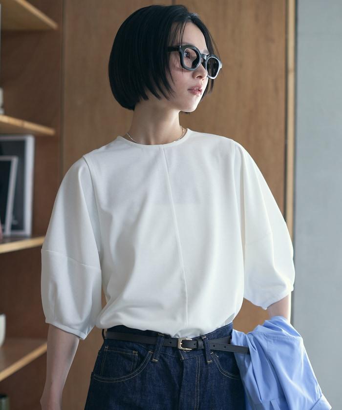寬鬆的廓形非常適合日常穿著,下襬的尺寸也可以自由選擇。因此,它適合搭配休閒褲和裙子等多種搭配。T 恤傾向於休閒,但該單品的設計很有女人味,因此建議搭配休閒褲或亮色短裙,更顯休閒風格。