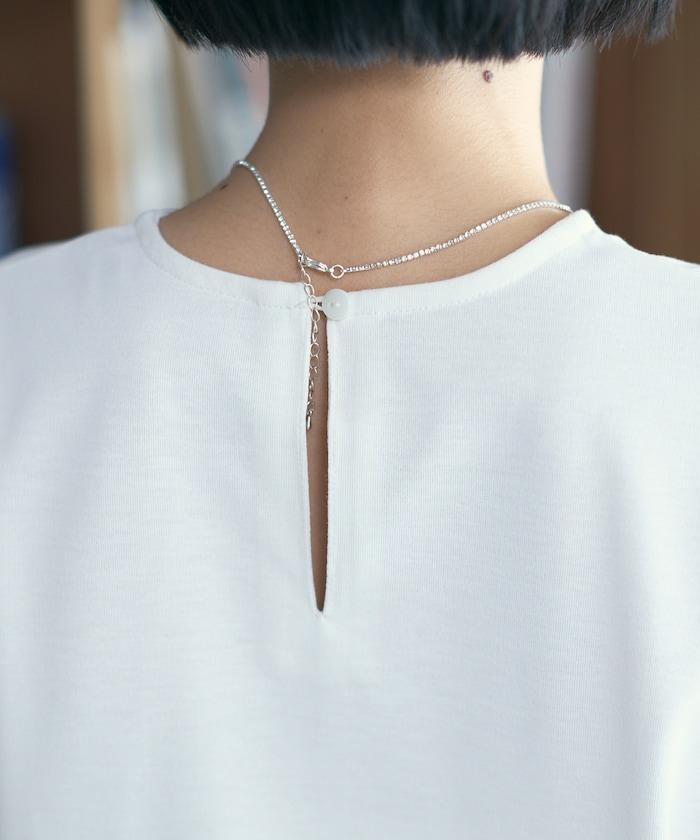 後頸部的紐扣是一個亮點,即使是剪裁縫製的 T 恤,也給人一種整潔的感覺。