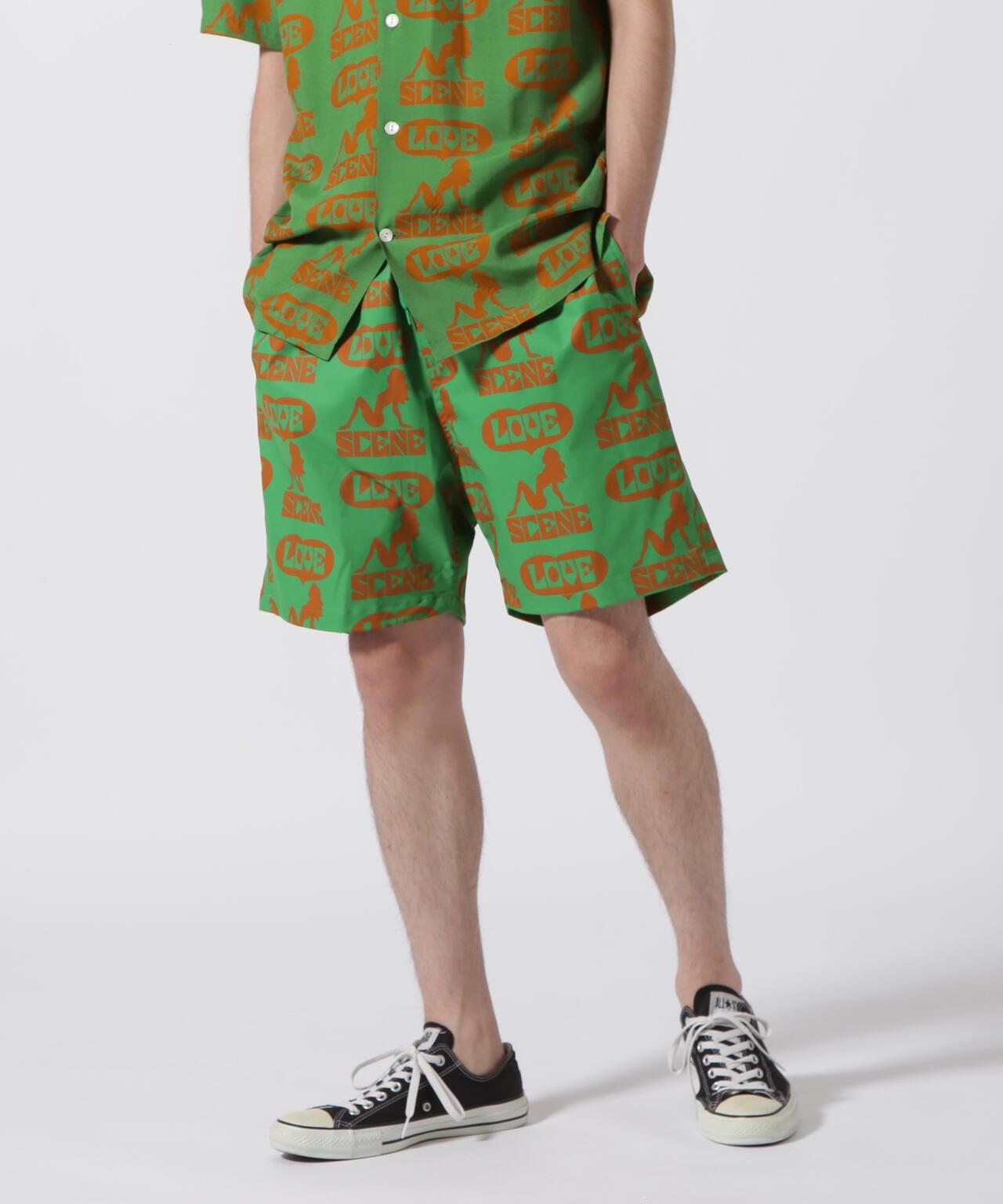 Aloha Blossom / Aloha Blossom / Love Scene 沙灘短褲沙灘短褲Love Scene:海陸皆宜的多功能短褲。ON AIR "原創紡織品 "Love Scene "由 NONCHELEEE 設計。ON AIR "創意工作室由 NONCHELEEE 和 KYNE 於 2017 年成立。 縫製也是在日本完成,精心剪裁。 附贈的彩盒讓人聯想到翠綠的大海和仲夏的天空。 與 Aloha Blossom 的夏威夷襯衫不同的染色技術。襯衫。