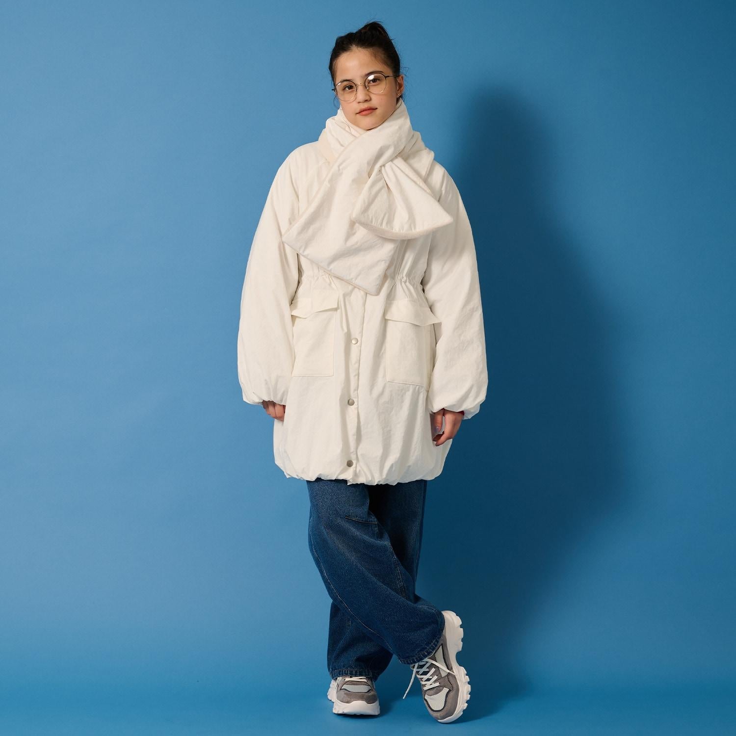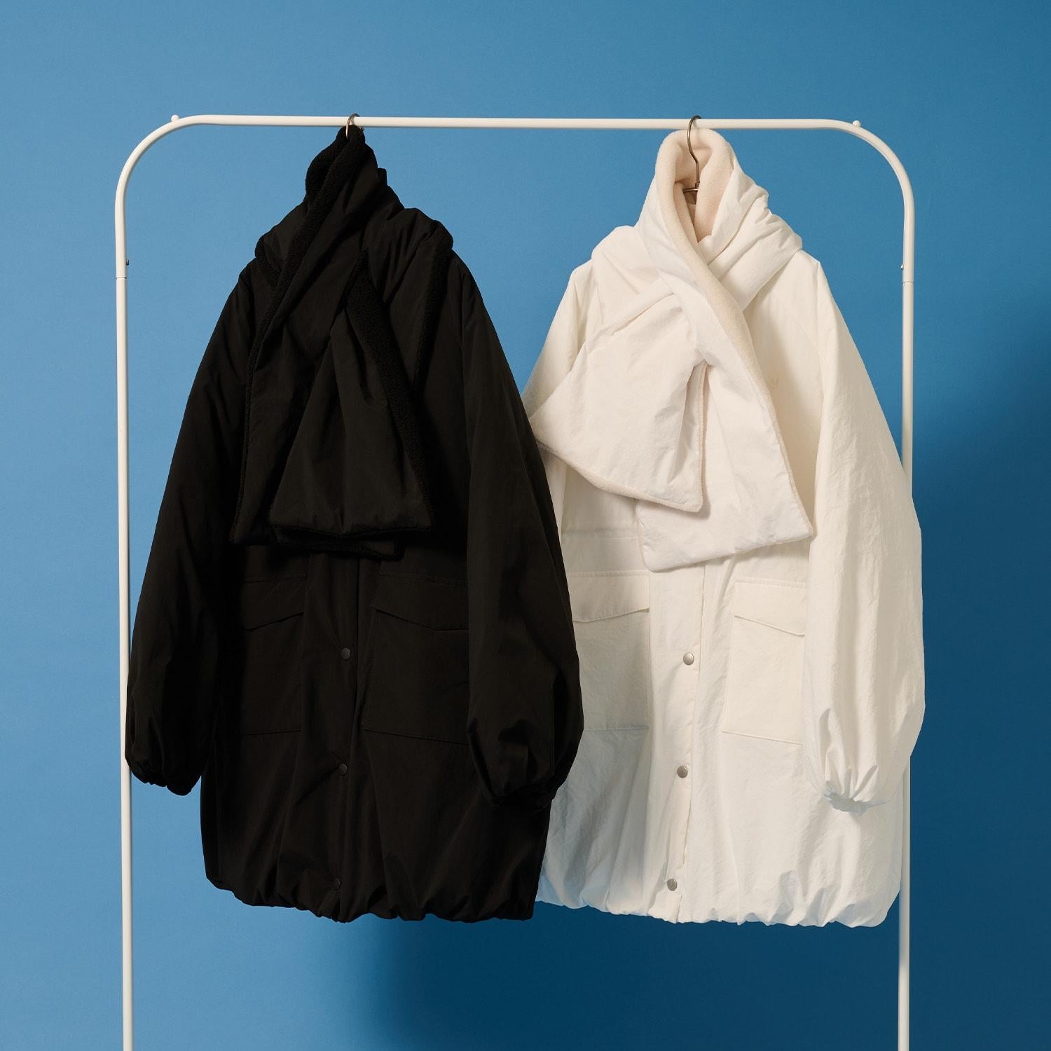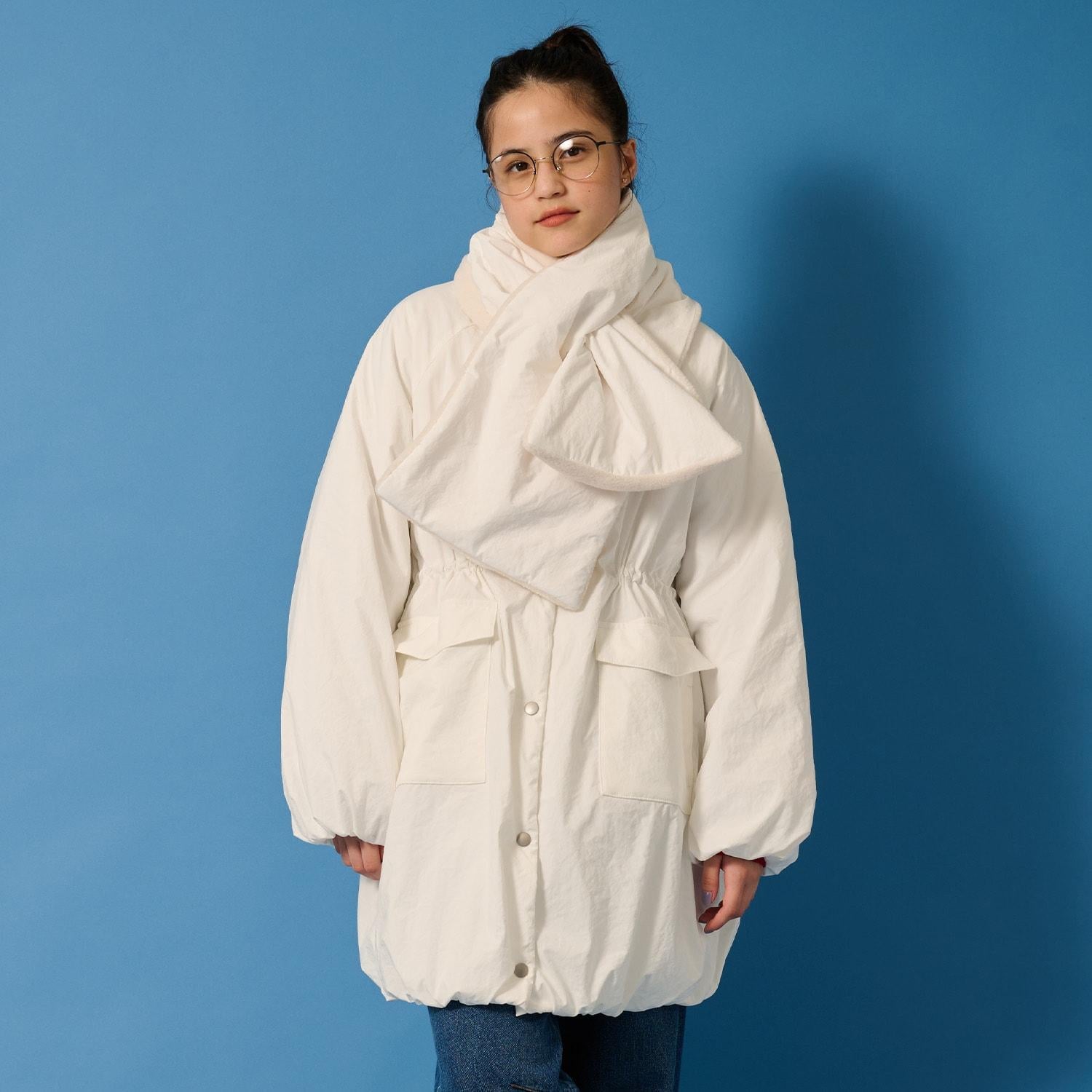 【AMI】【防潑水】附圍巾中棉泡泡袖大衣