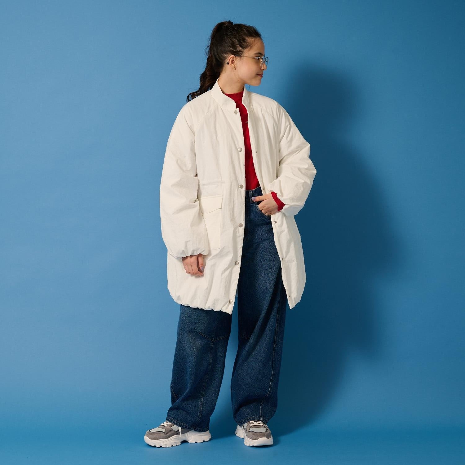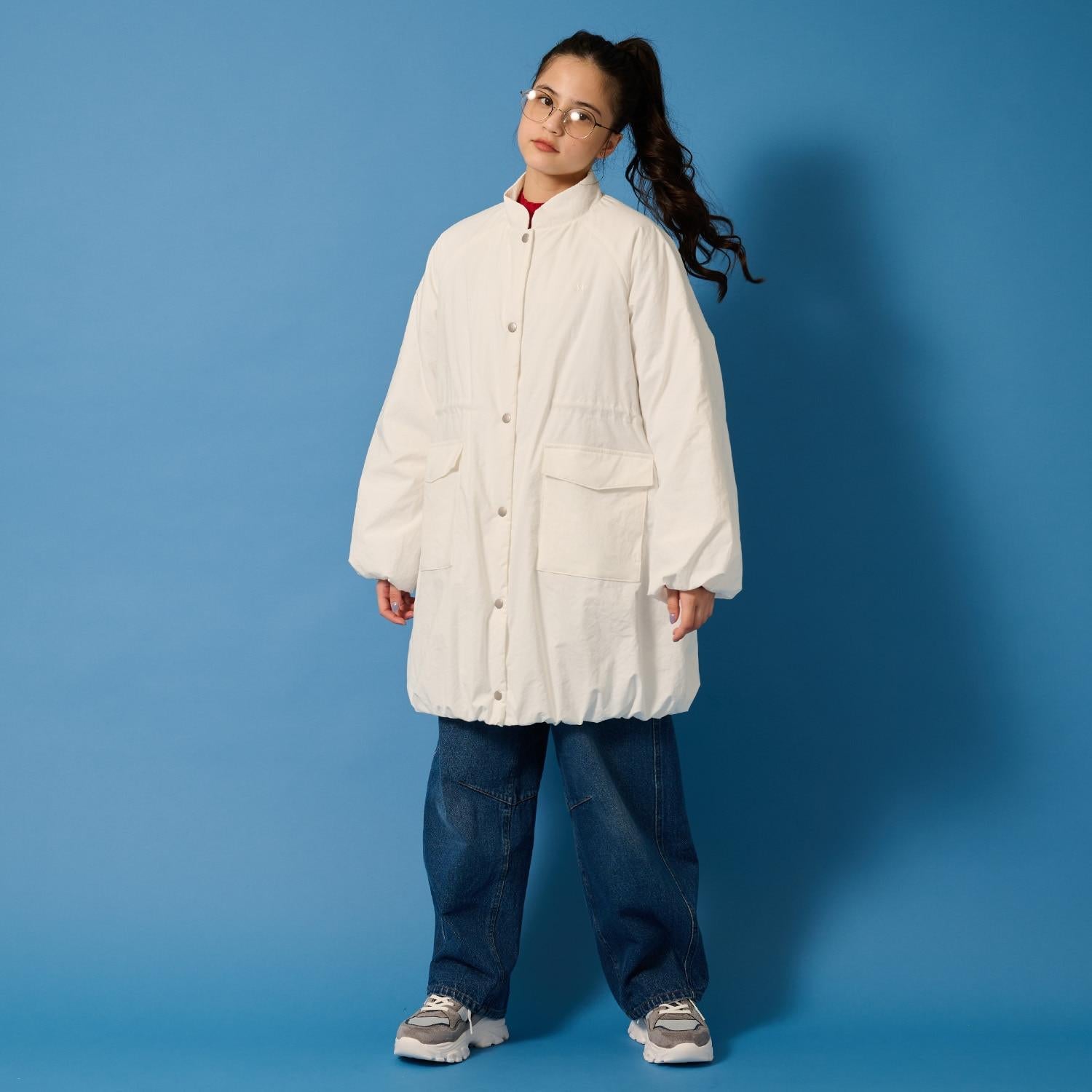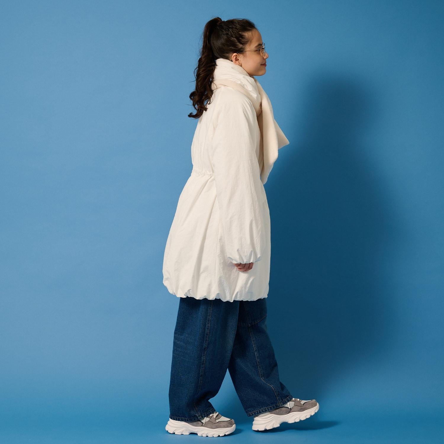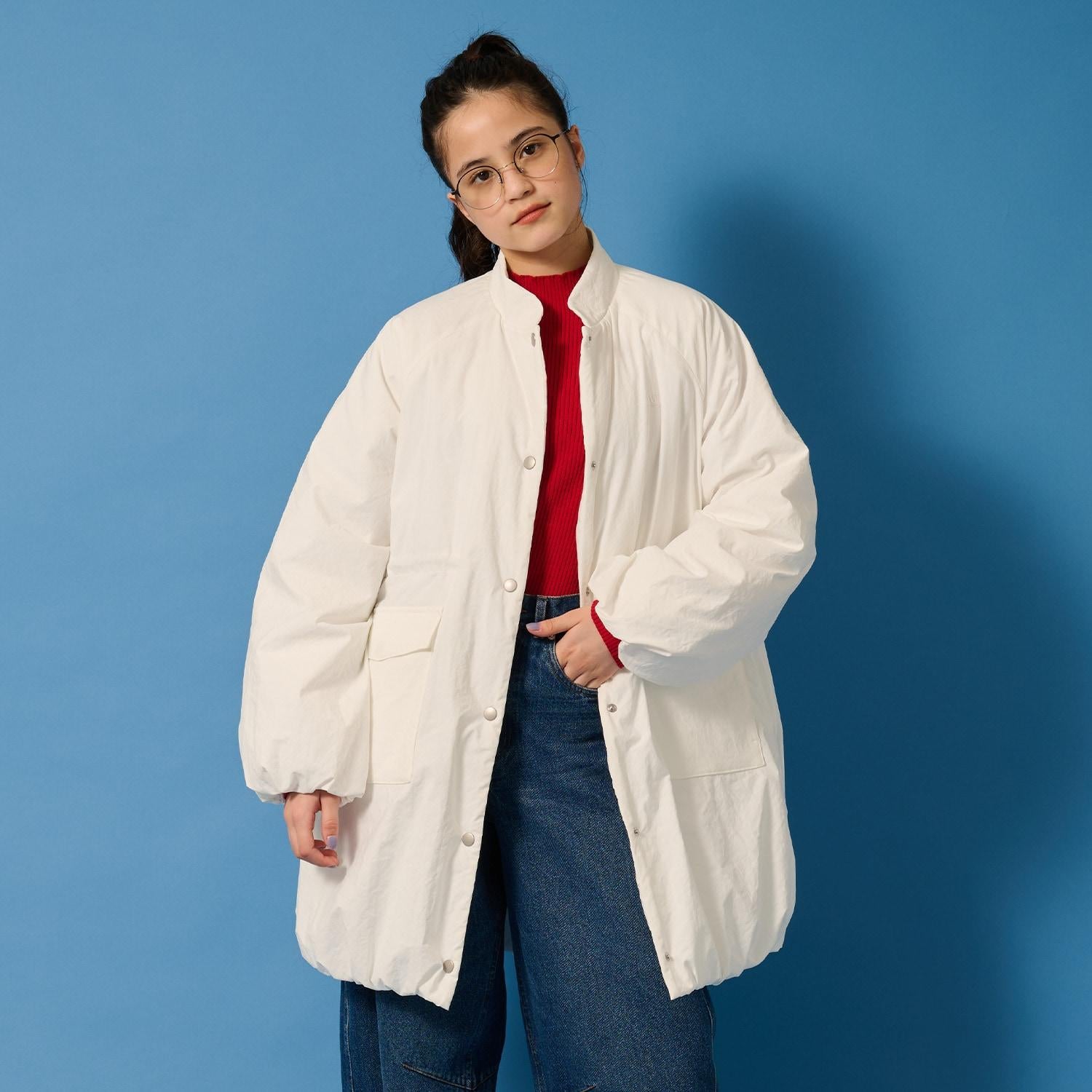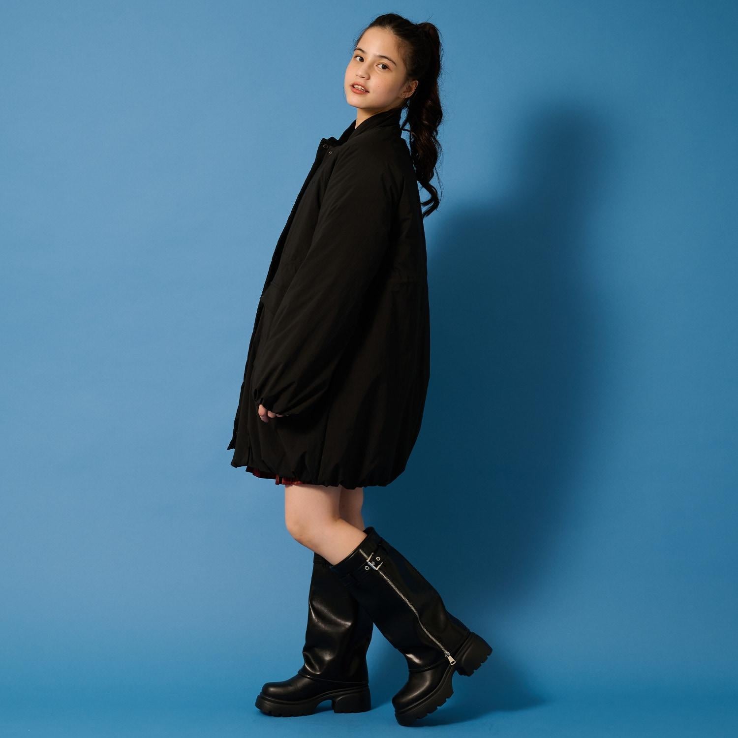 這款帶褶邊的氣球大衣有著可愛的圓形輪廓。