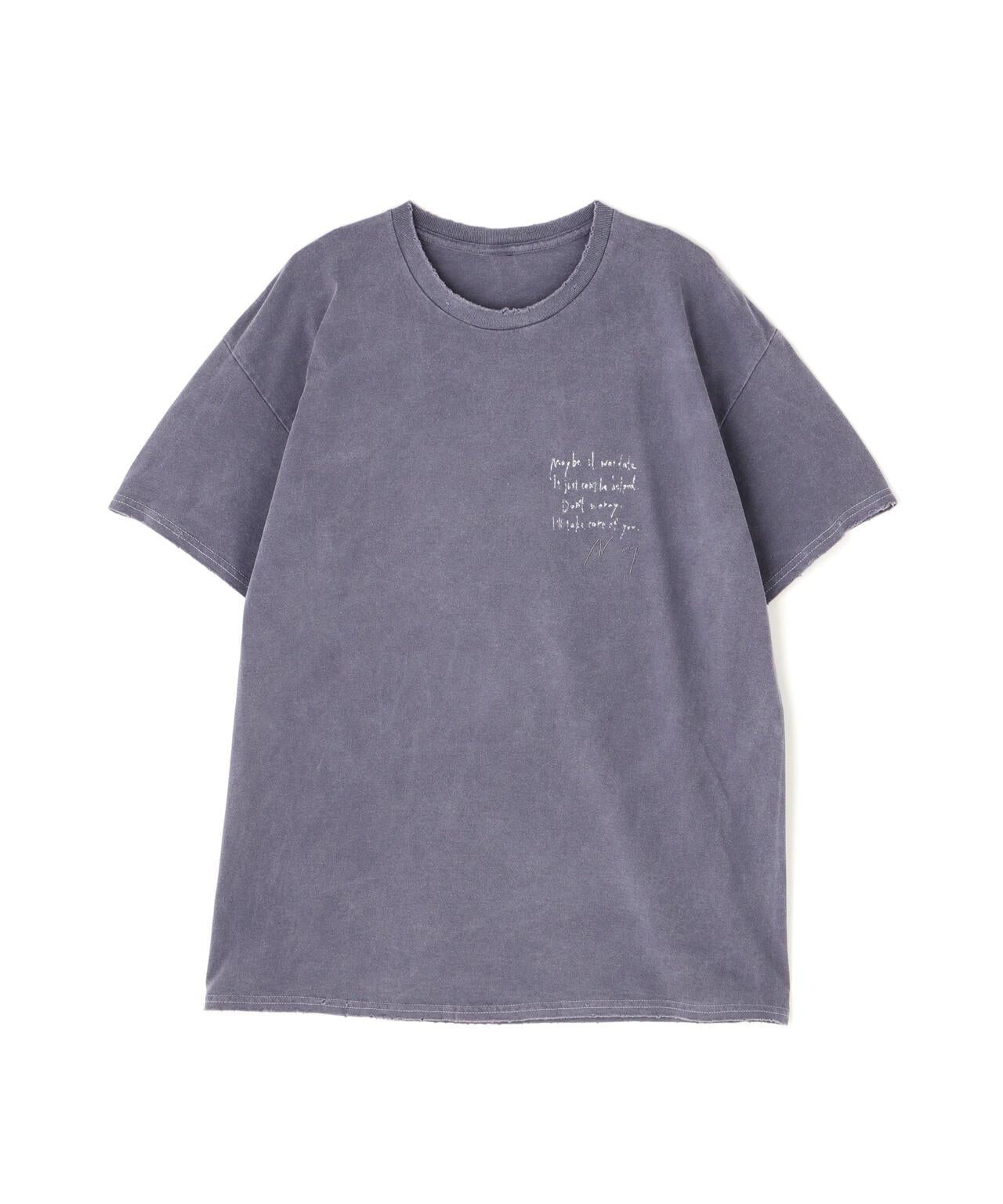 ANCELLM / ANCELLM / MESSAGE T-SHIRT 短袖T恤,印有我們在春夏系列中繼續生產的深色染色圖案。褶皺、表情和版型適合任何體型。這次取消了頸部的孔洞,使穿著更加方便。這件衣服上印有一段話,以消除女孩在另一個世界冒險時的焦慮。我手寫了一些我👍喜歡的幻想中的臺詞,這也是這件作品的主題。為了讓圖案像一件破舊的 T 恤一樣貼合,我對 T 恤整體的顏色進行了微調,並散佈了一些破損,以營造層次感。這種意境就像舊衣服,但又不像舊衣服。我們認為