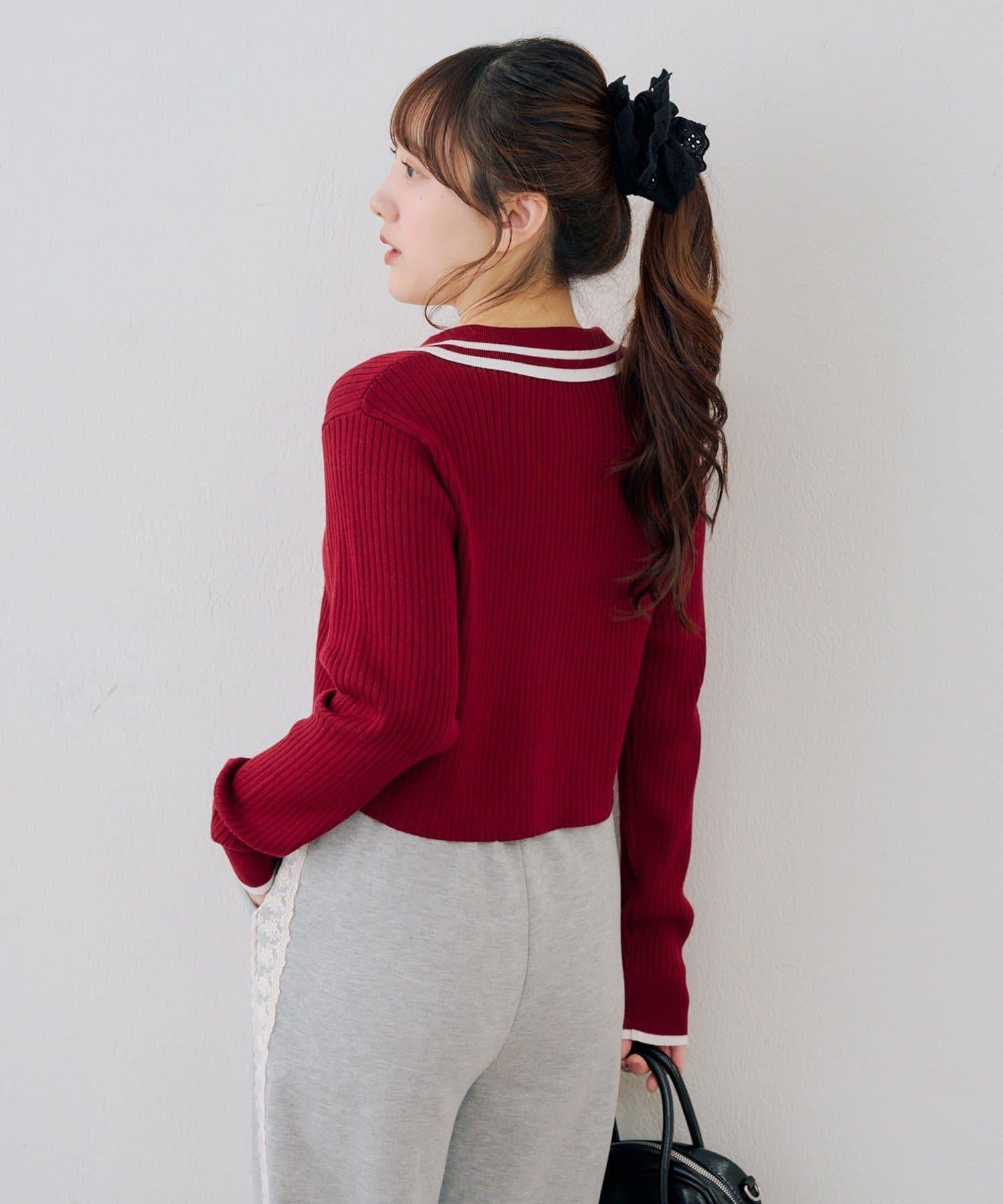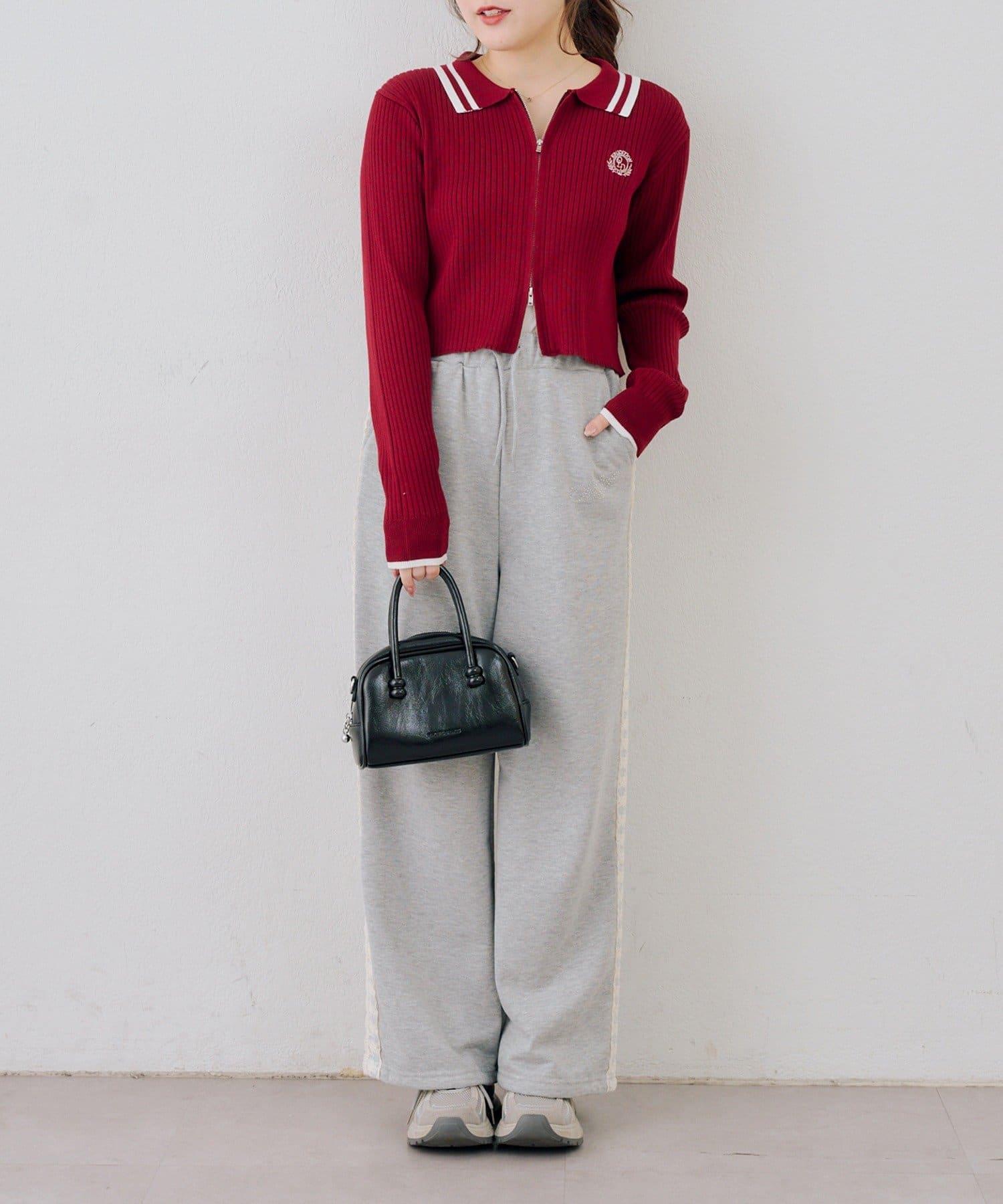 胸前的刺繡徽章為這款開襟羊毛衫增添了一絲優雅。