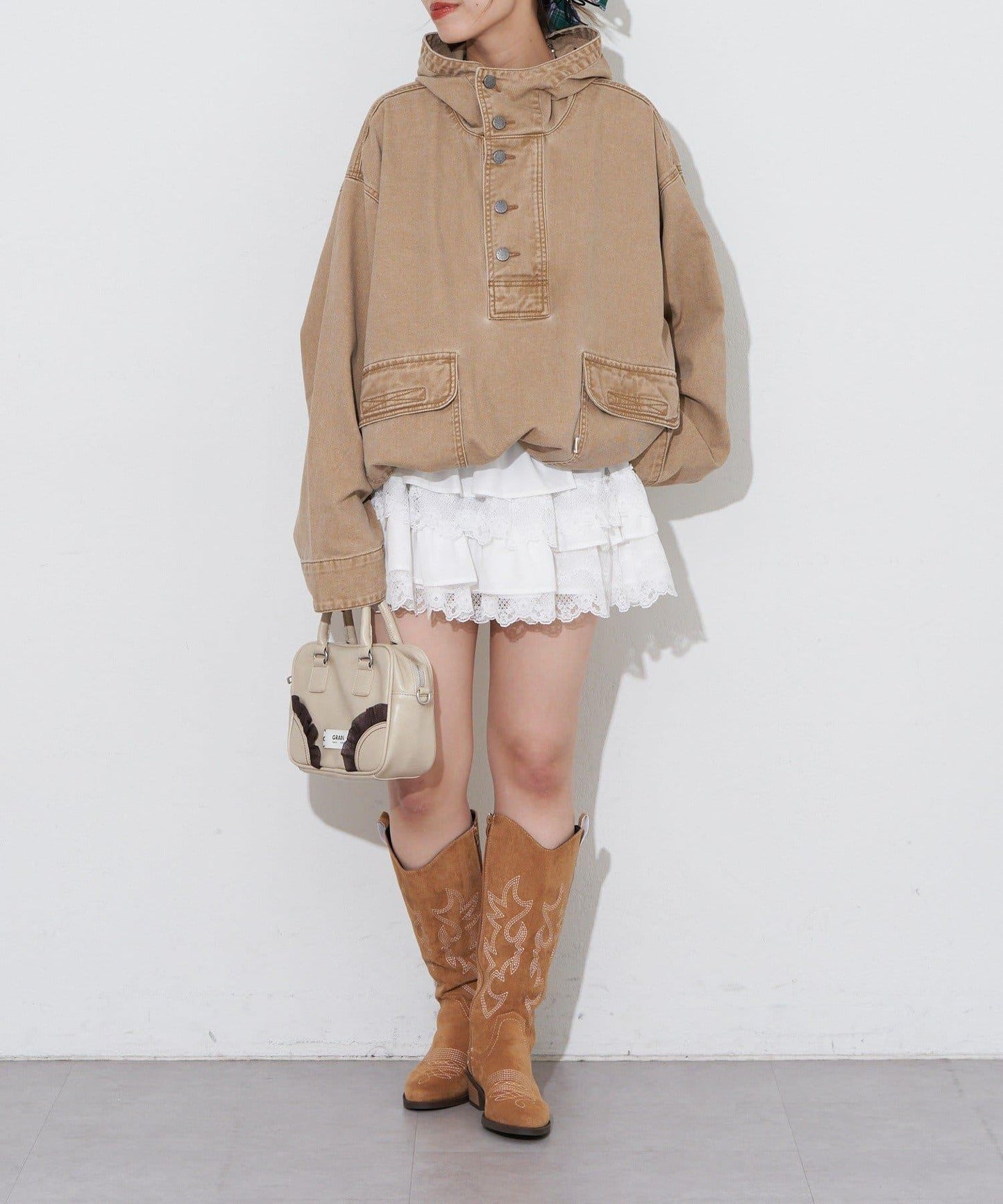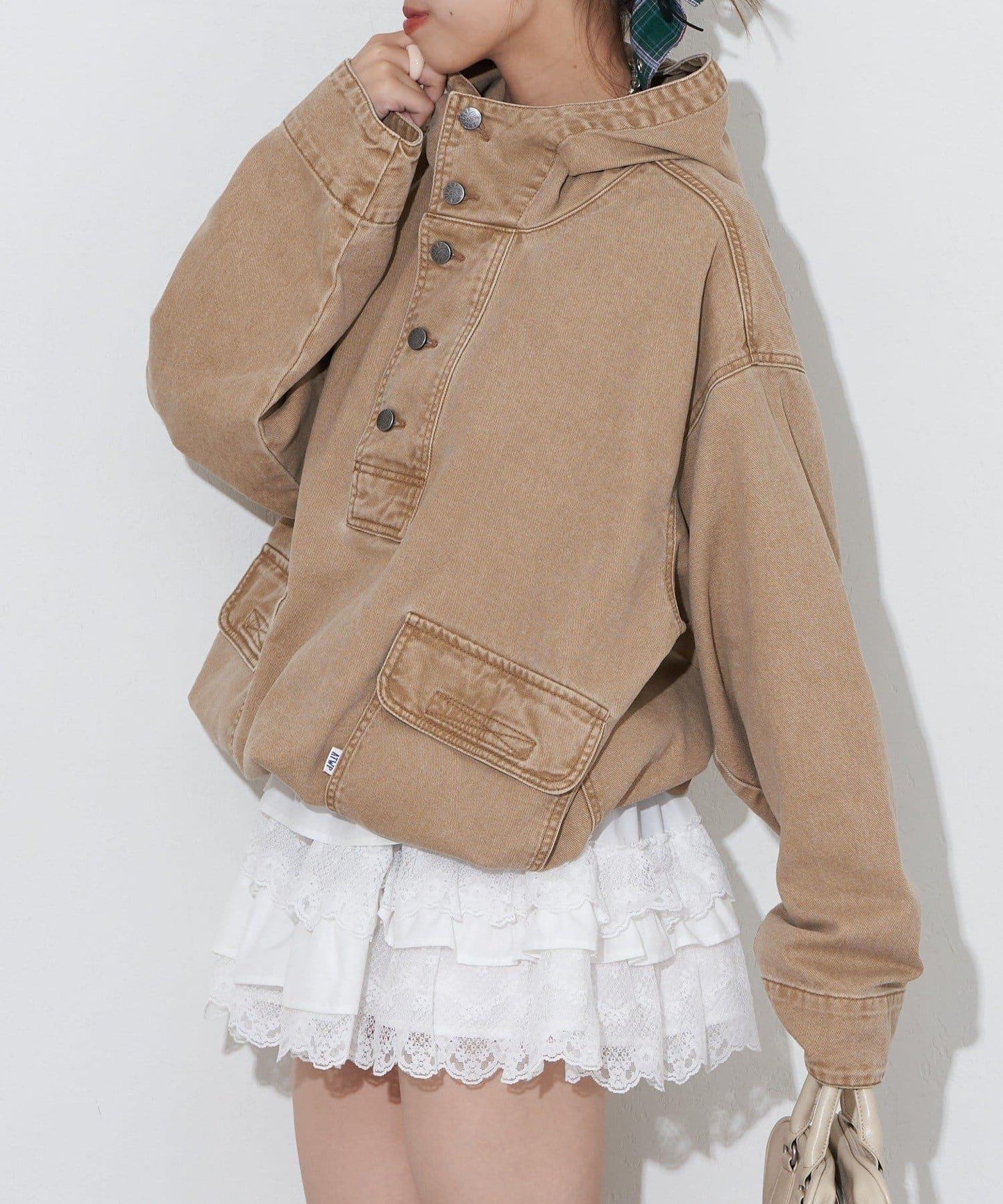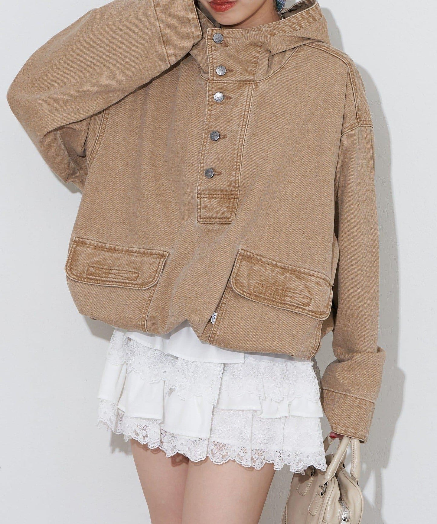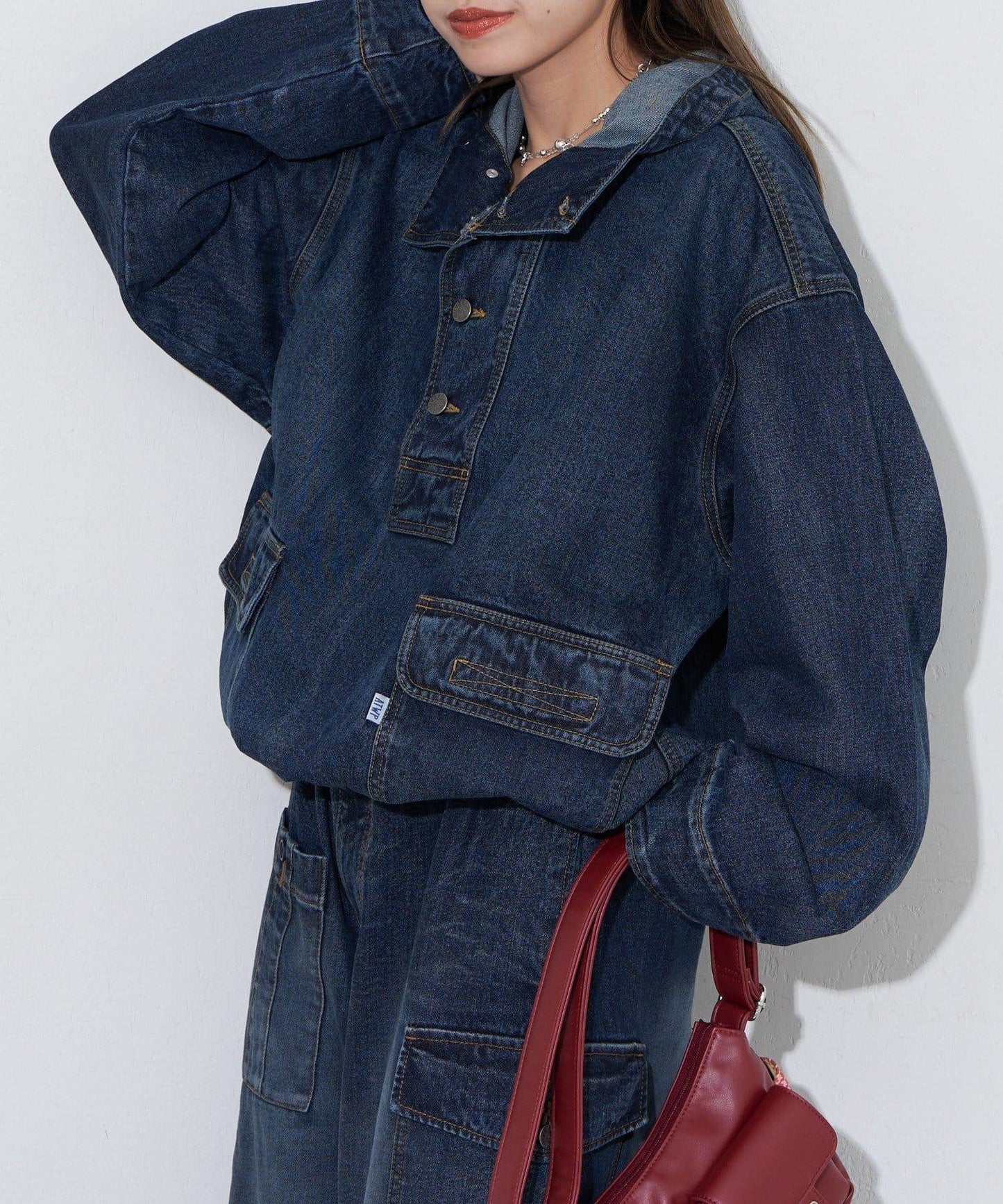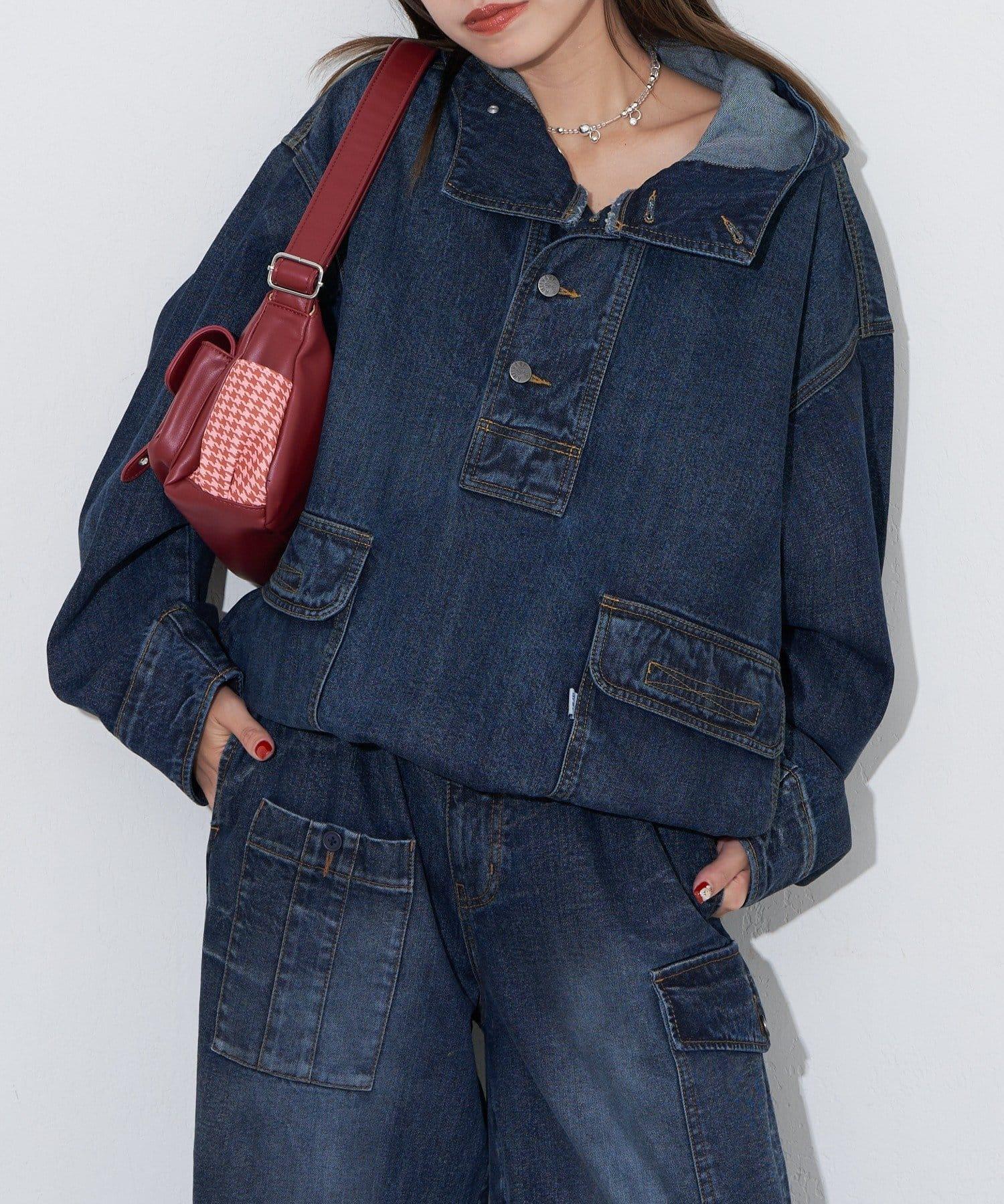 寬鬆的剪裁採用厚度適中的牛仔面料立體裁剪而成。