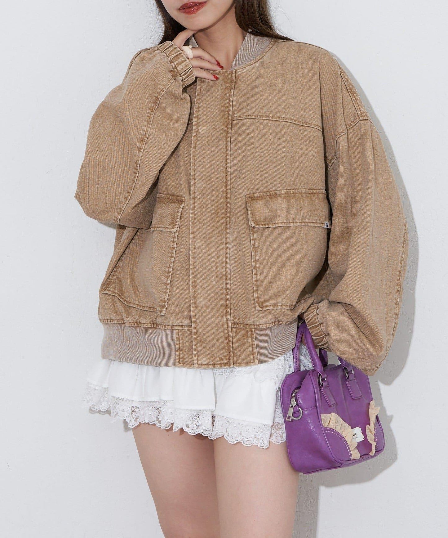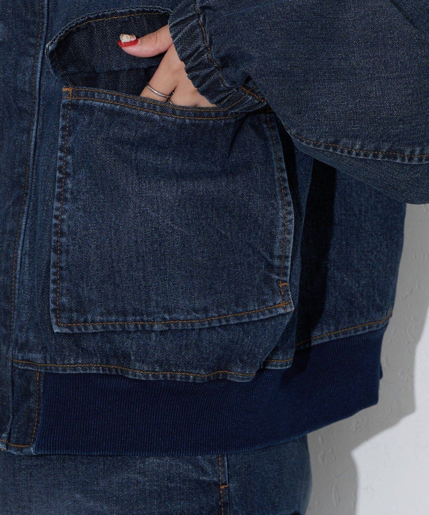 具有復古質感的牛仔飛行夾克。