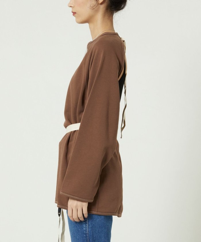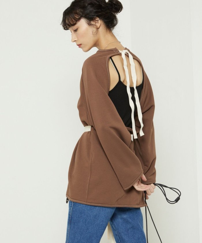 帶狀緞帶可系成開襟上衣,也可解開作為禮服使用。