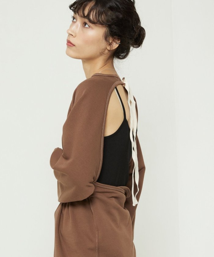 此款連衣裙可單獨作為後背開襟上衣穿著。