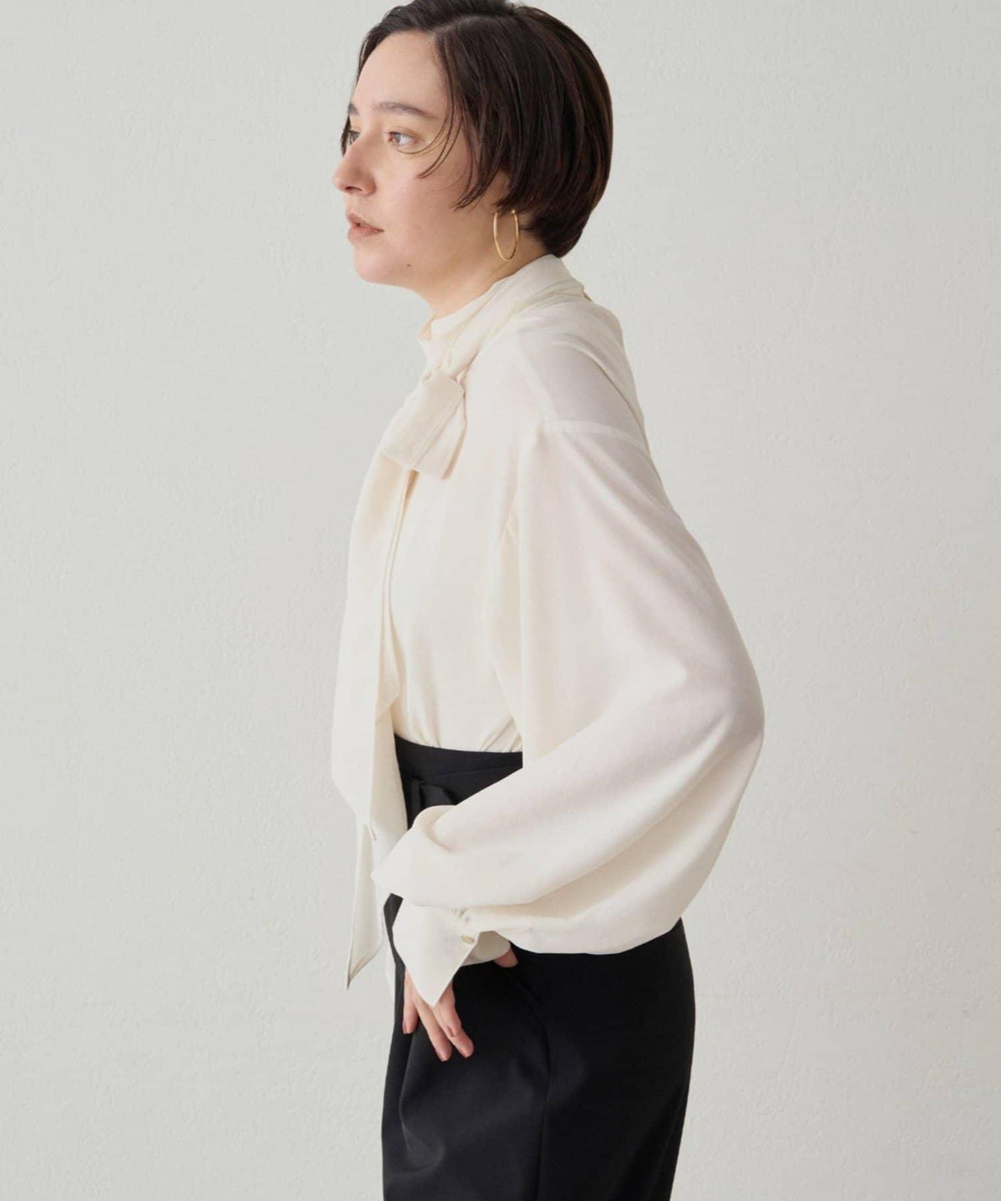 【Atelier N5/アトリエヌメロサンク】雪紡蝴蝶結領襯衫