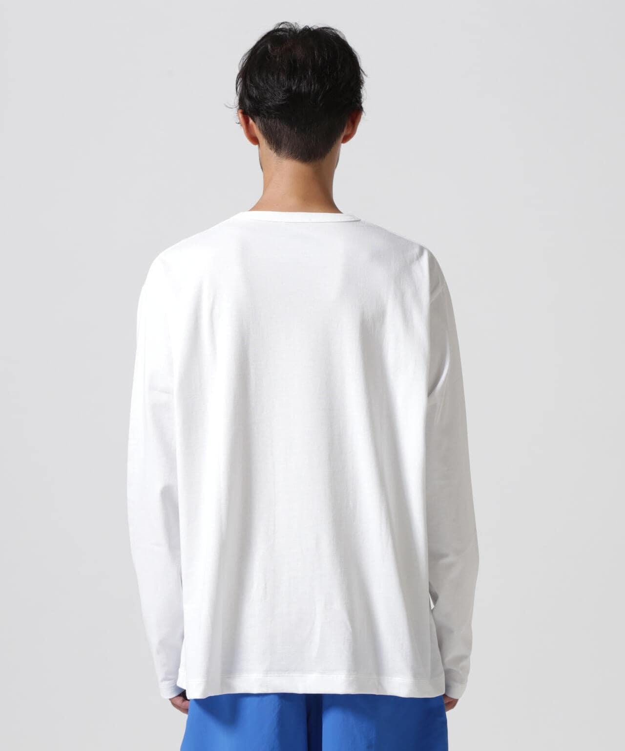 適度寬鬆的長袖 T 恤。它略顯單薄,手感乾爽,既可單穿,也可作為夾克和連體衣的內層。這種針織面料是在和歌山市使用富山縣紡紗廠採用特殊紡紗方法生產的紗線編織而成的。紗線的核心是硬質棉,周圍是用空氣漩渦紡成的超長棉。這是曾任 ATON WORLD BASICS 總監的久崎泰晴的新品牌。Yasuharu Hisasaki 曾在其之前的品牌下推出過該品牌。