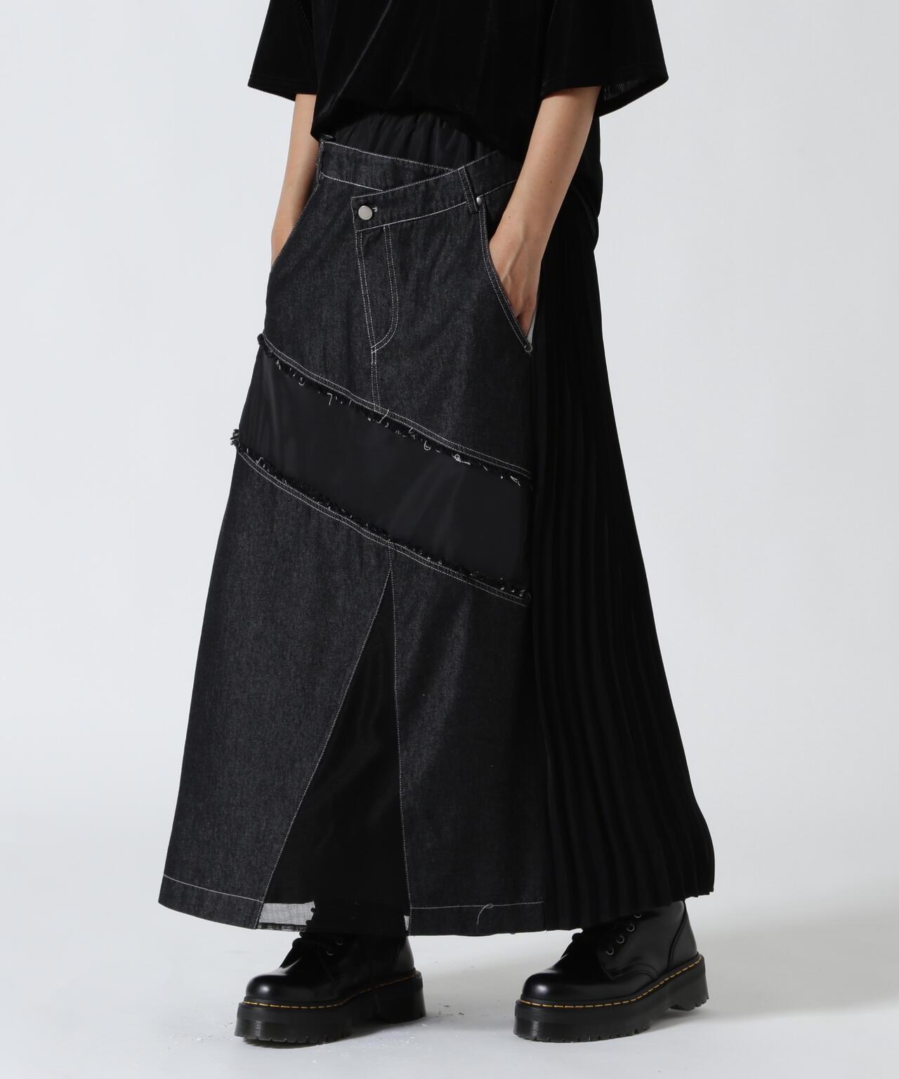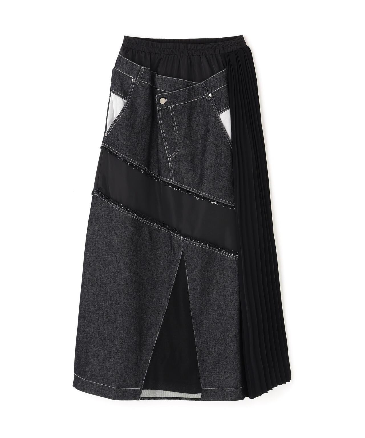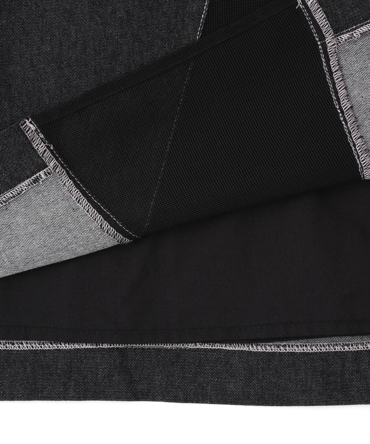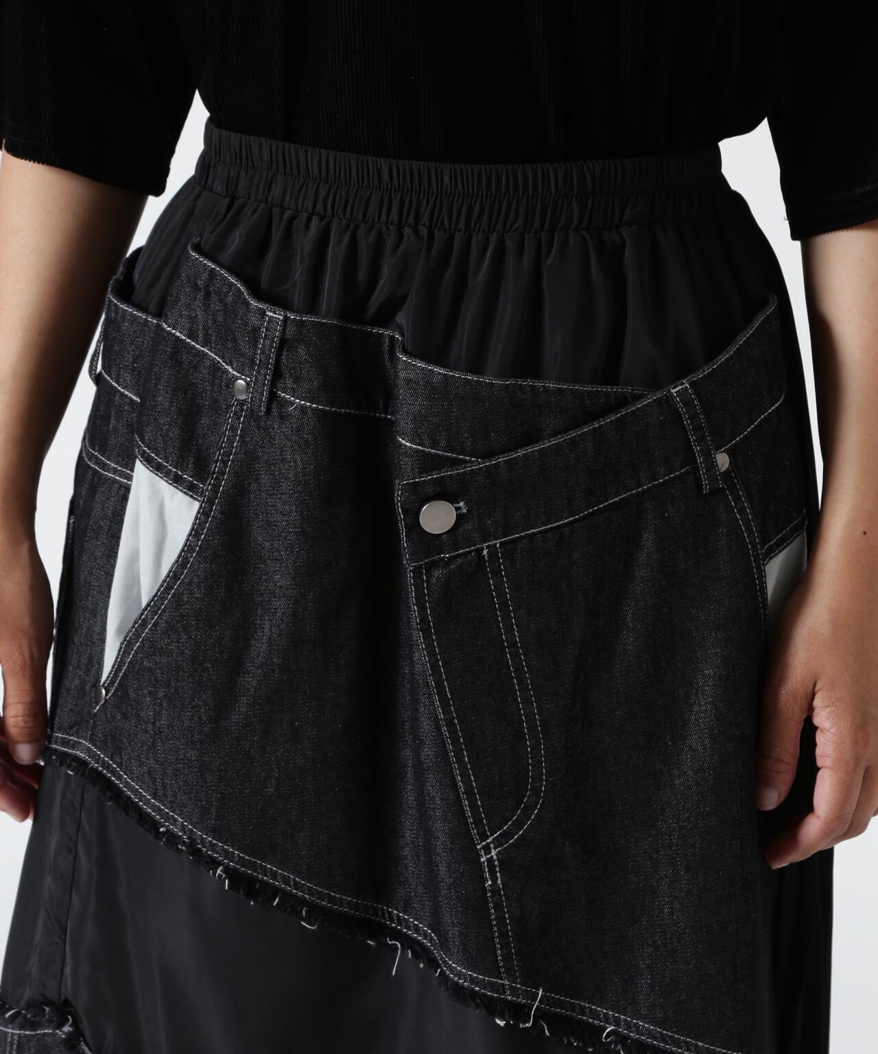 這款搶眼的裙子主要由輕質牛仔布製成,經過對角線剪裁和翻新,看起來就像由不同的材料製成。多層次的腰部採用鬆緊設計,穿起來毫無壓力,也可作為超短裙穿在腰間或下垂至胯骨部位。極具衝擊力的設計使其易於搭配簡潔的上衣。襯裡是棉質光滑型,即使在出汗的季節也不會粘在身上。與直排式相比,材質有所改變,特別訂製了灰色縫線的黑色款。尺寸也比直排式更小巧,因此直排式的 0 在這裡變成了 1 的大小。AULA AILA] 獨特的風格。