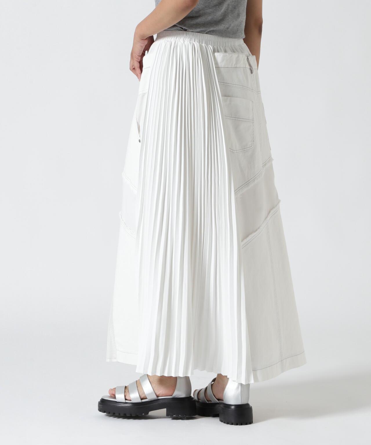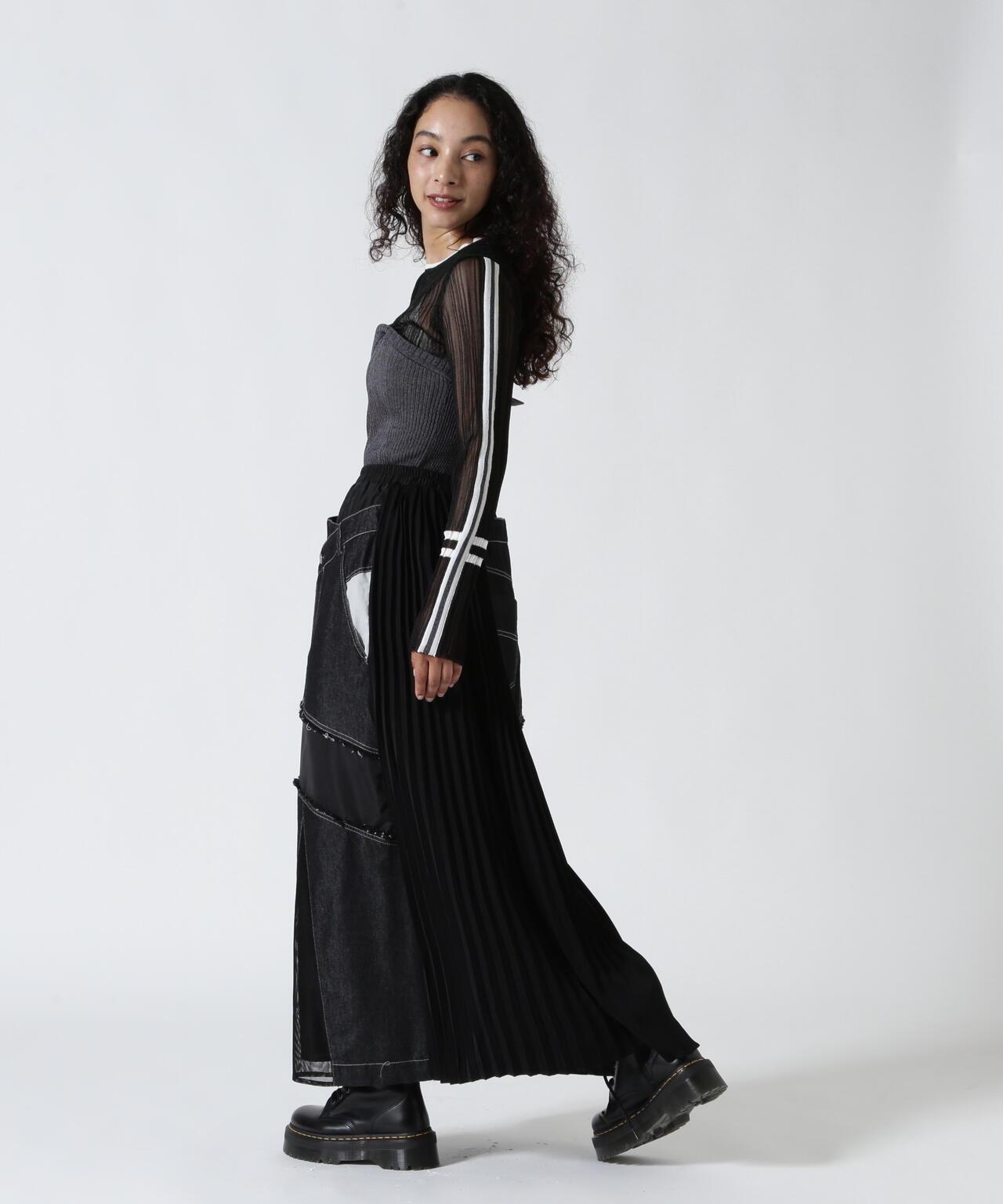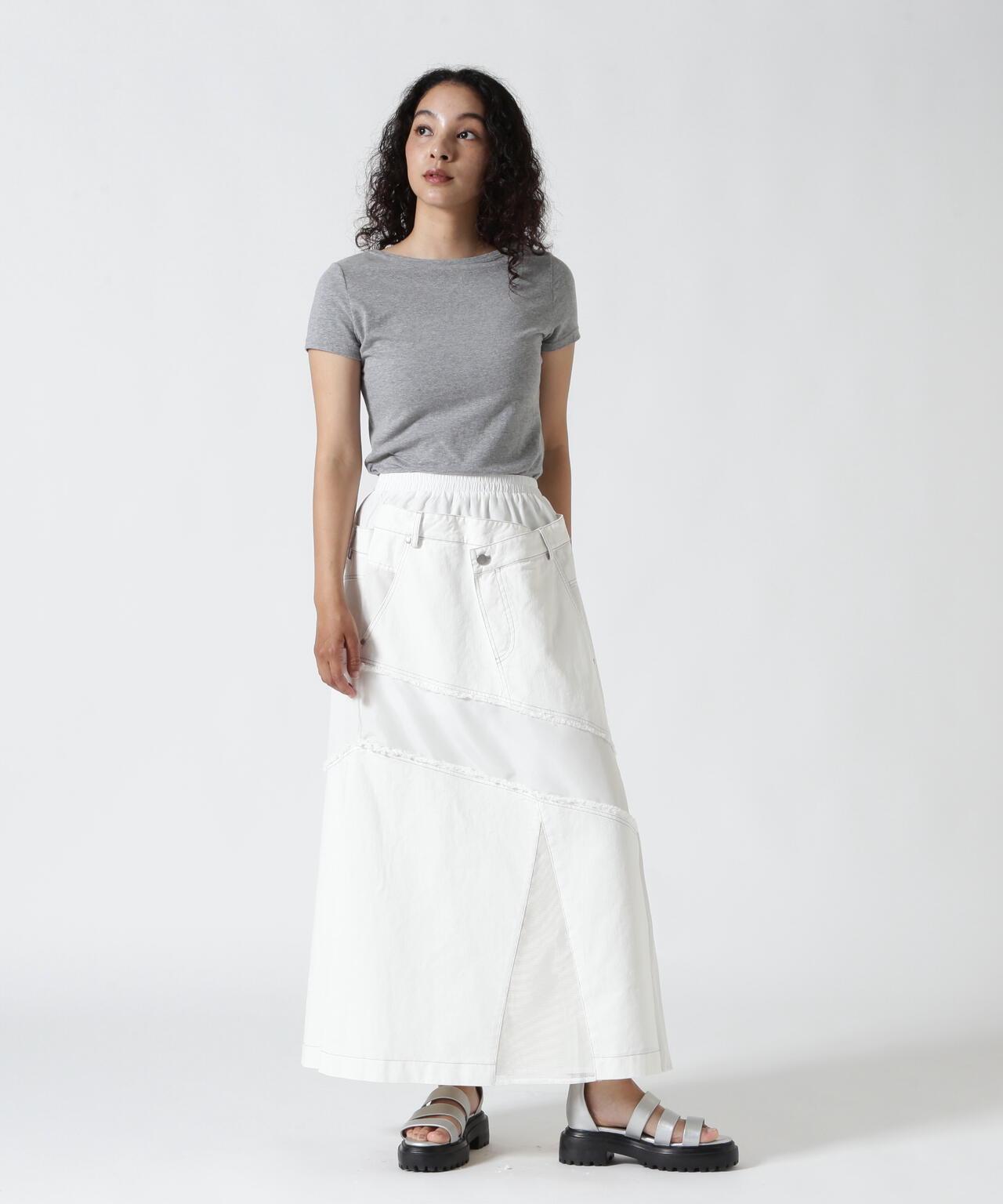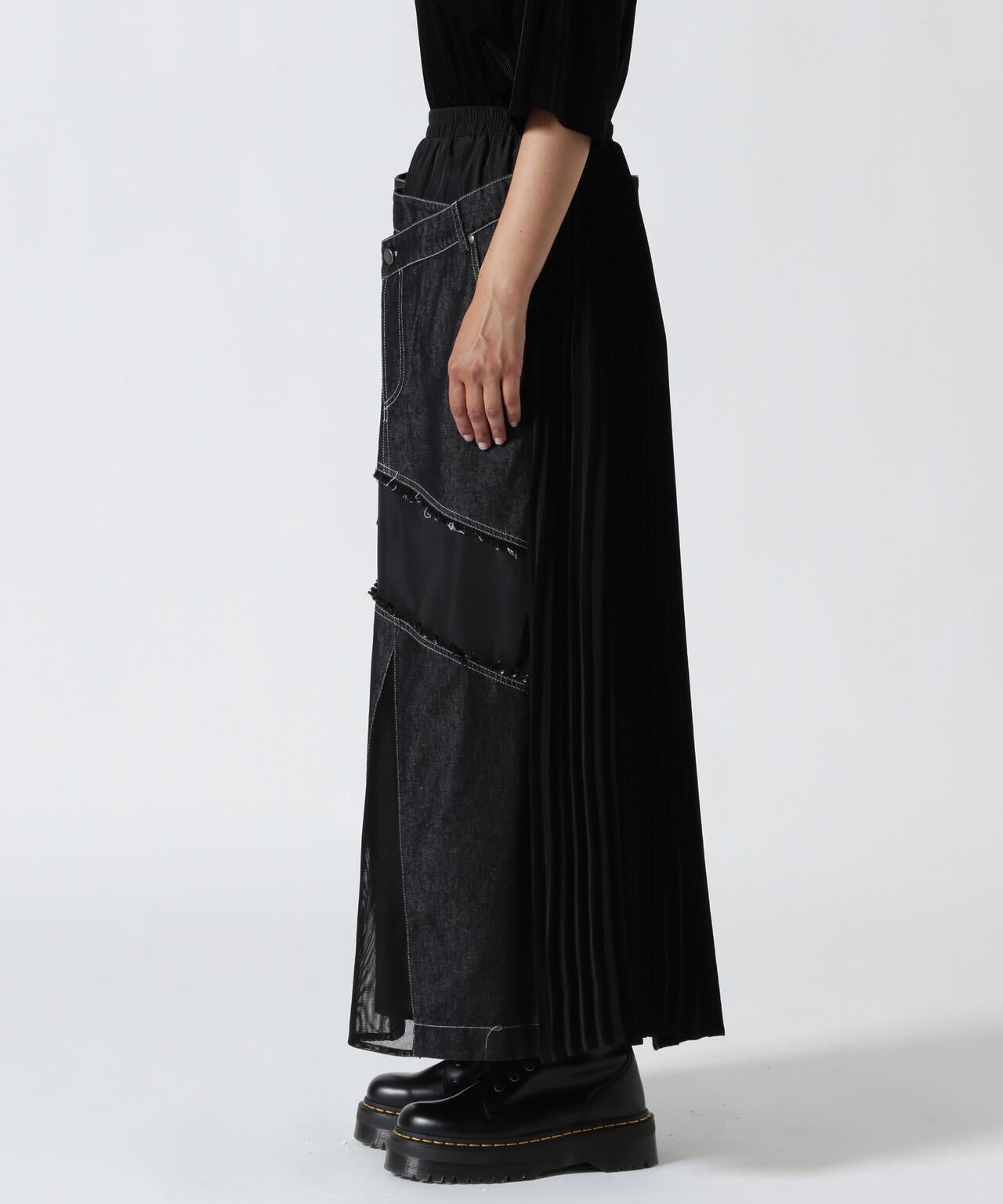 這款搶眼的裙子主要由輕質牛仔布製成,經過對角線剪裁和翻新,看起來就像由不同的材料製成。多層次的腰部採用鬆緊設計,穿起來毫無壓力,也可作為超短裙穿在腰間或下垂至胯骨部位。極具衝擊力的設計使其易於搭配簡潔的上衣。襯裡是棉質光滑型,即使在出汗的季節也不會粘在身上。與直排式相比,材質有所改變,特別訂製了灰色縫線的黑色款。尺寸也比直排式更小巧,因此直排式的 0 在這裡變成了 1 的大小。AULA AILA] 獨特的風格。