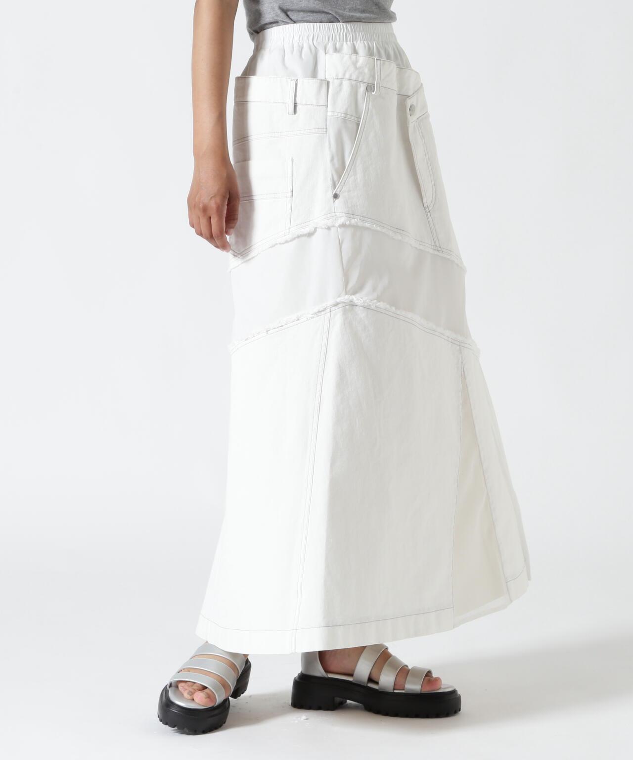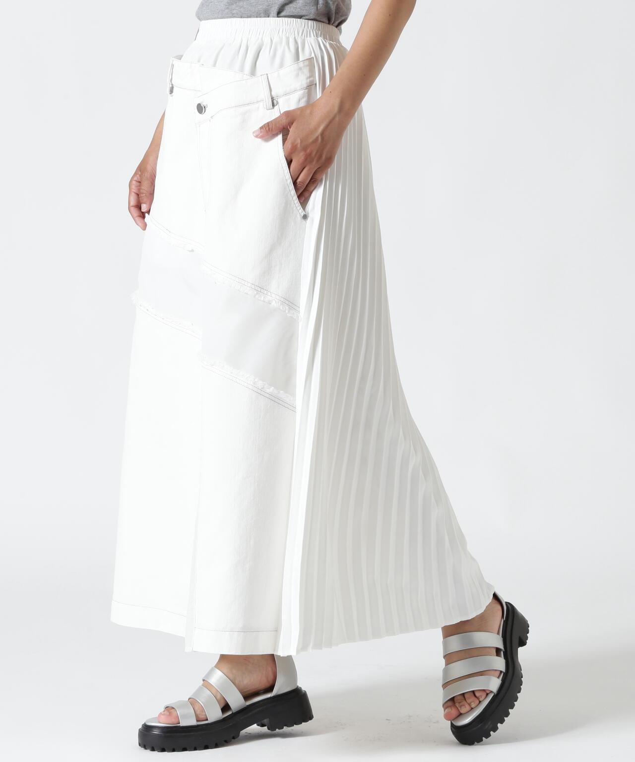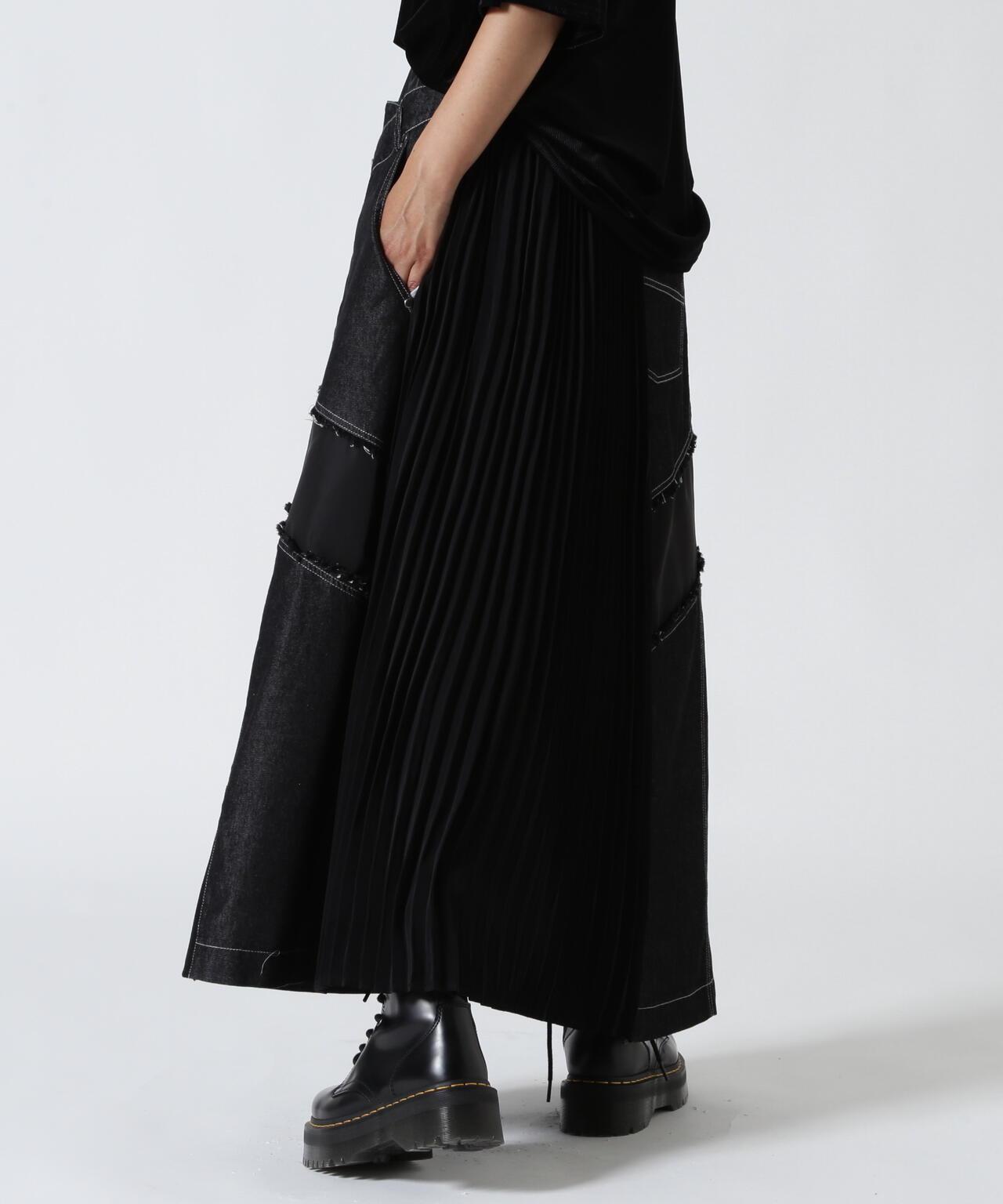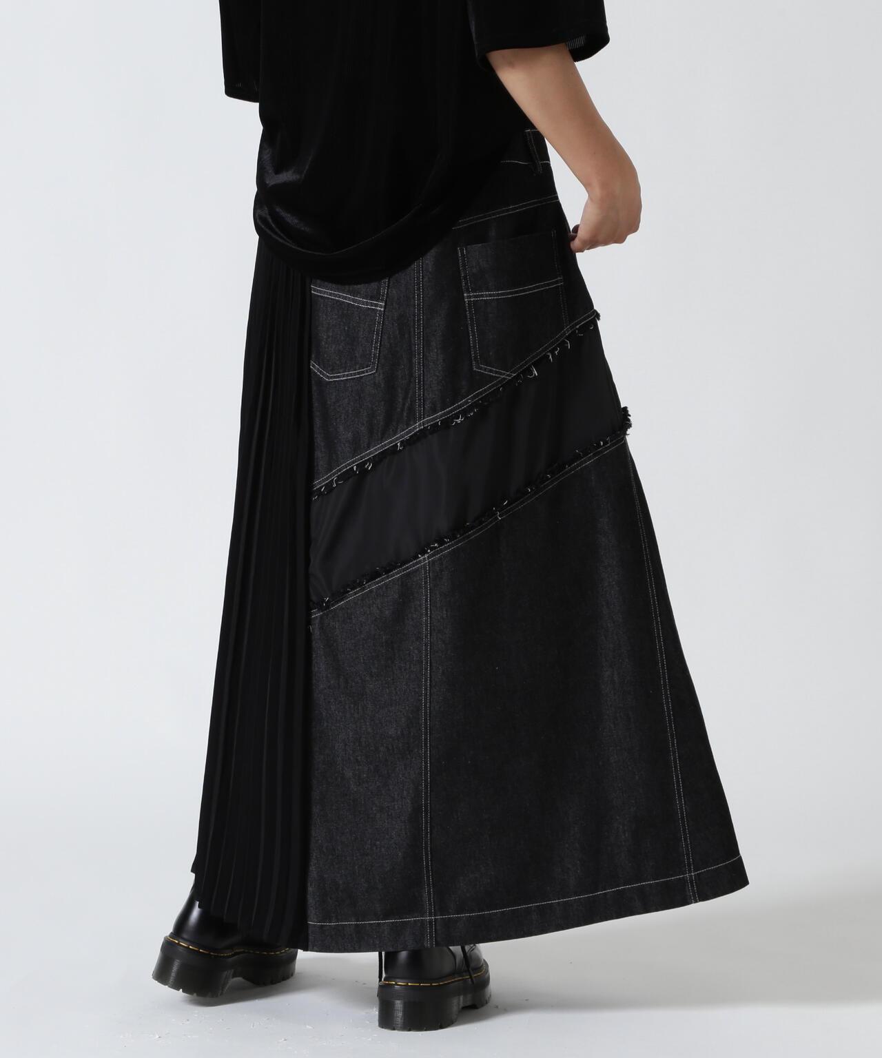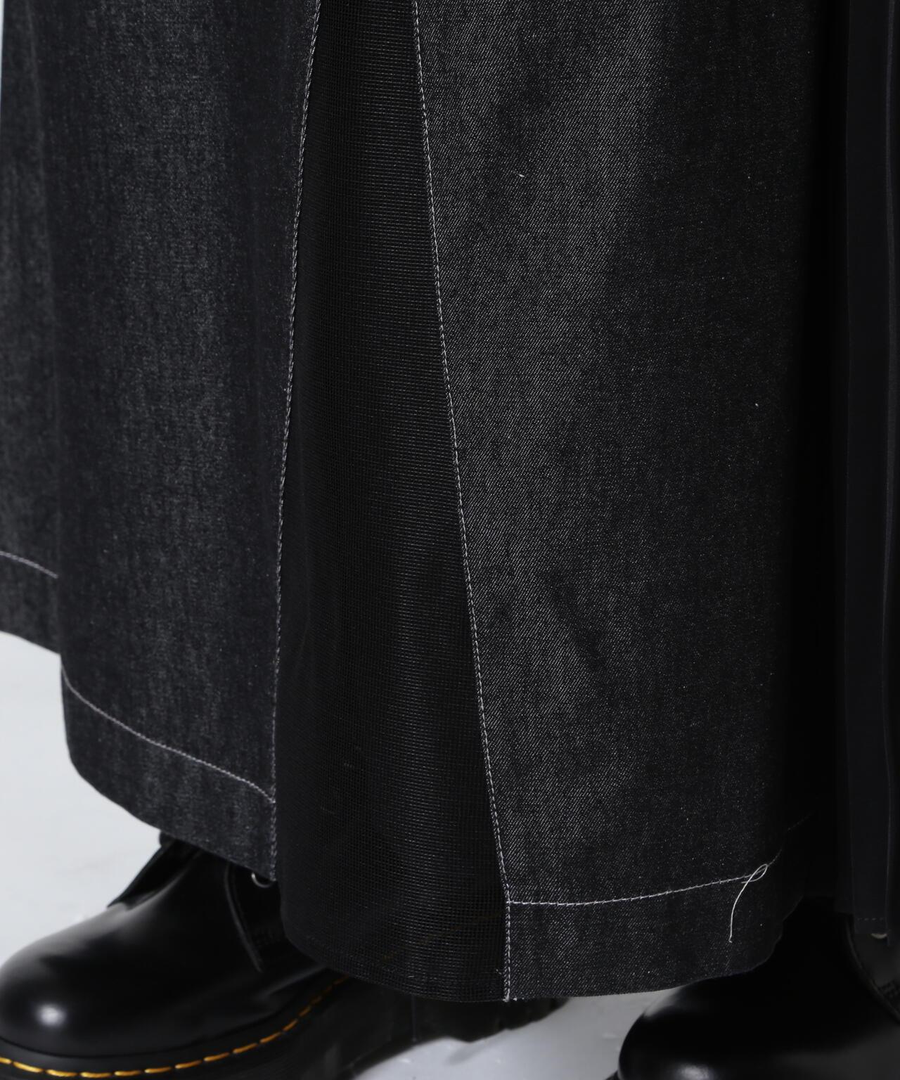 這款搶眼的裙子主要由輕質牛仔布製成,經過對角線剪裁和翻新,看起來就像由不同的材料製成。多層次的腰部採用鬆緊設計,穿起來毫無壓力,也可作為超短裙穿在腰間或下垂至胯骨部位。極具衝擊力的設計使其易於搭配簡潔的上衣。襯裡是棉質光滑型,即使在出汗的季節也不會粘在身上。與直排式相比,材質有所改變,特別訂製了灰色縫線的黑色款。尺寸也比直排式更小巧,因此直排式的 0 在這裡變成了 1 的大小。AULA AILA] 獨特的風格。