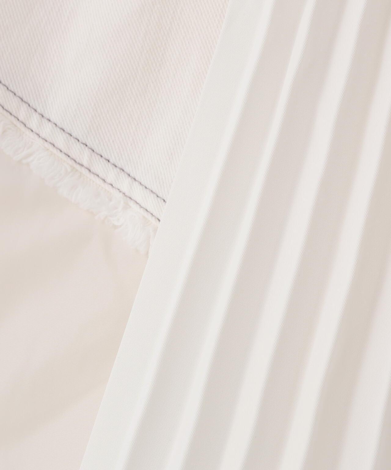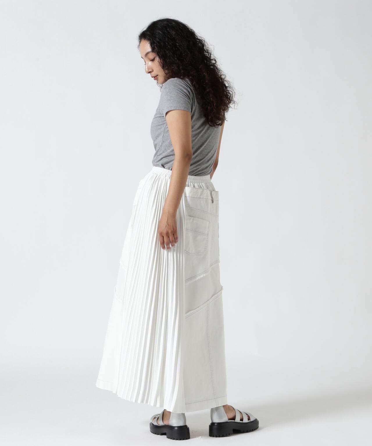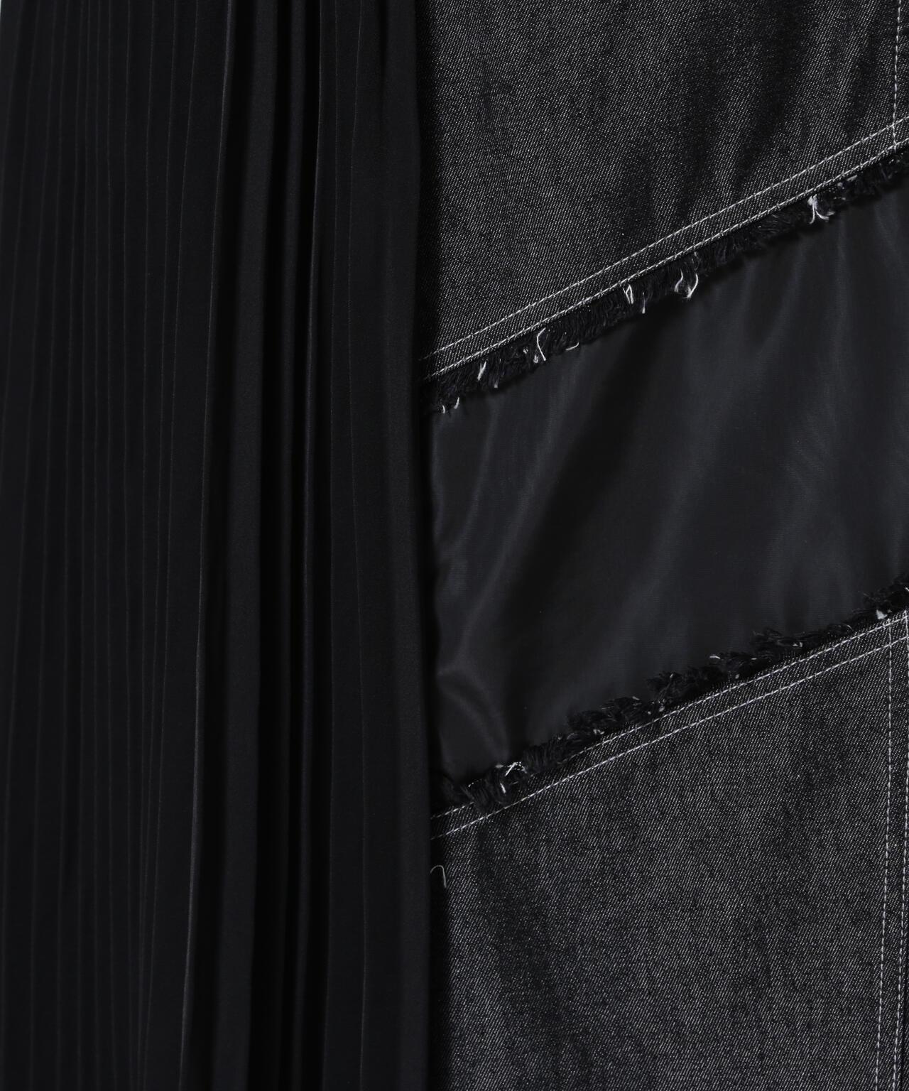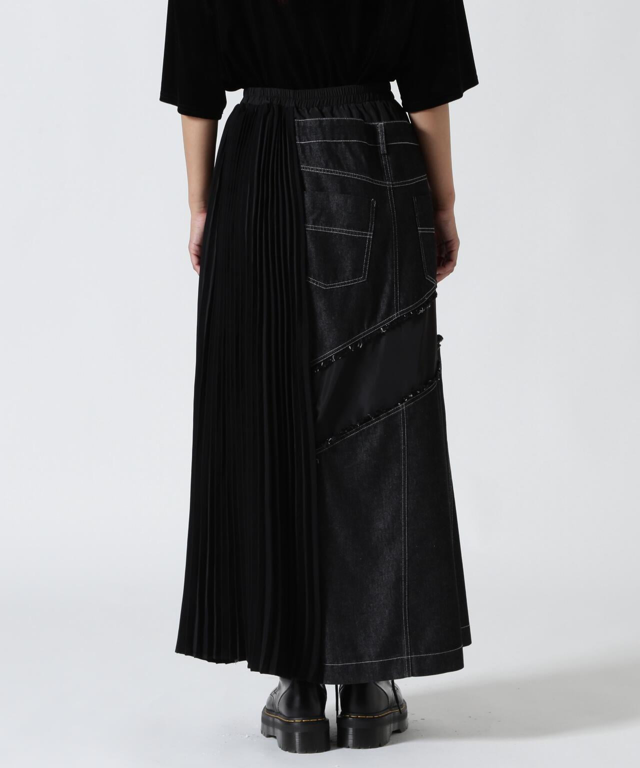 這款搶眼的裙子主要由輕質牛仔布製成,經過對角線剪裁和翻新,看起來就像由不同的材料製成。多層次的腰部採用鬆緊設計,穿起來毫無壓力,也可作為超短裙穿在腰間或下垂至胯骨部位。極具衝擊力的設計使其易於搭配簡潔的上衣。襯裡是棉質光滑型,即使在出汗的季節也不會粘在身上。與直排式相比,材質有所改變,特別訂製了灰色縫線的黑色款。尺寸也比直排式更小巧,因此直排式的 0 在這裡變成了 1 的大小。AULA AILA] 獨特的風格。