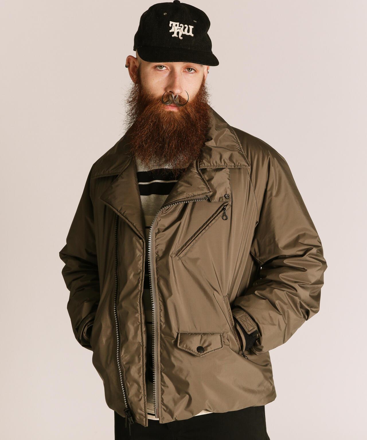 與誕生於 1941 年的睡袋製造商 NANGA 合作推出的產品。新款採用雙人設計,使用了 NANGA 典型的功能性材料 Auroratex(具有透氣性和防水性)和國產水洗羽絨,注重安全和質量。羽絨使用的是 React 羽絨。它具有所謂的黃金比例,即 80% 的羽絨和 20% 的羽毛,填充力為 600。它的保暖性足以滿足城鎮居民的需要,因此👍是這個冬天的重要伴侶。袖口採用羅紋+魔術貼設計,門襟採用重疊設計,風帽和下襬採用抽繩設計,可有效防止冷點。