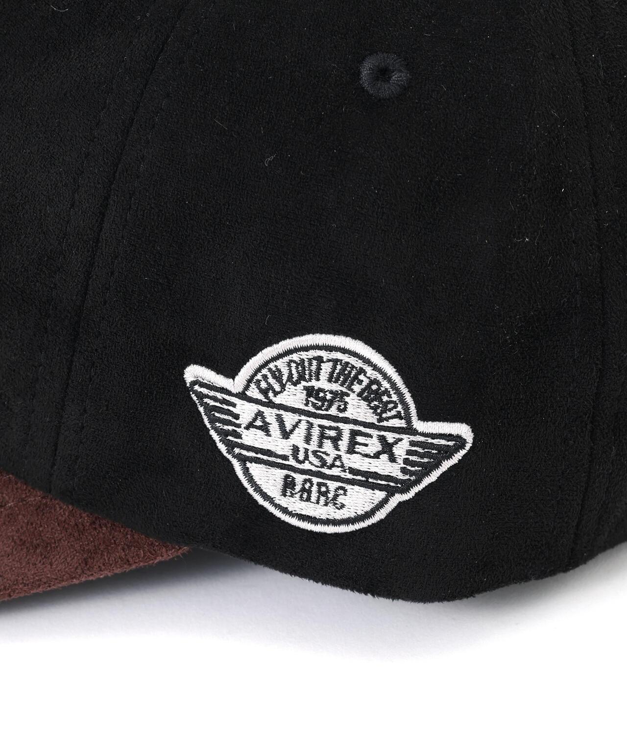 正面簡單地省略了 "AVIREX AIR RACING CLUB "標誌的刺繡和多餘的裝飾,雖然簡潔,但拘泥於細節的設計,帽簷和上面的紐扣使用了麂皮色調的素材,側面是軍裝風格的徽章[AVIREX]。1975 年,AVIREX 作為美國空軍的承包商成立,提供飛行夾克,知名度大幅提升。Avirex 源自軍隊,以功能性設計所散發出的獨特美感為基礎。在電影《奪寶奇兵》、《壯志凌雲》和《孟菲斯美女》中,Avirex 的獨特外觀都獲得了一致好評。它的輕薄。