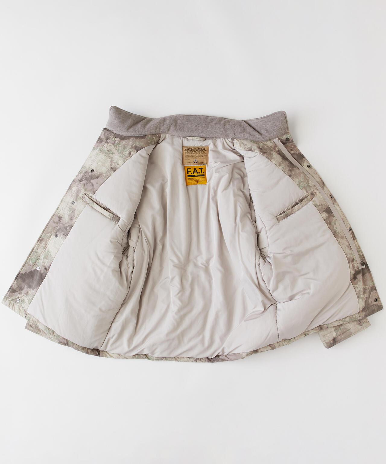 迷彩圖案 M-65 夾克以 F.A.T.W 的名義生產,由於採用了產品染色工藝,其紋理與去年相同。有四種尺寸可供選擇:TITCH(中碼)、SKINNY(大碼)、FAT(大碼)和 JUMBO(小碼)。