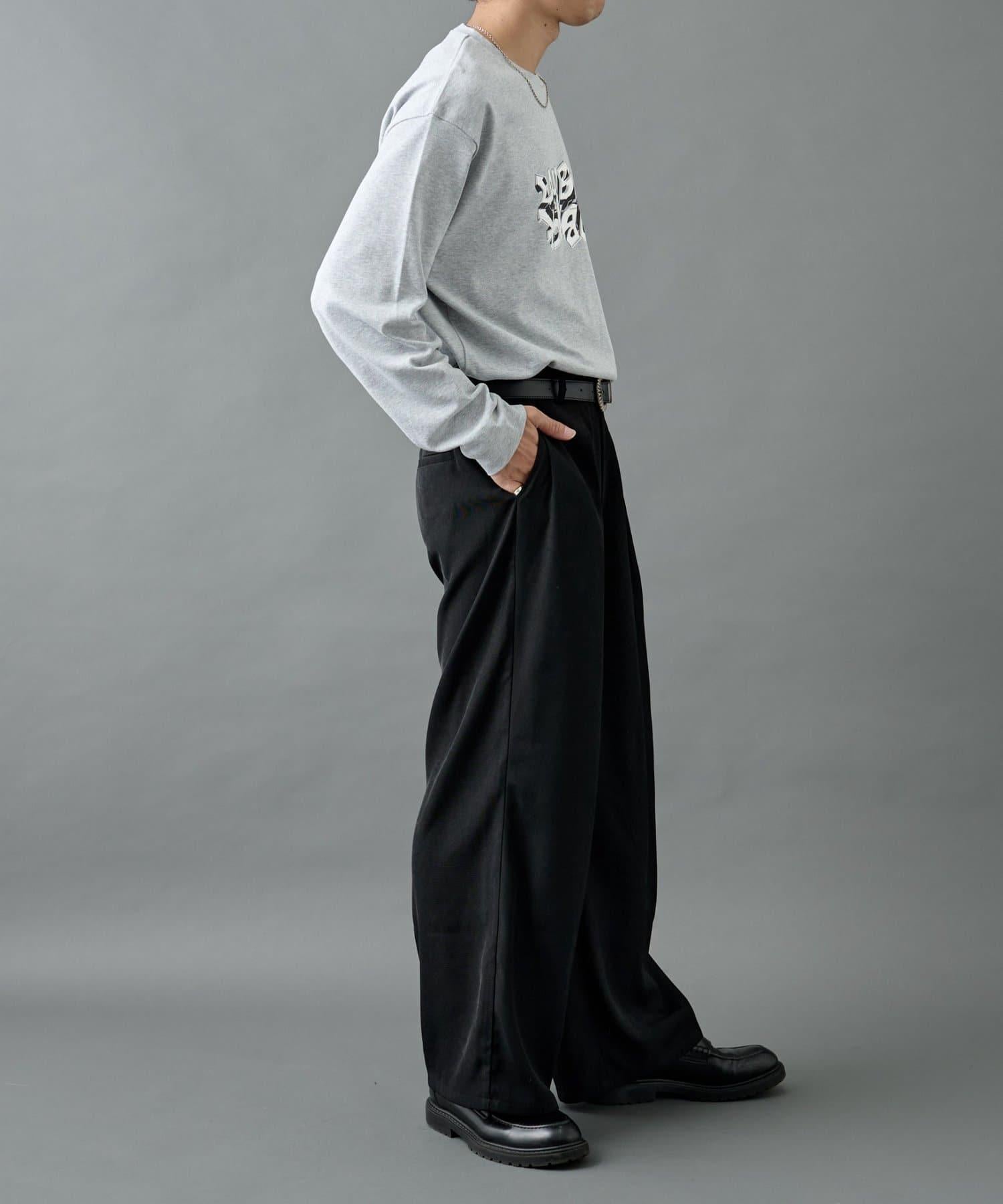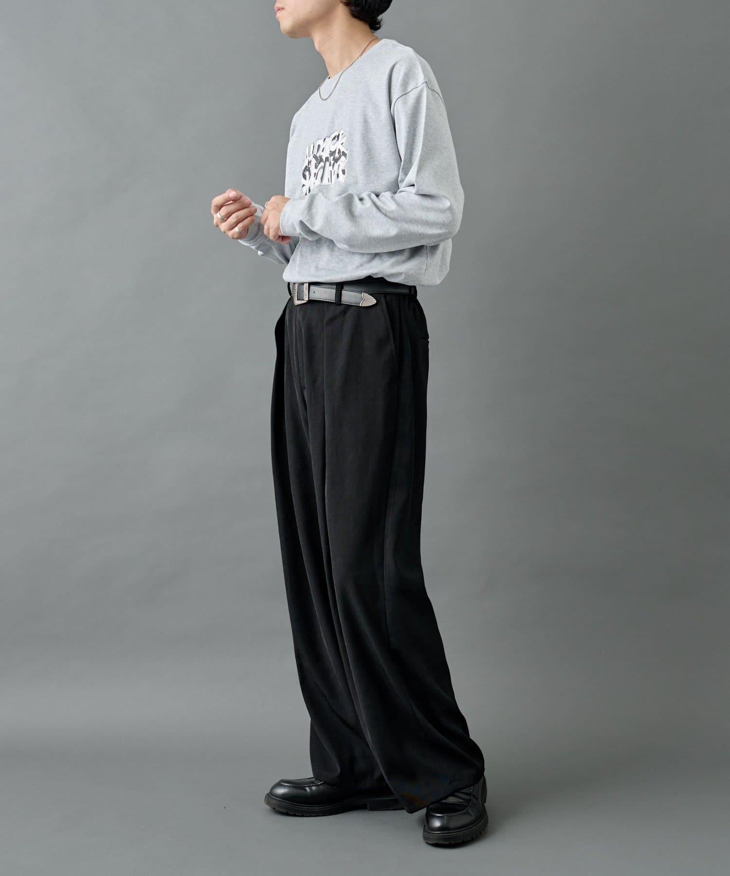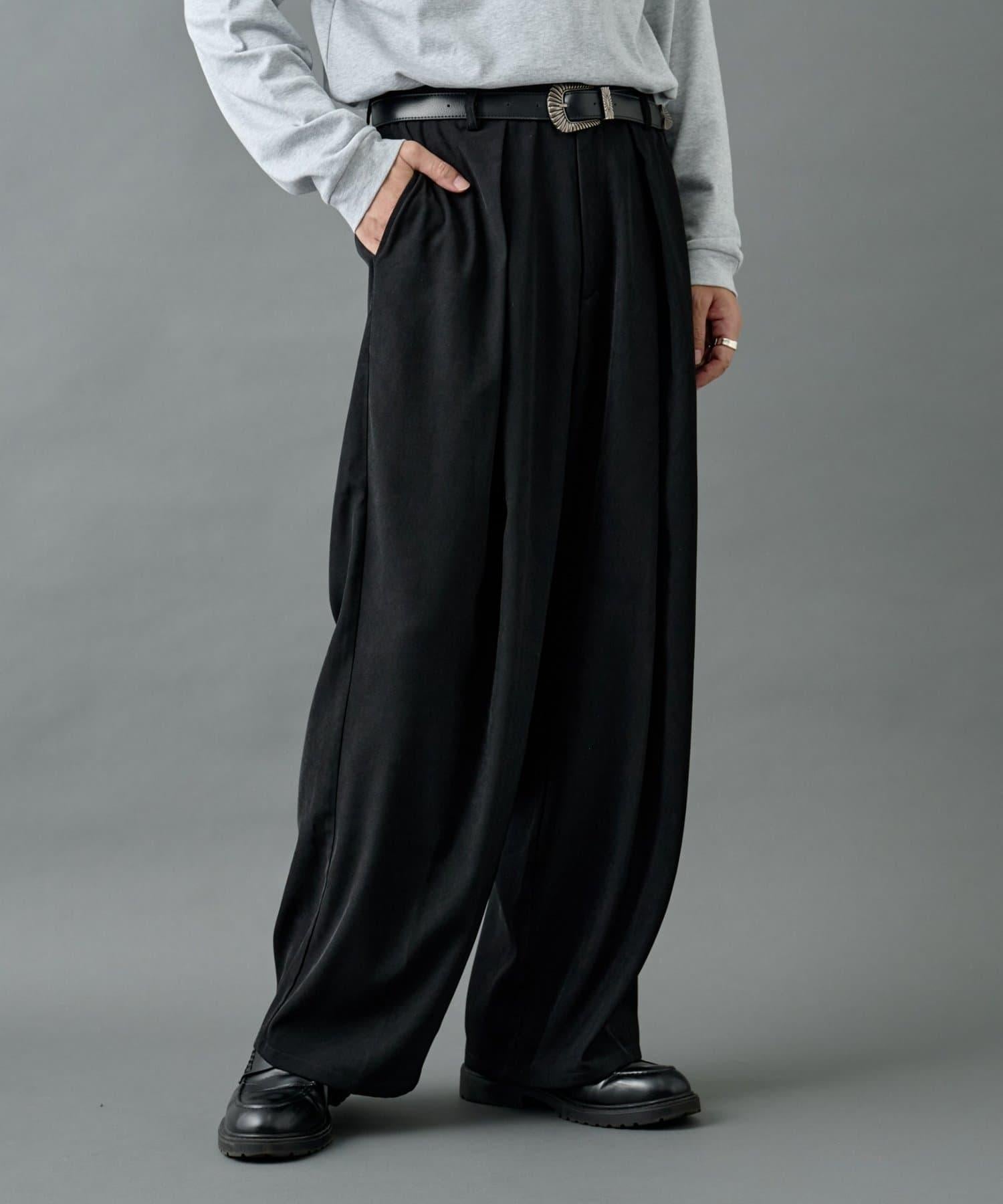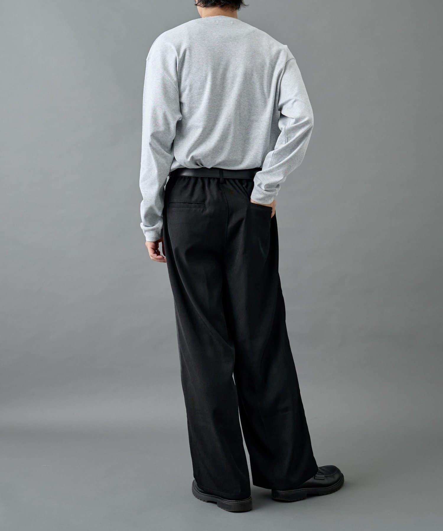 這是一款設計感極強的長褲,採用優雅的寬大廓形和前交叉堆疊設計。