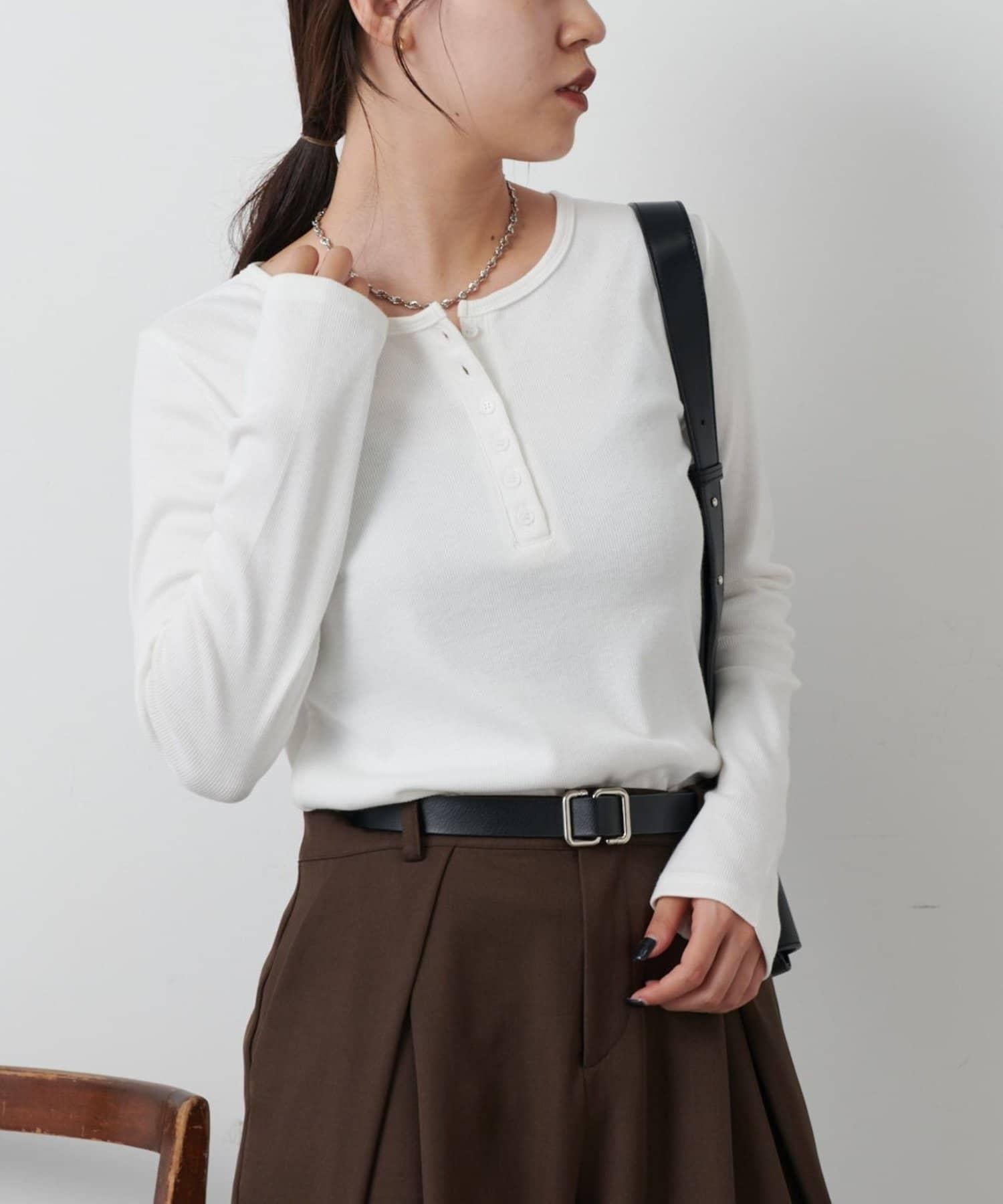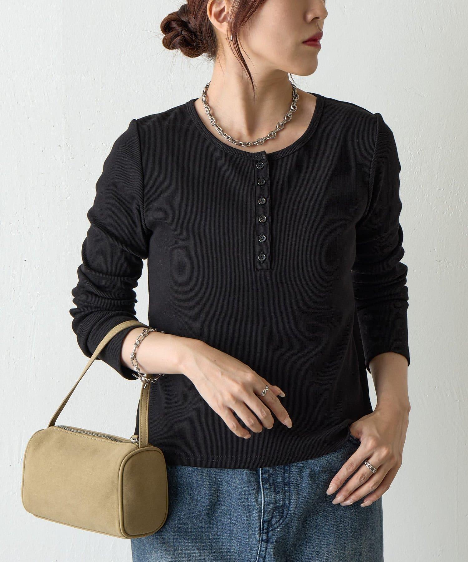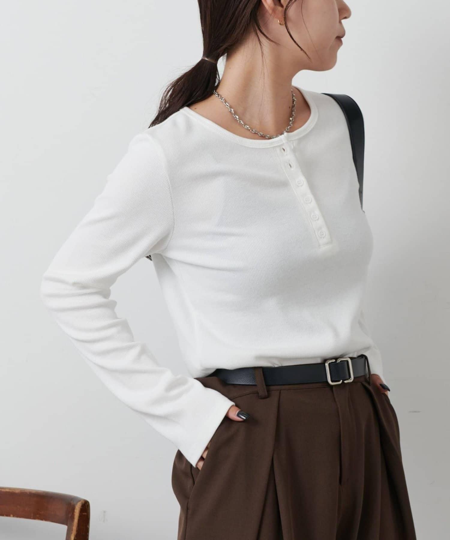 長袖 T 恤採用 teleco 面料,版型適中,垂直羅紋帶來出色的修身效果。