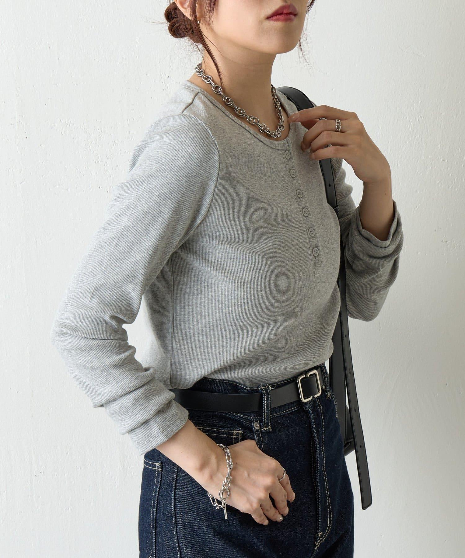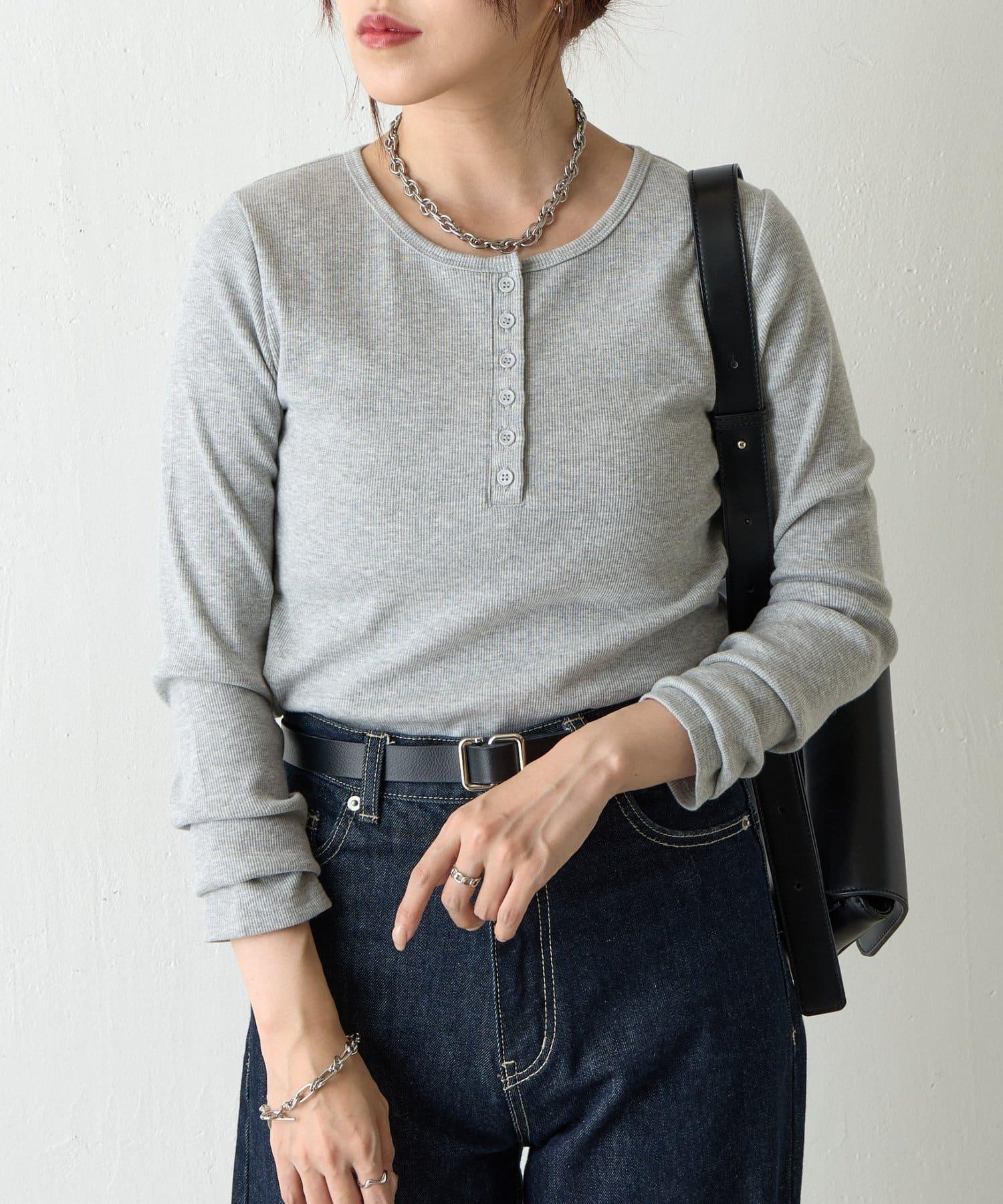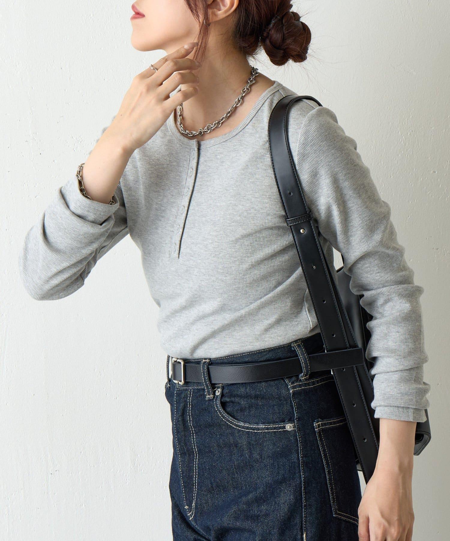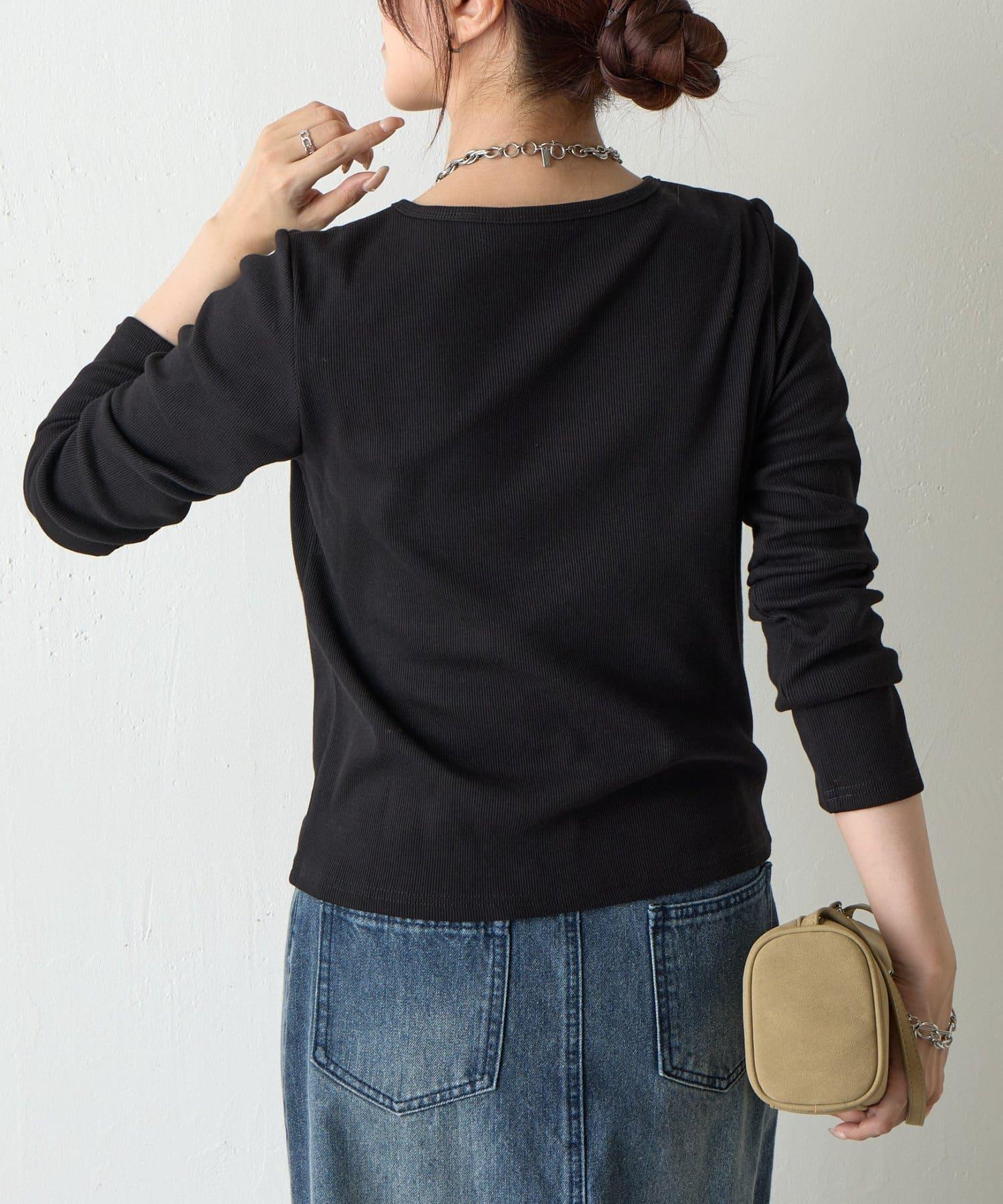 長袖 T 恤採用 teleco 面料,版型適中,垂直羅紋帶來出色的修身效果。