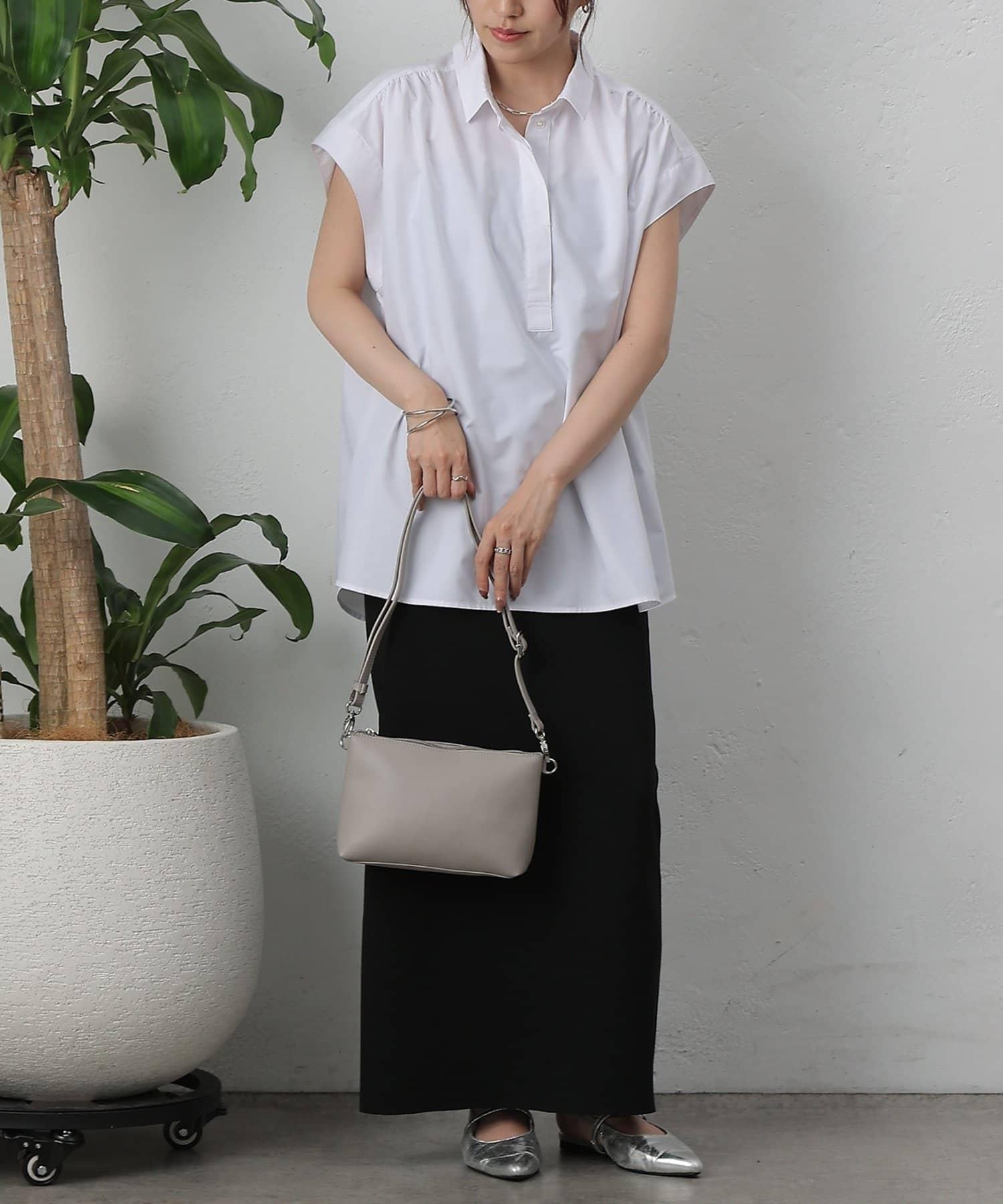 包身兩側內收的自然造型,營造出簡潔而寬鬆的輪廓。