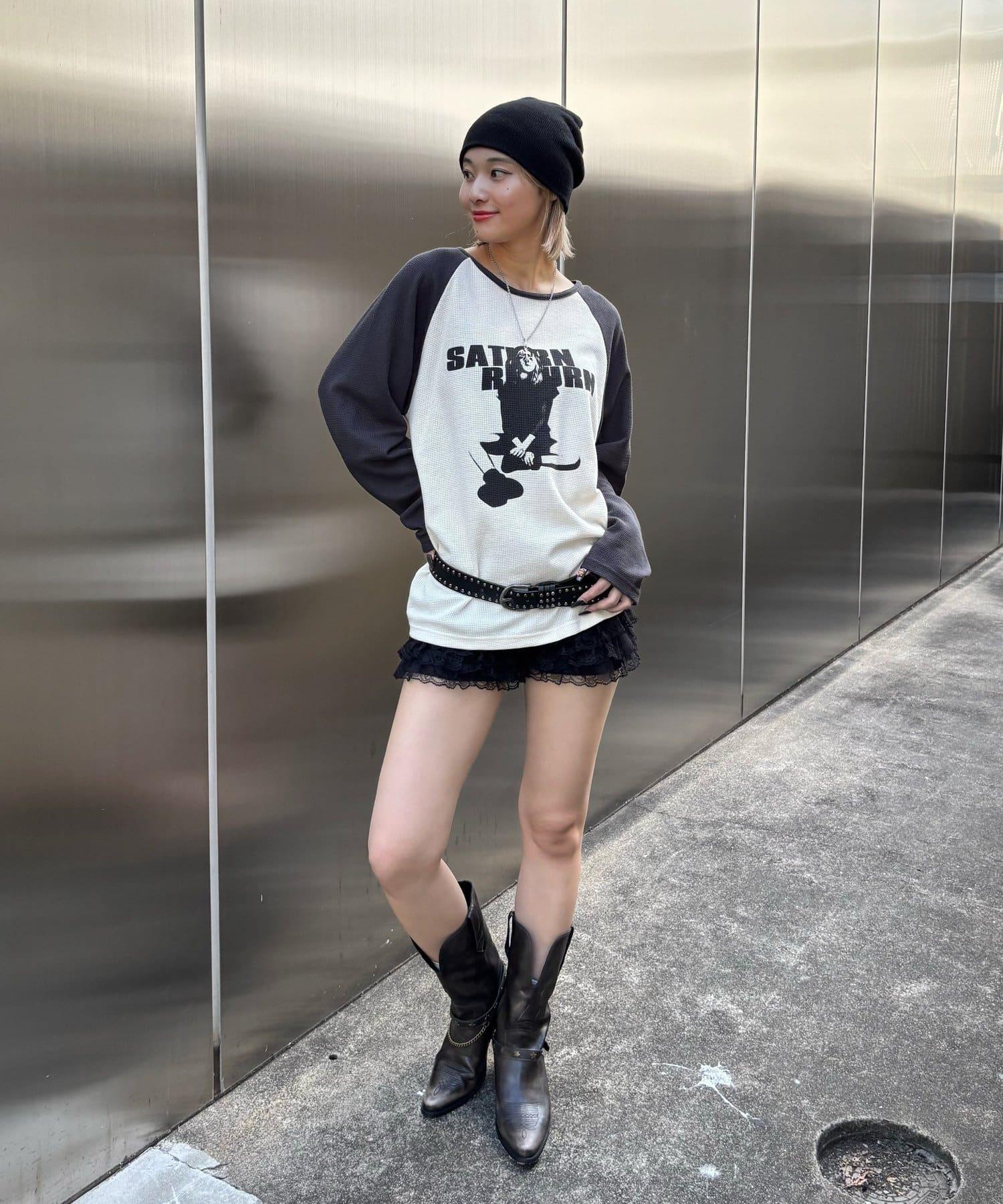 這款無袖 T 恤正面印有女孩(夏洛特子)的圖案,具有強烈的存在感。