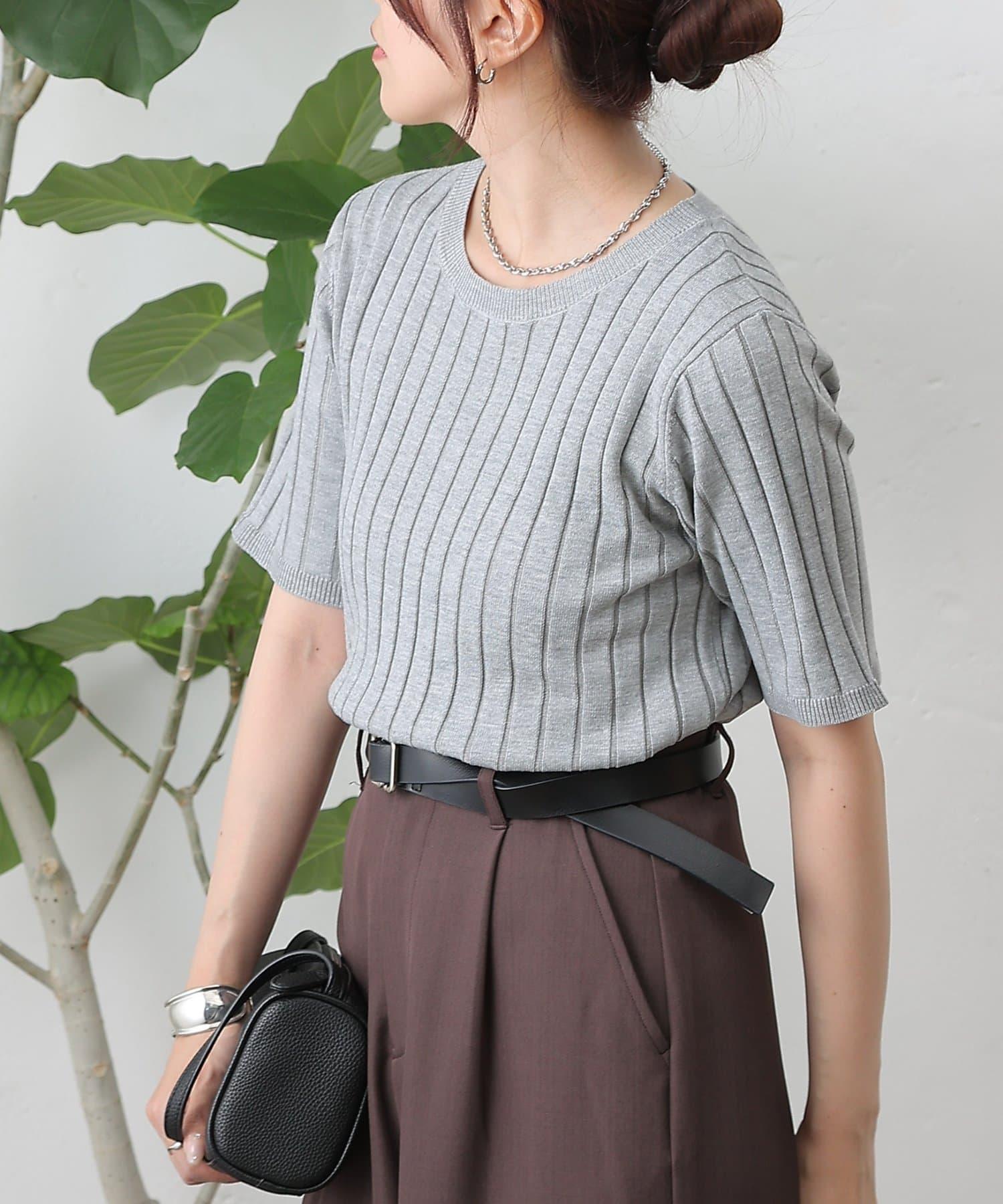 寬羅紋針織短袖小巧上衣,簡約而不失女性柔美的輪廓引人注目。