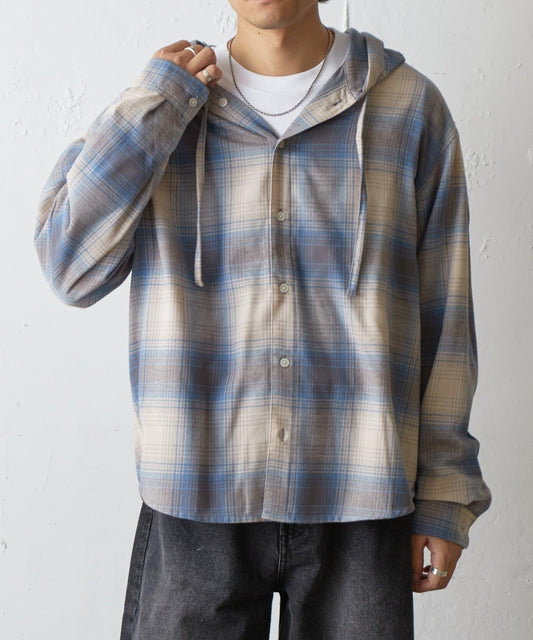 【AW】磨毛格紋褶皺襯衫