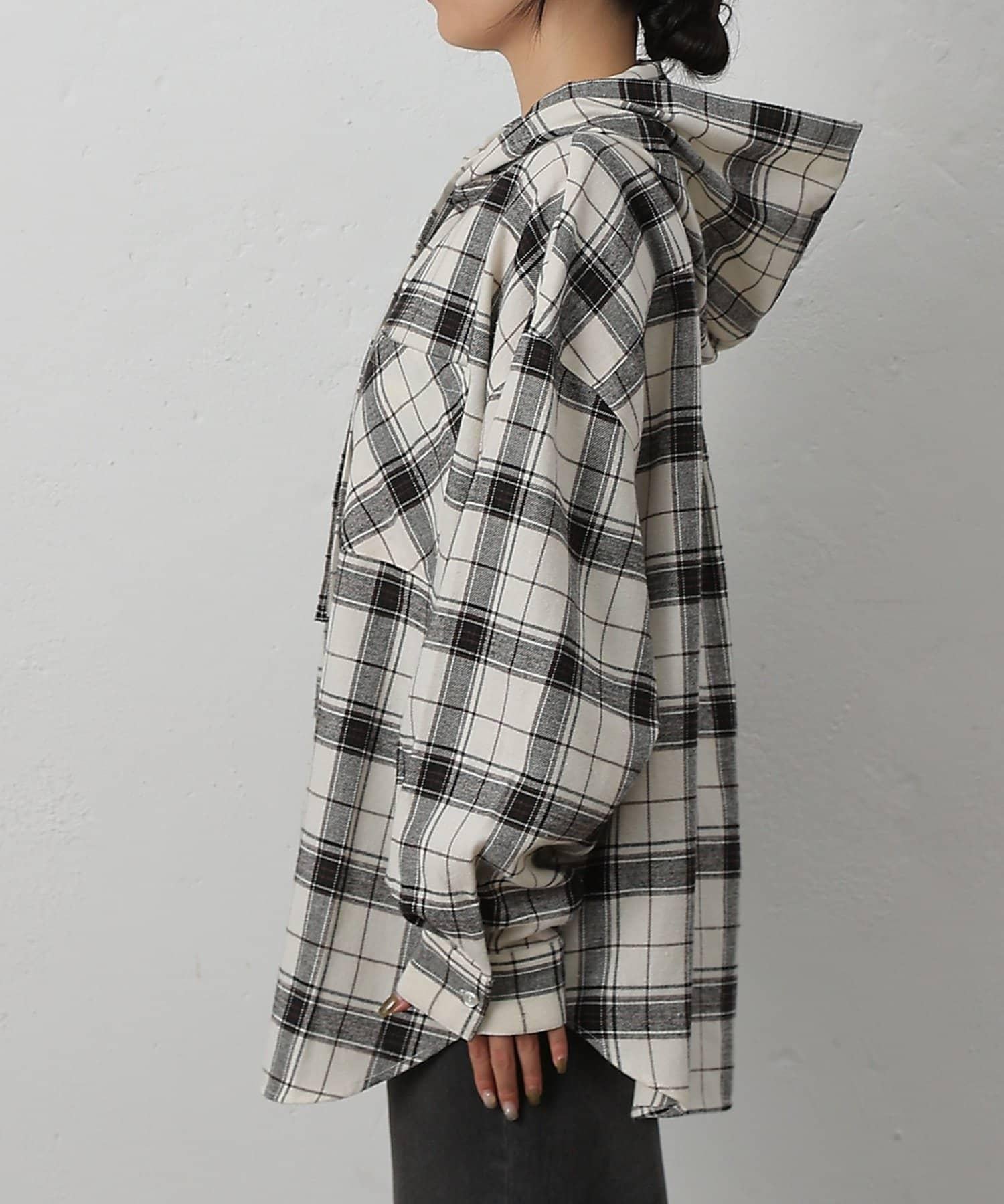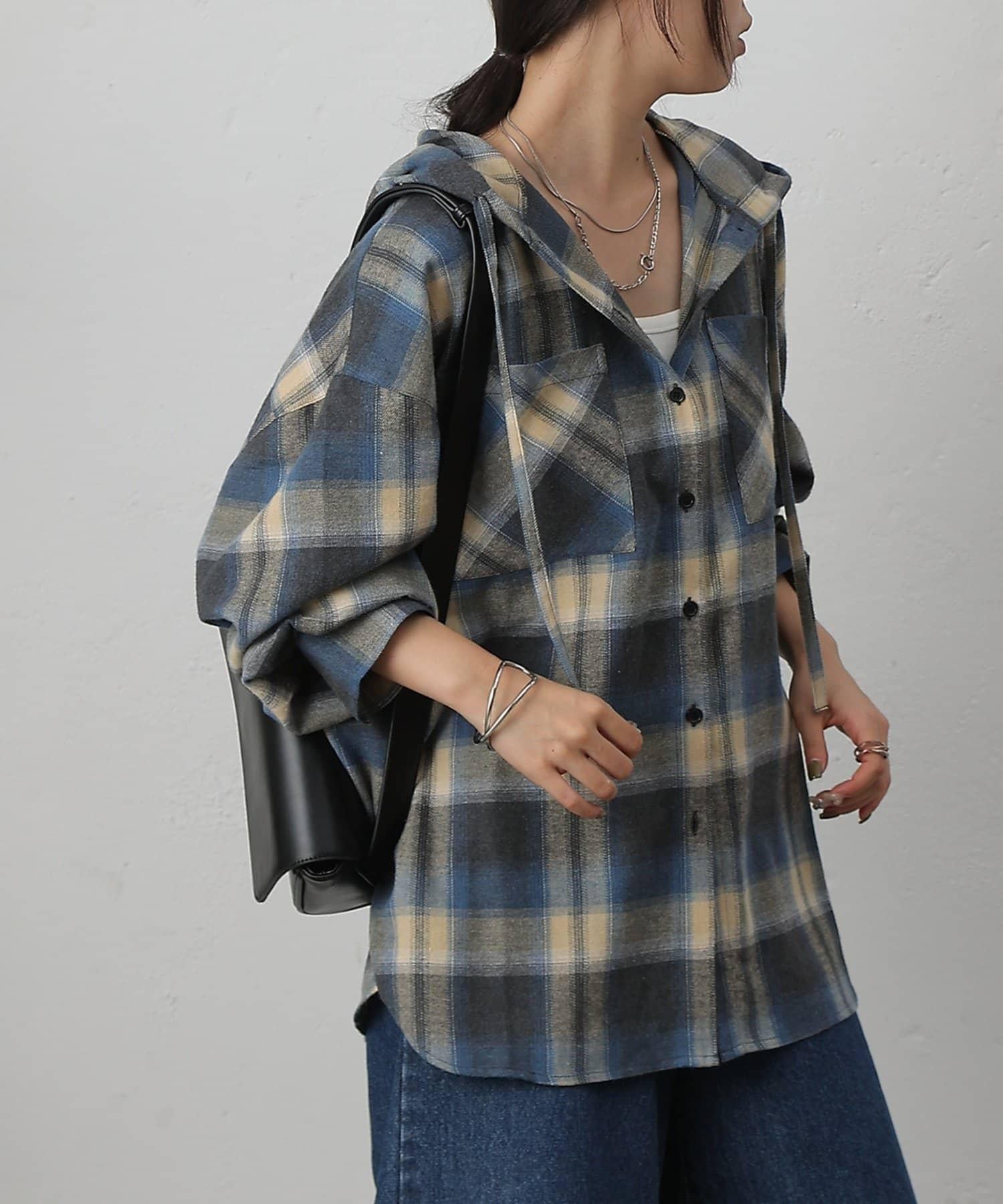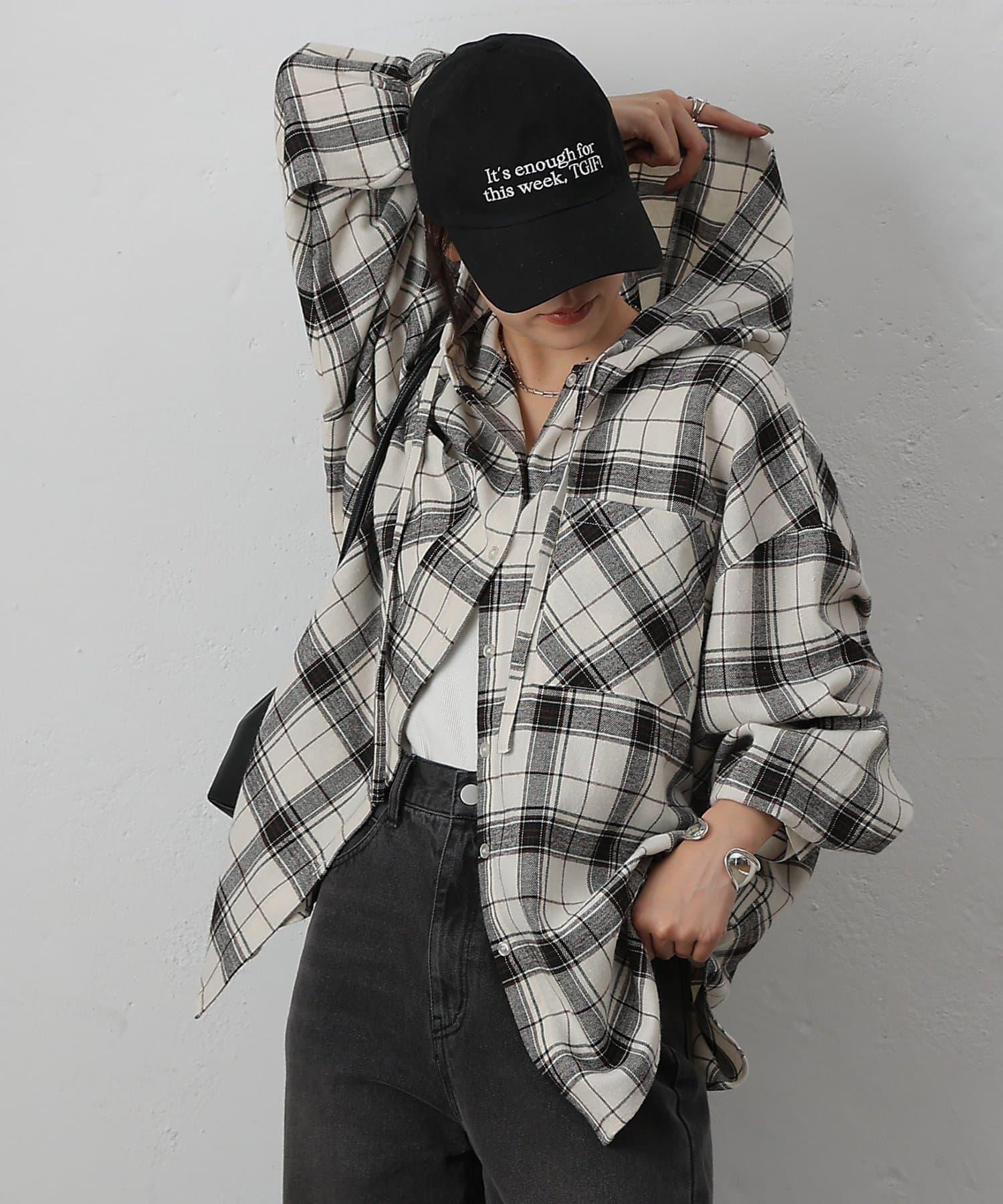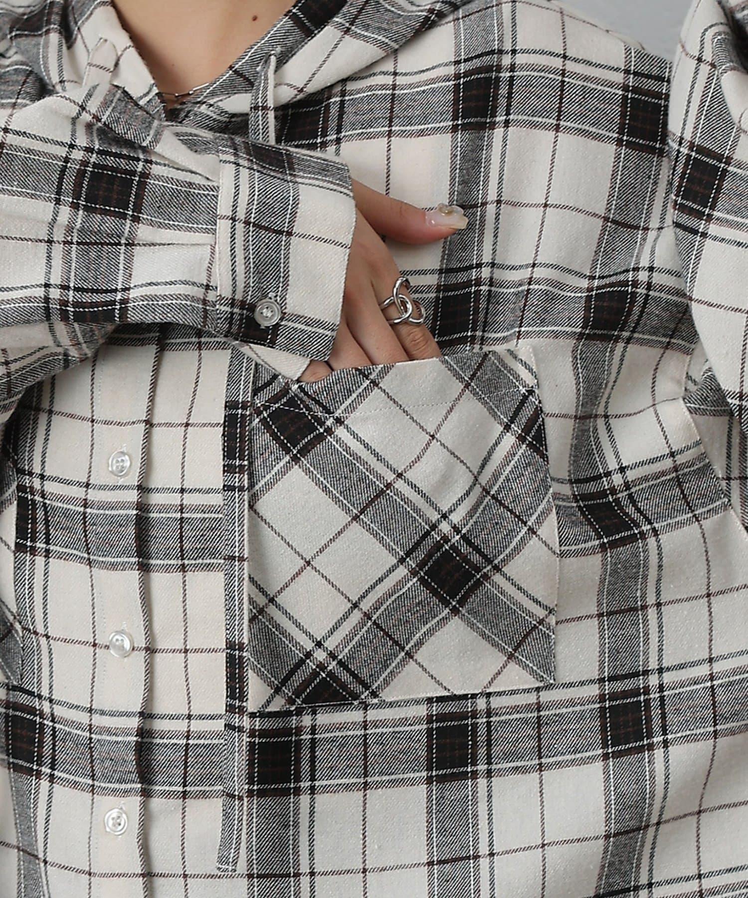 凸起面料製成的格紋連帽襯衫,非常適合秋冬休閒風格。