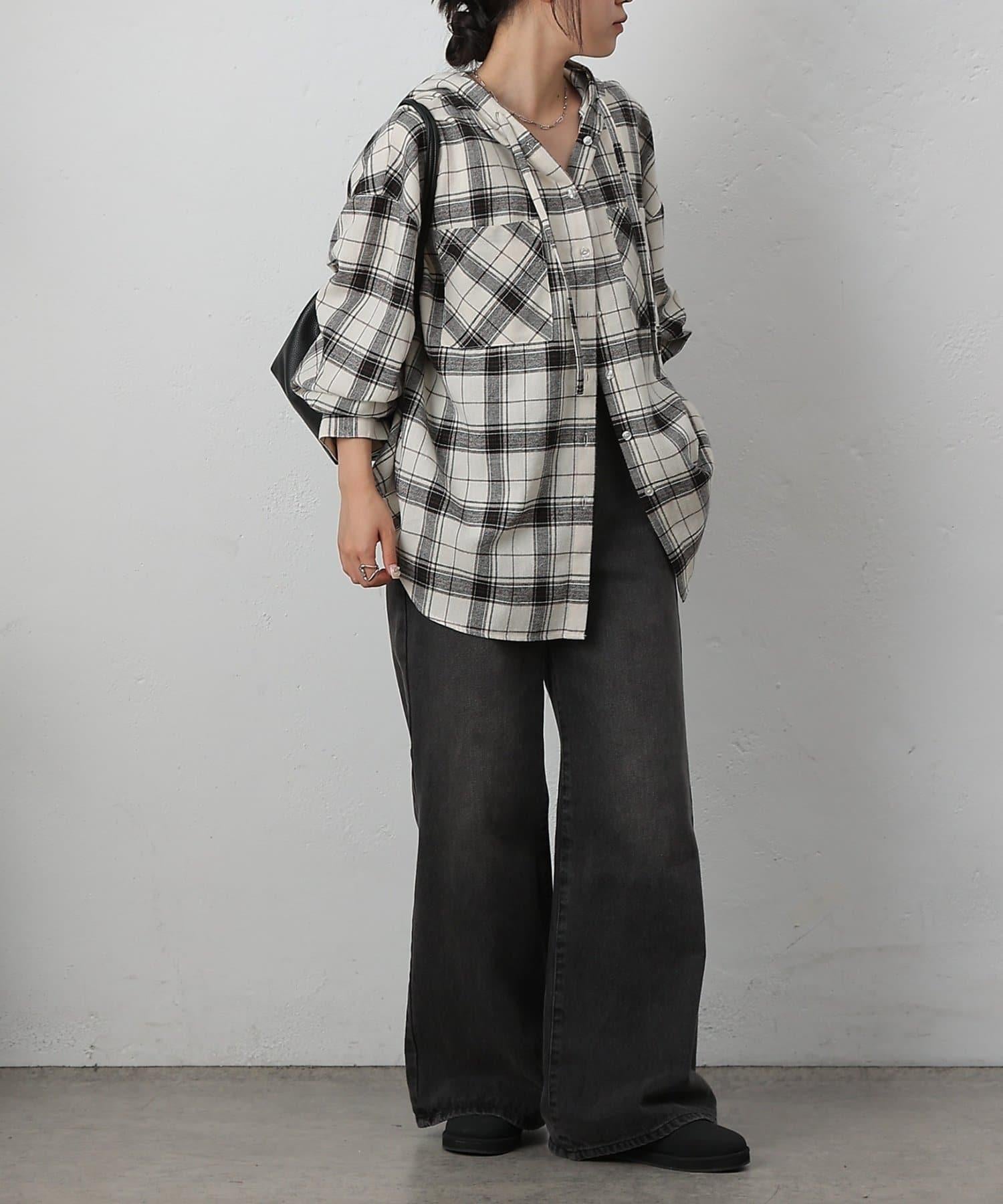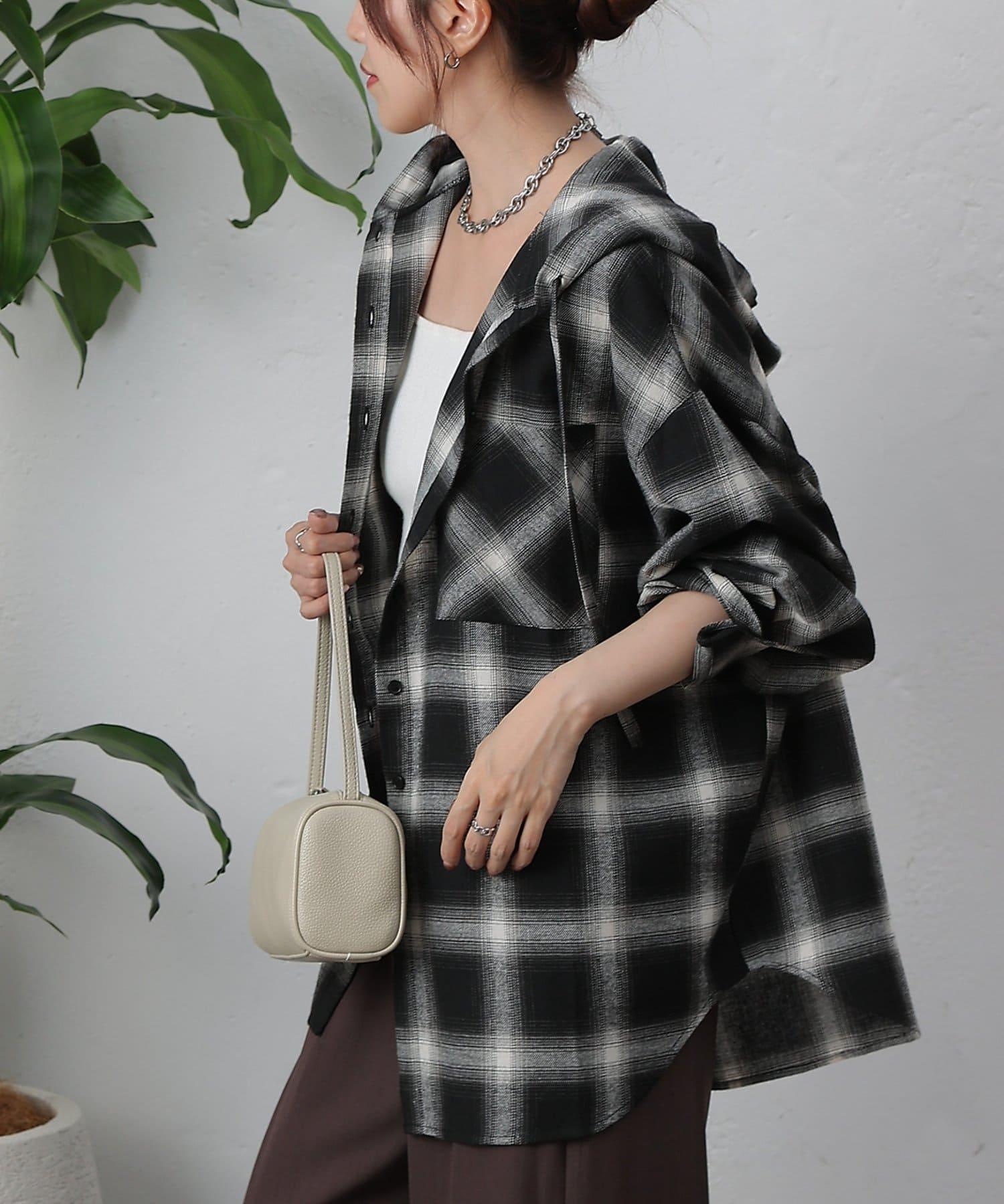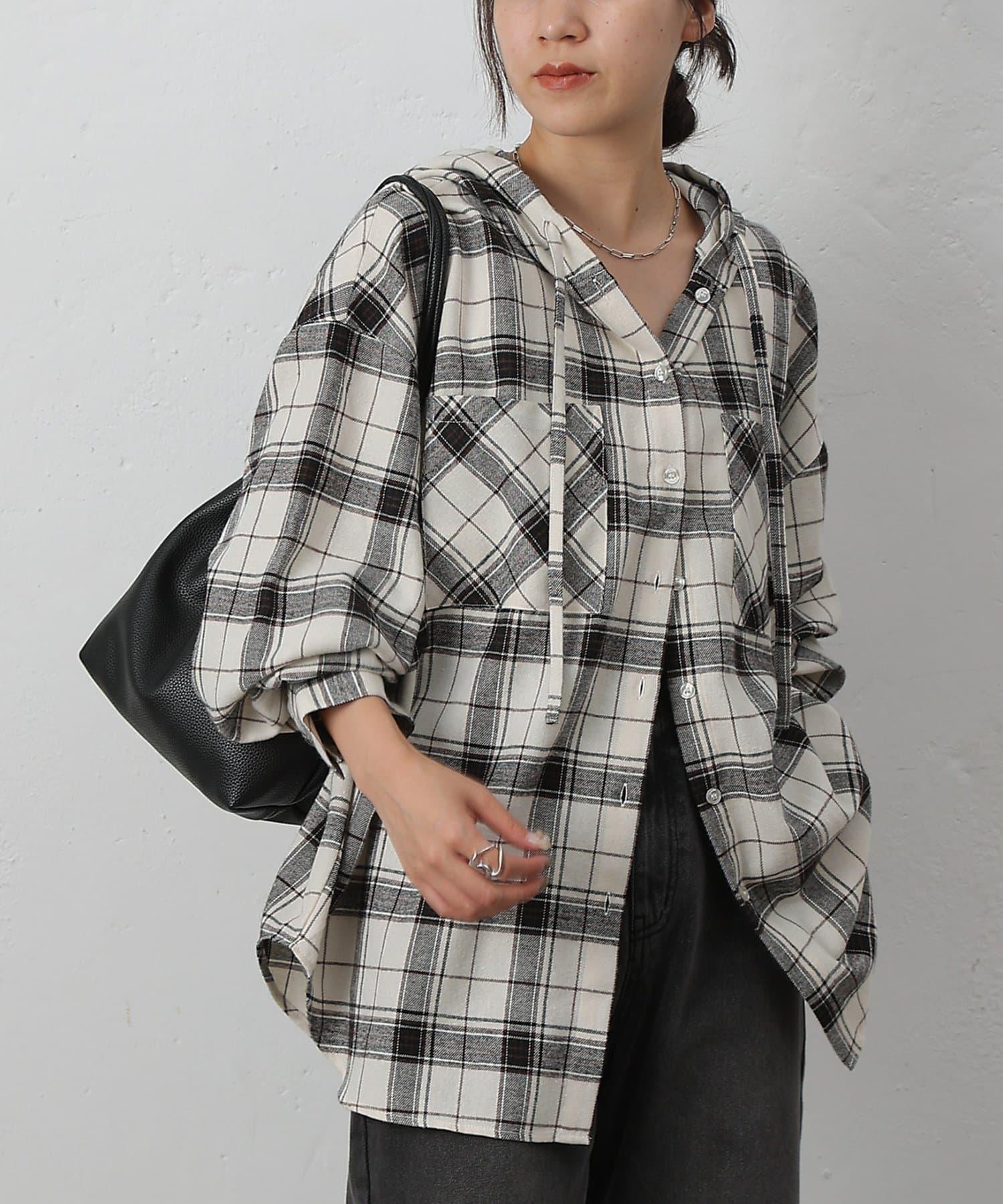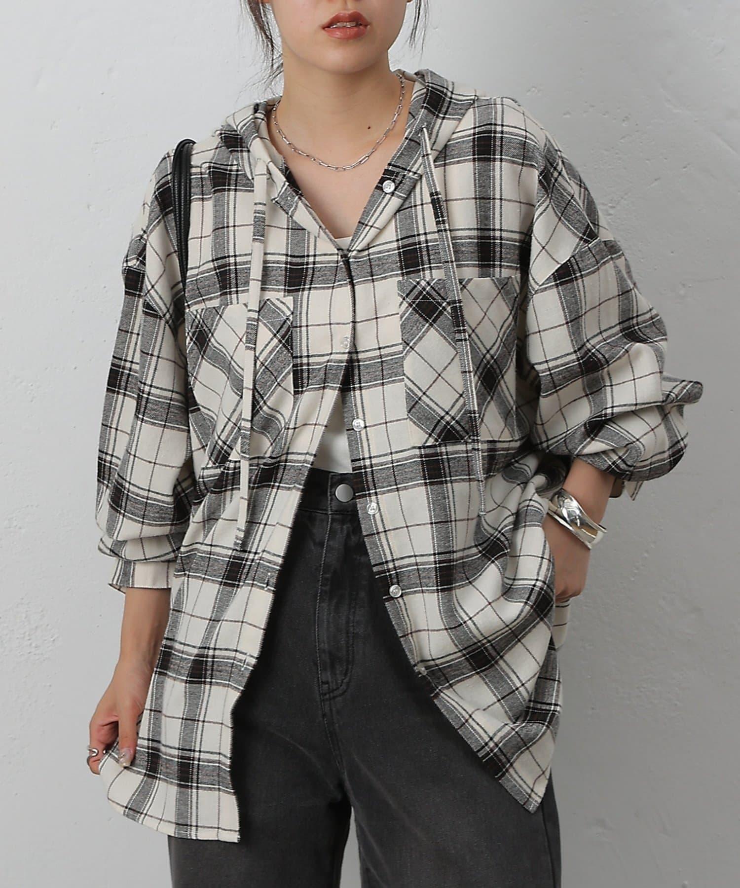 凸起面料製成的格紋連帽襯衫,非常適合秋冬休閒風格。