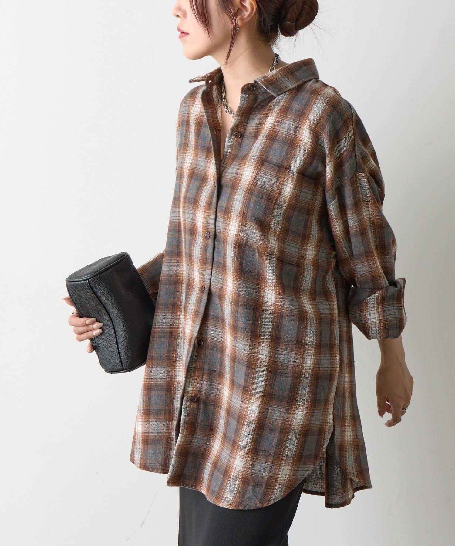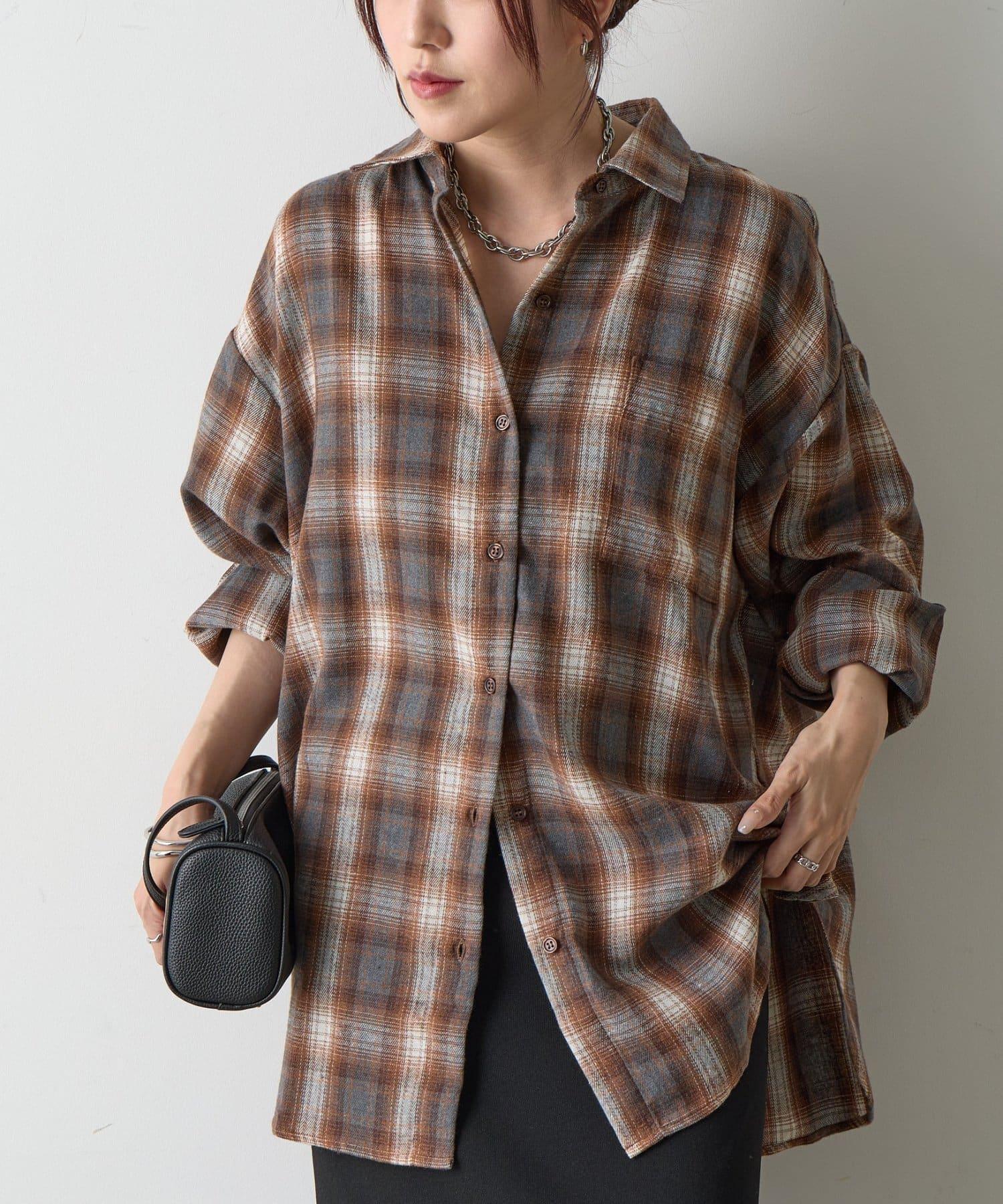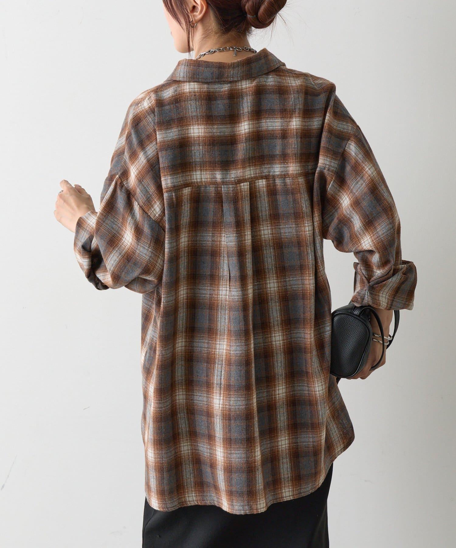 【AW】輕法蘭絨格紋寬鬆襯衫