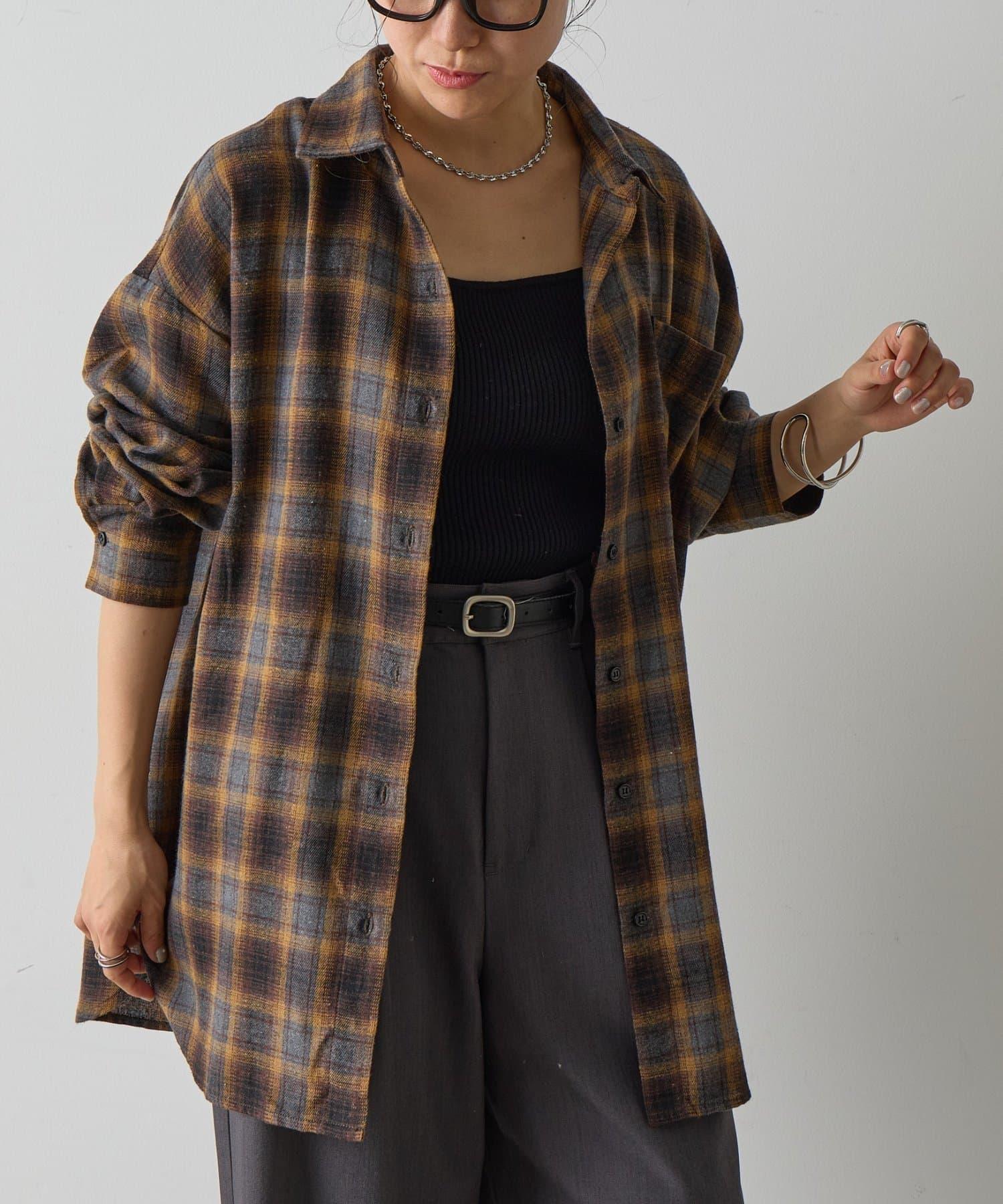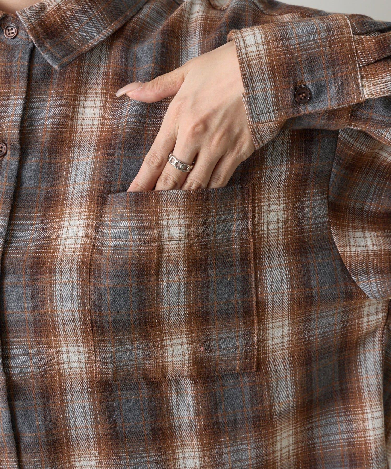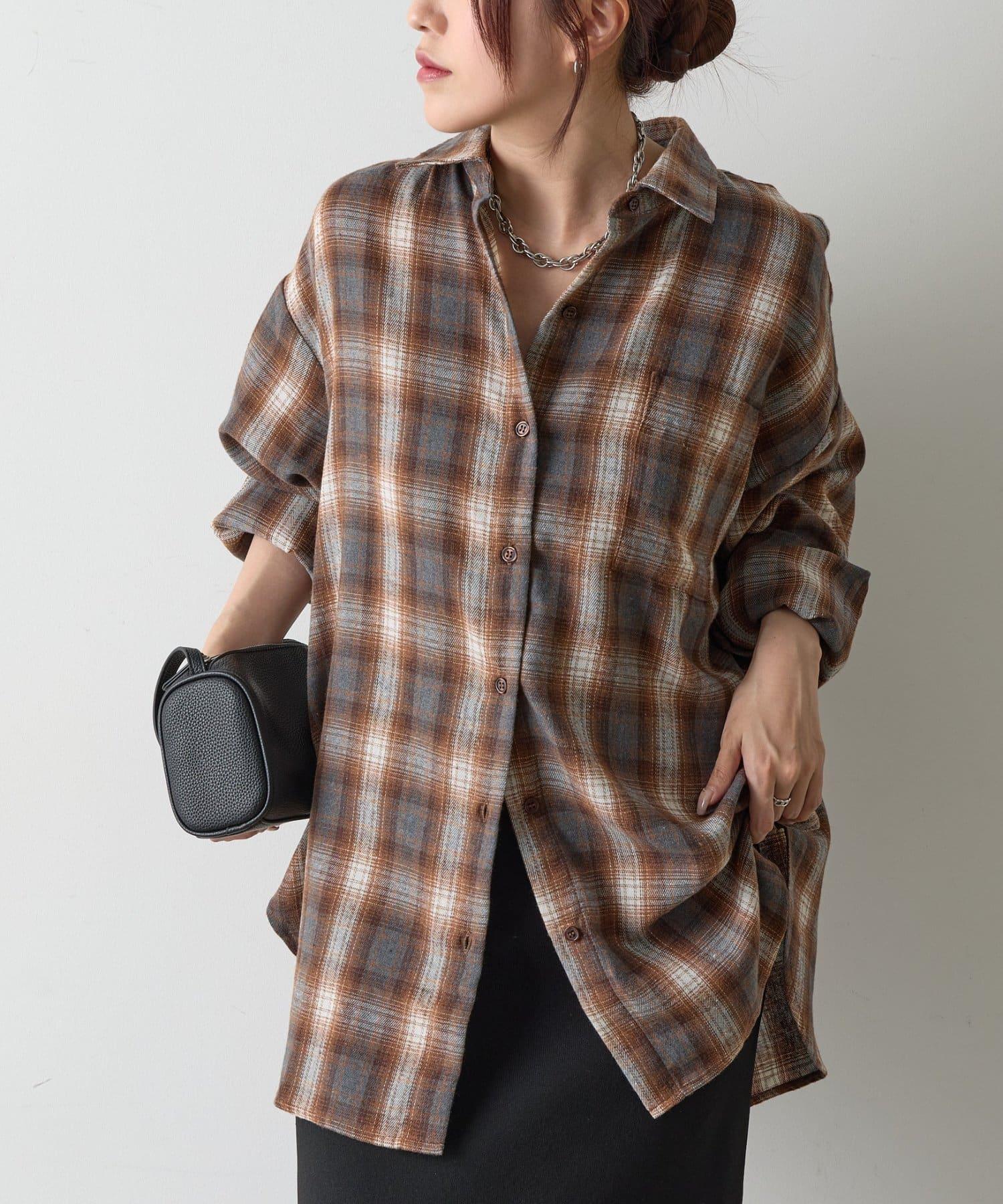 【AW】輕法蘭絨格紋寬鬆襯衫