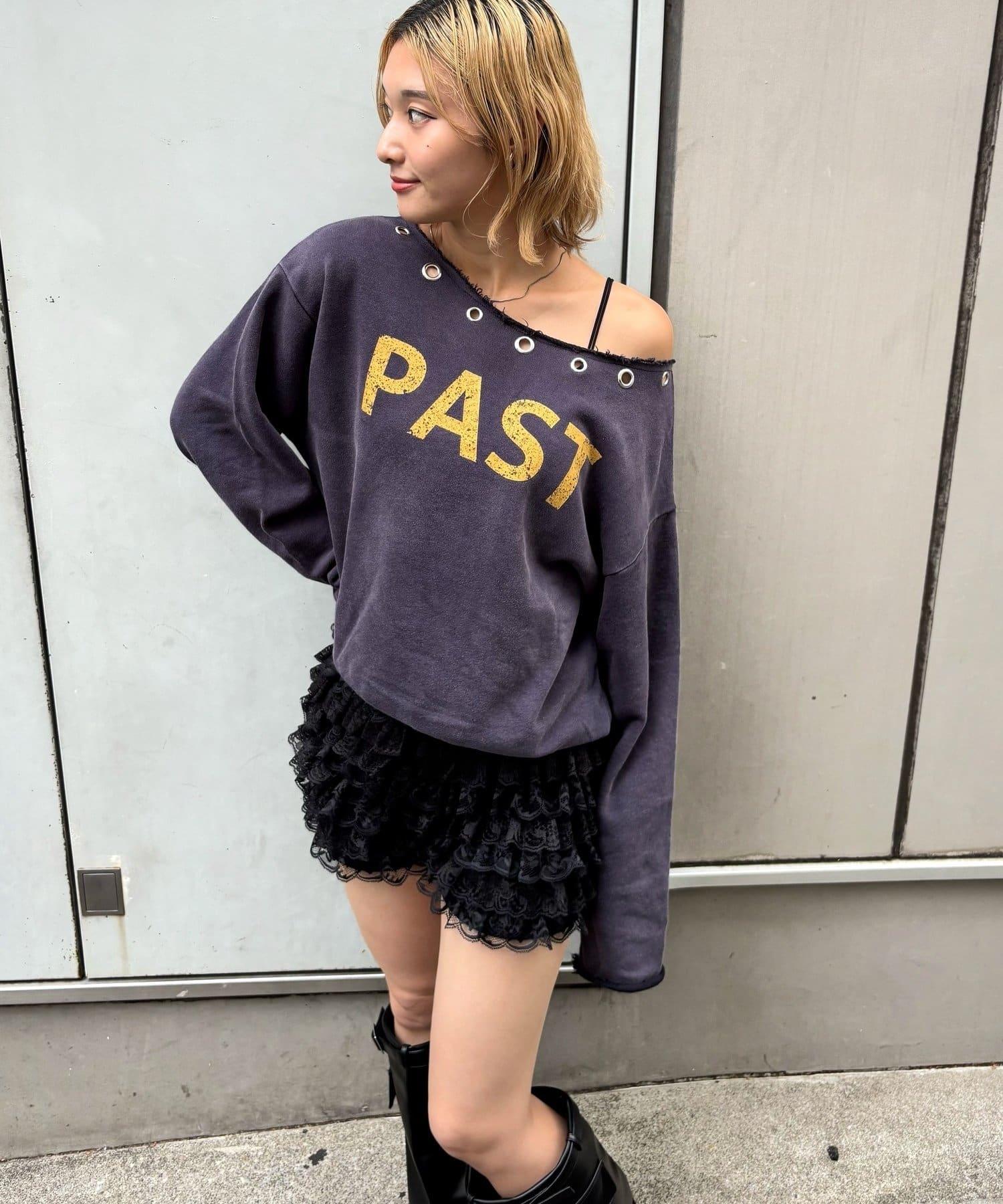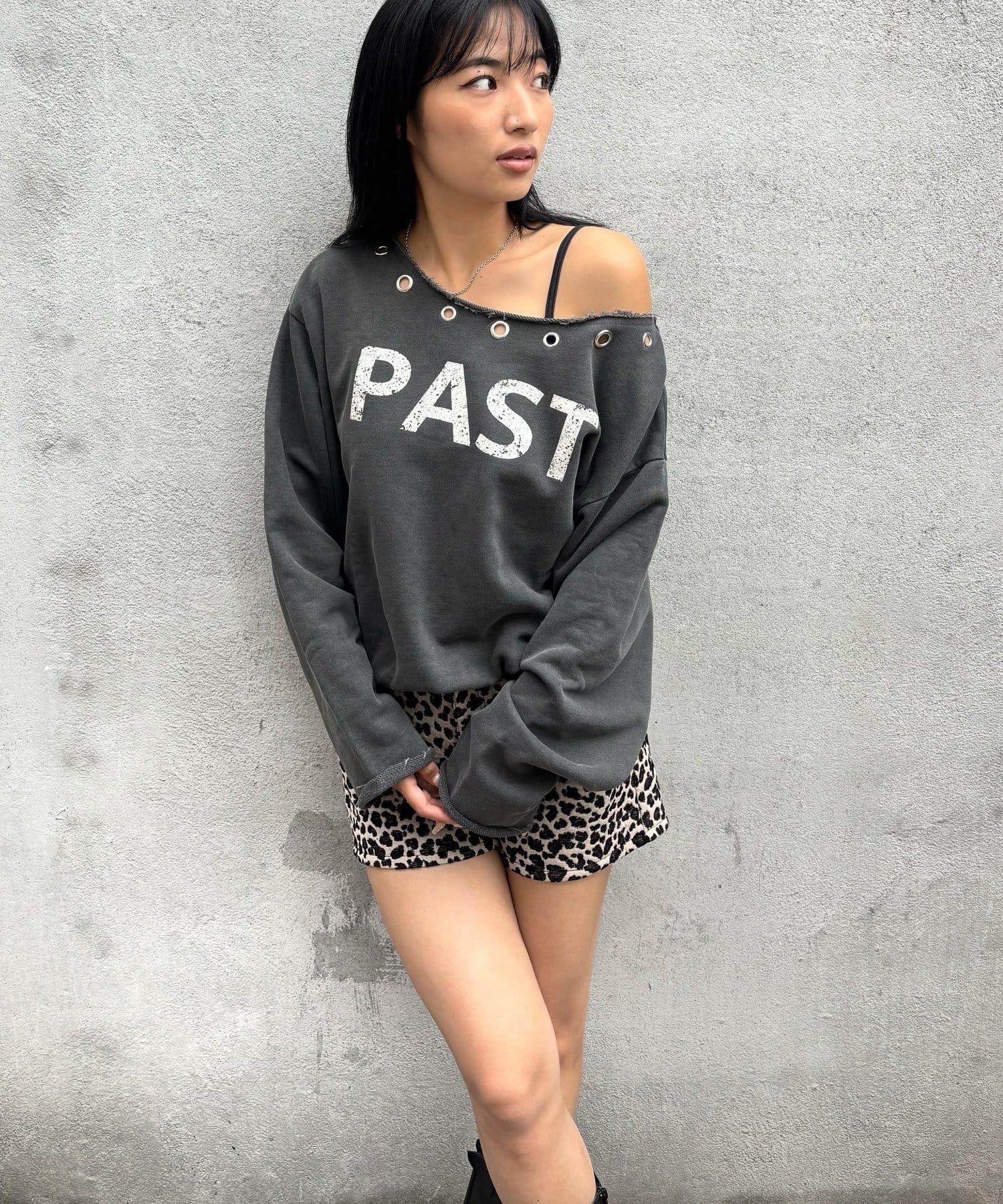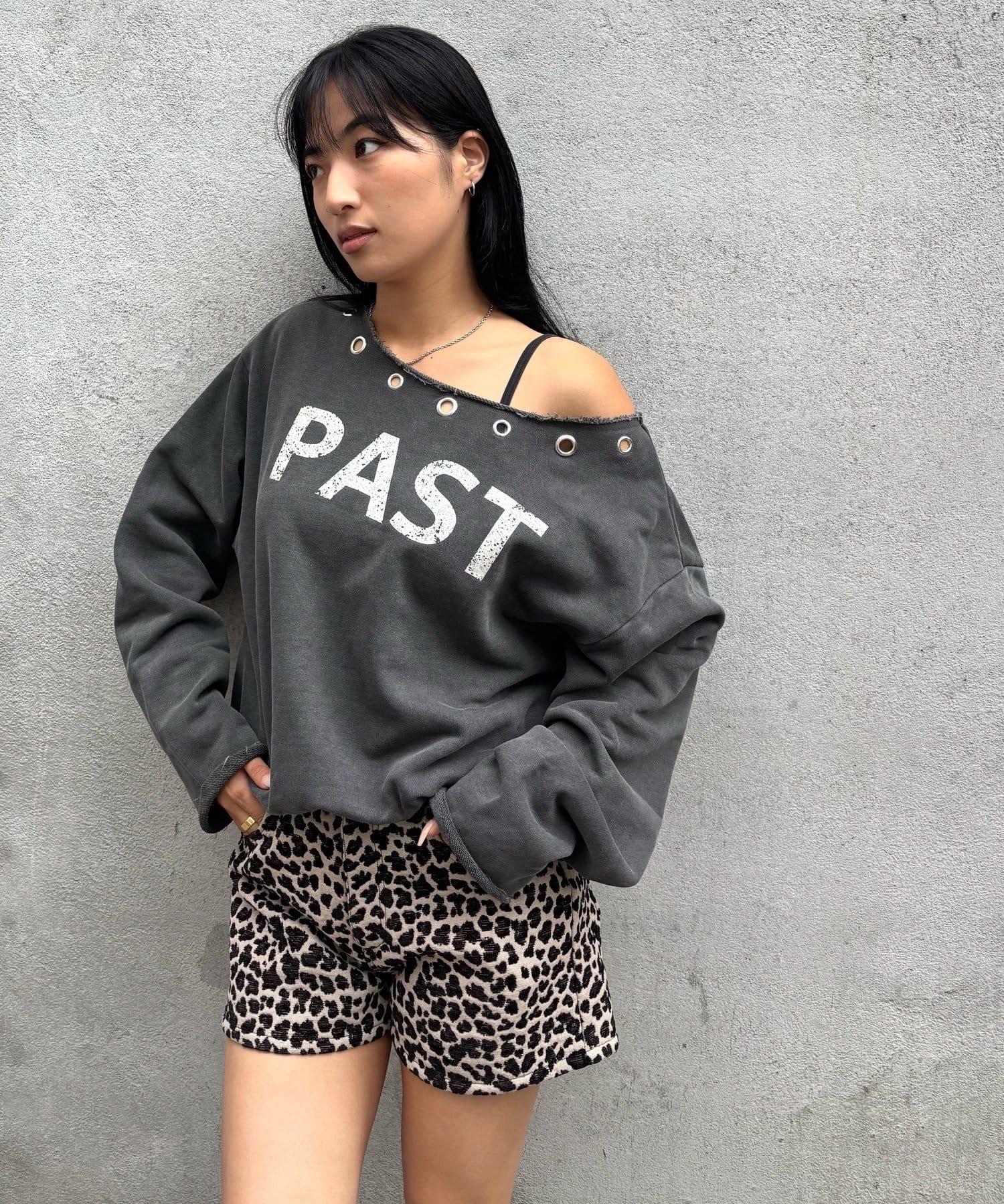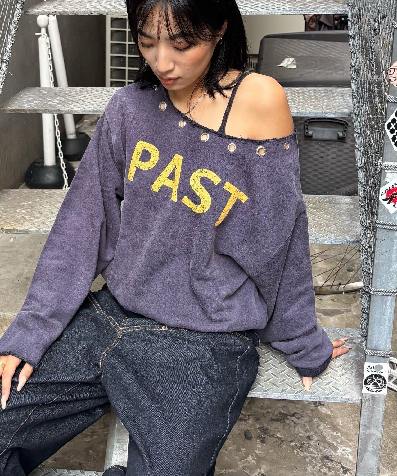 【AW】金屬孔裝飾一字肩標誌衛衣