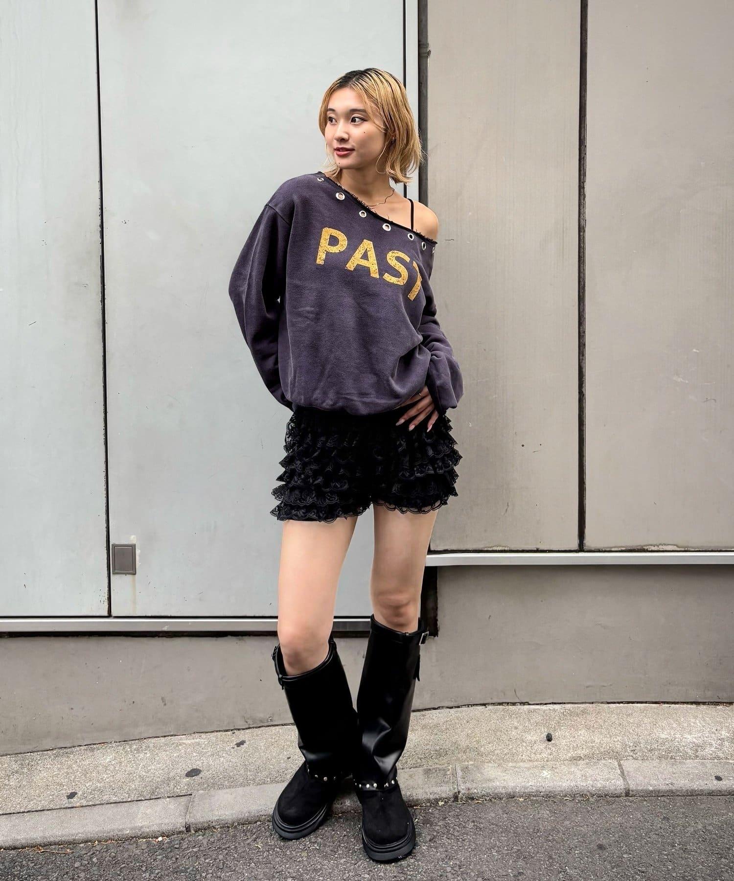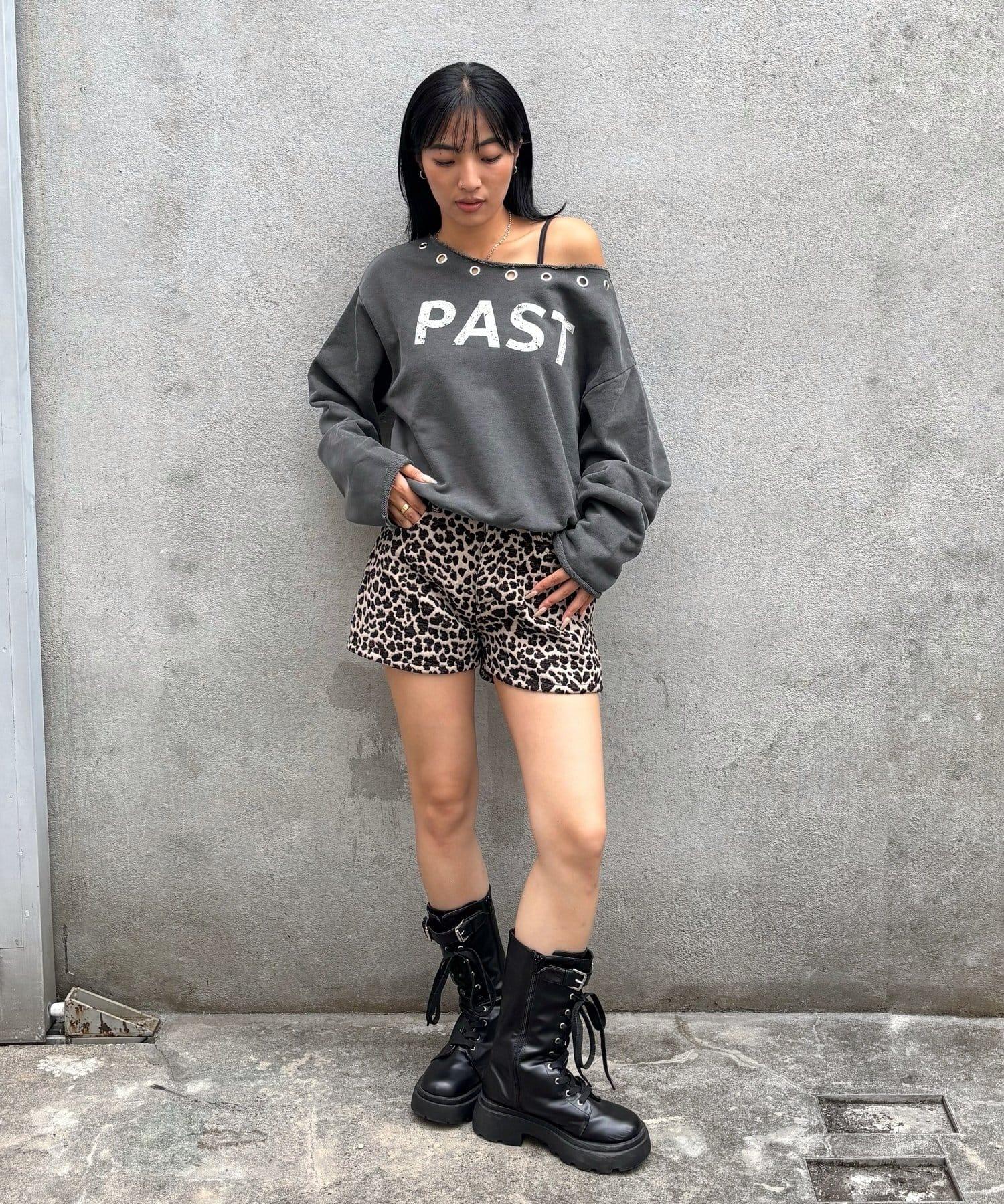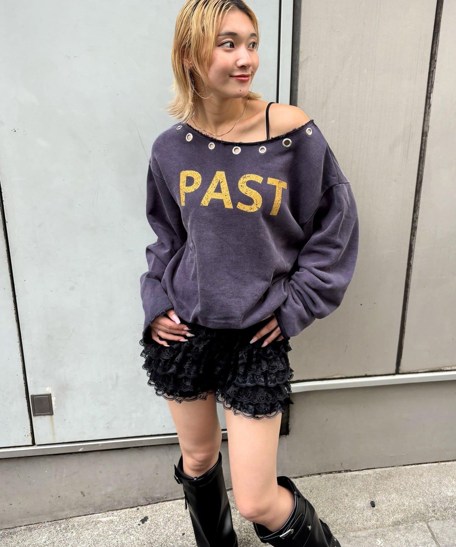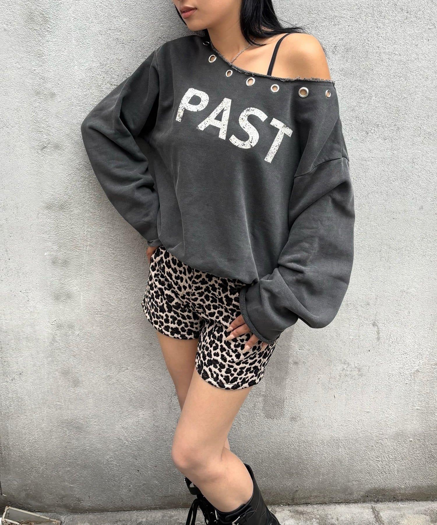 【AW】金屬孔裝飾一字肩標誌衛衣