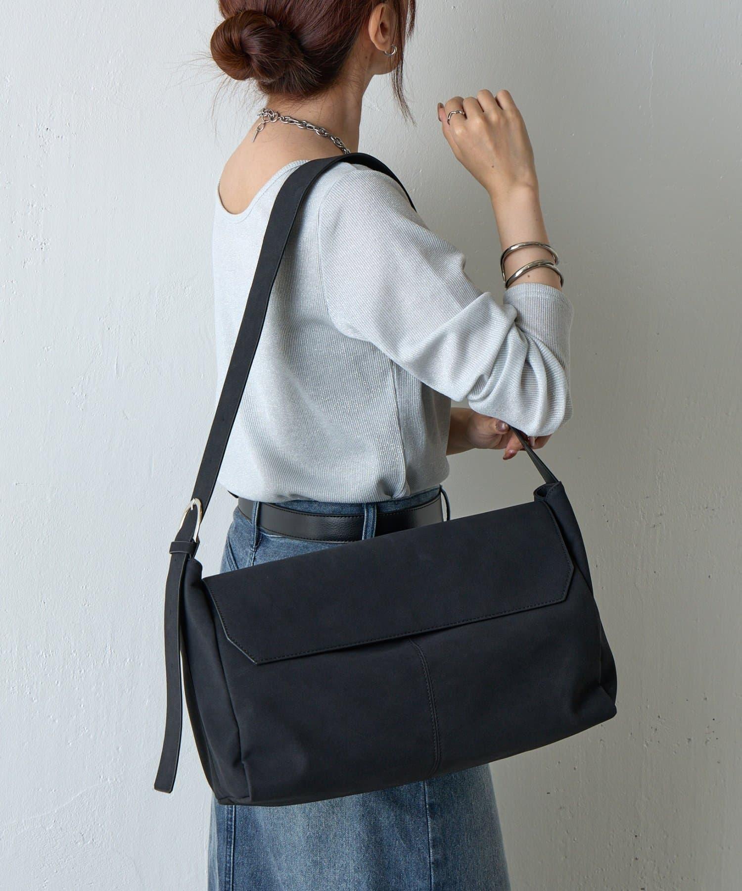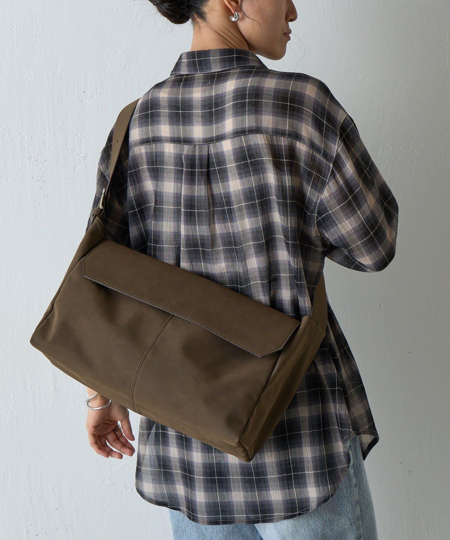 [優雅質感 ◎麂皮翻蓋單肩包]。