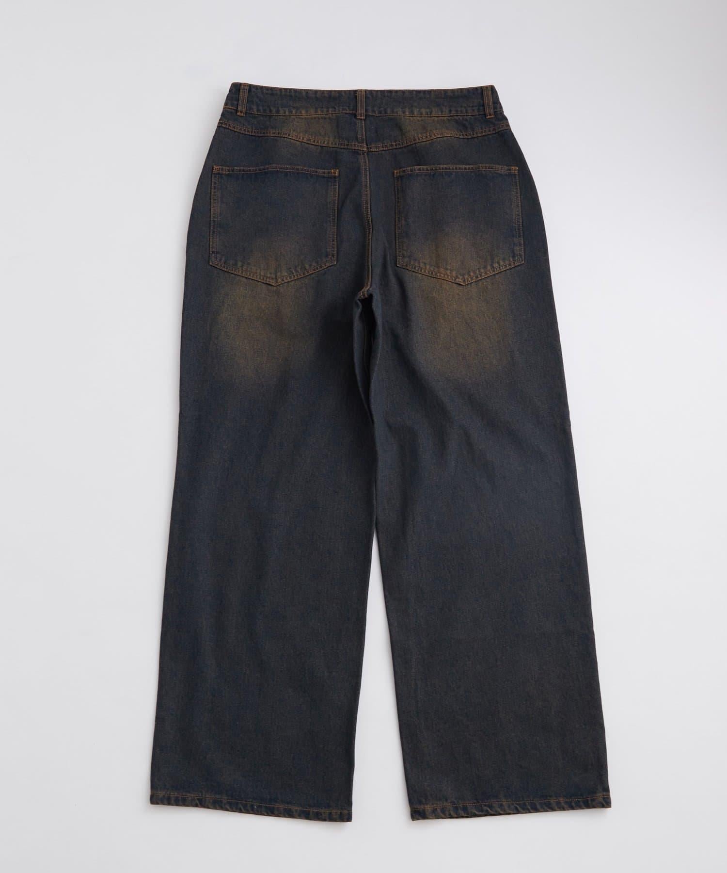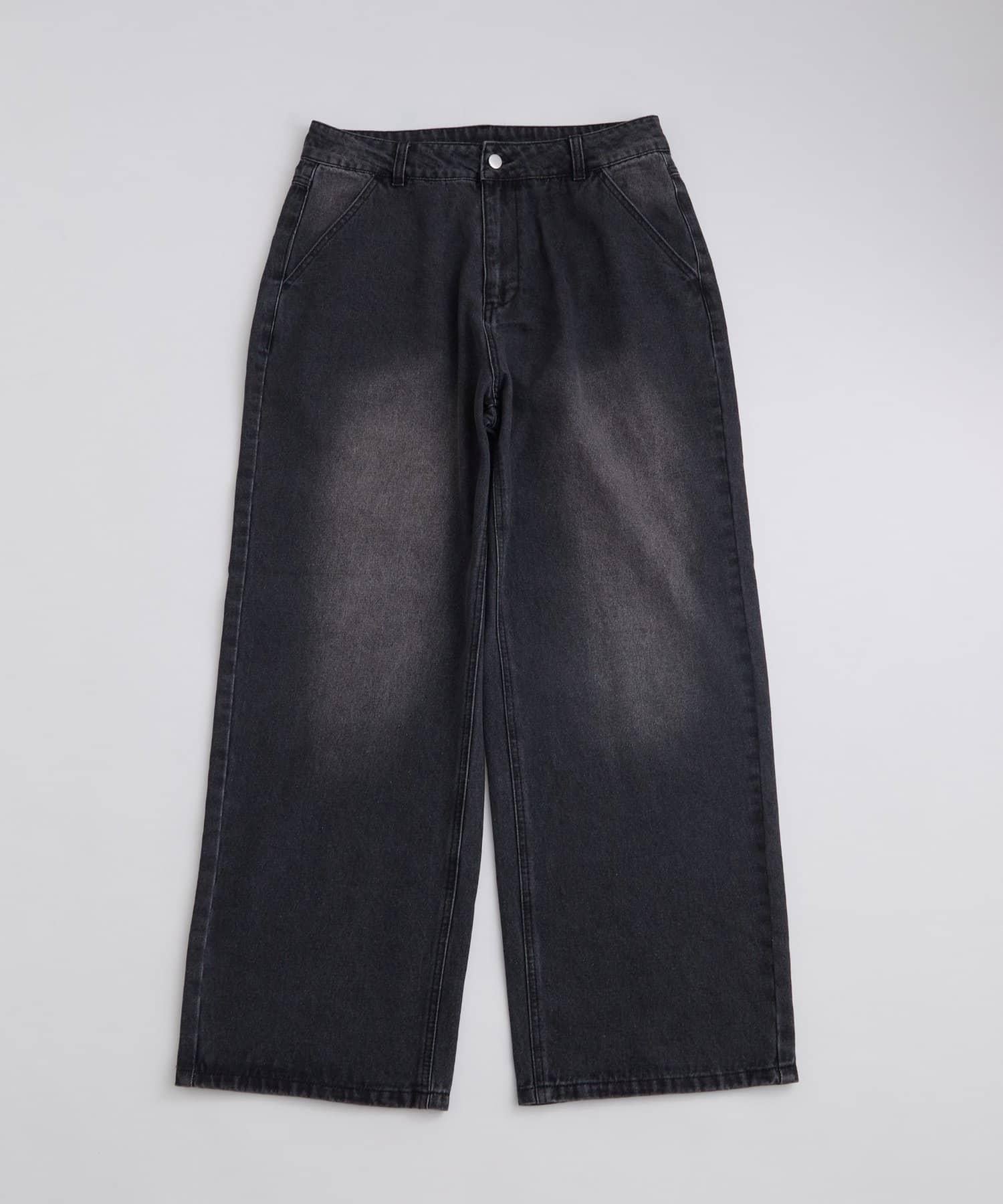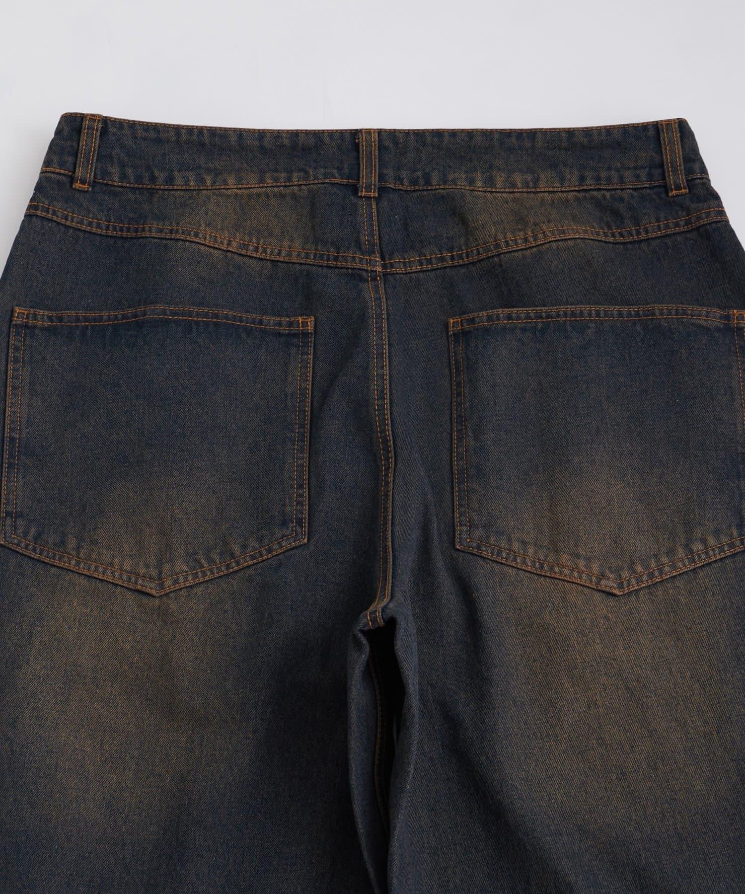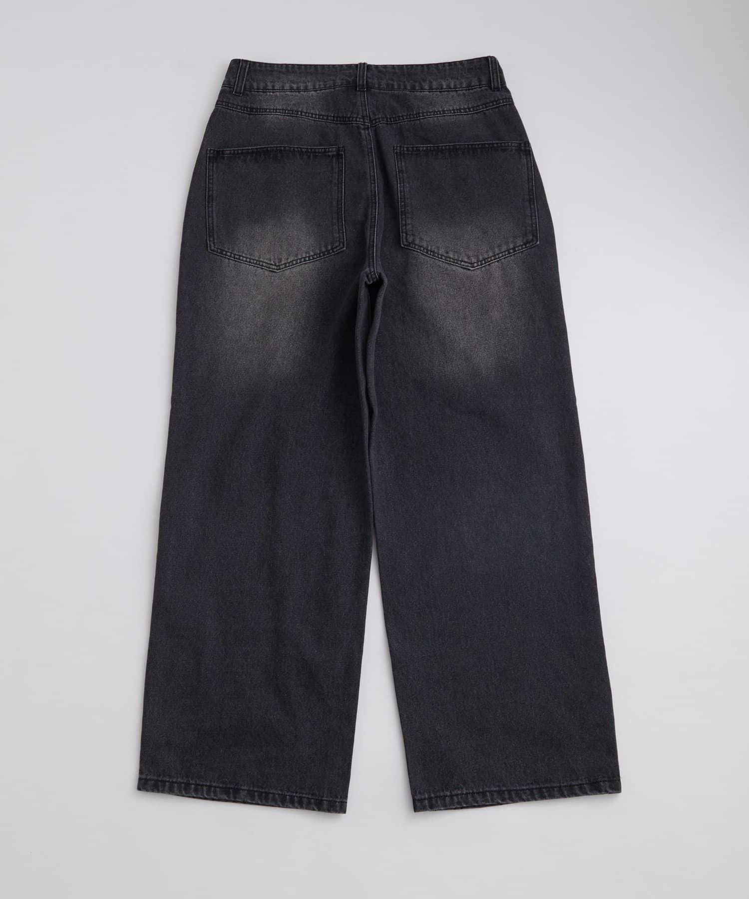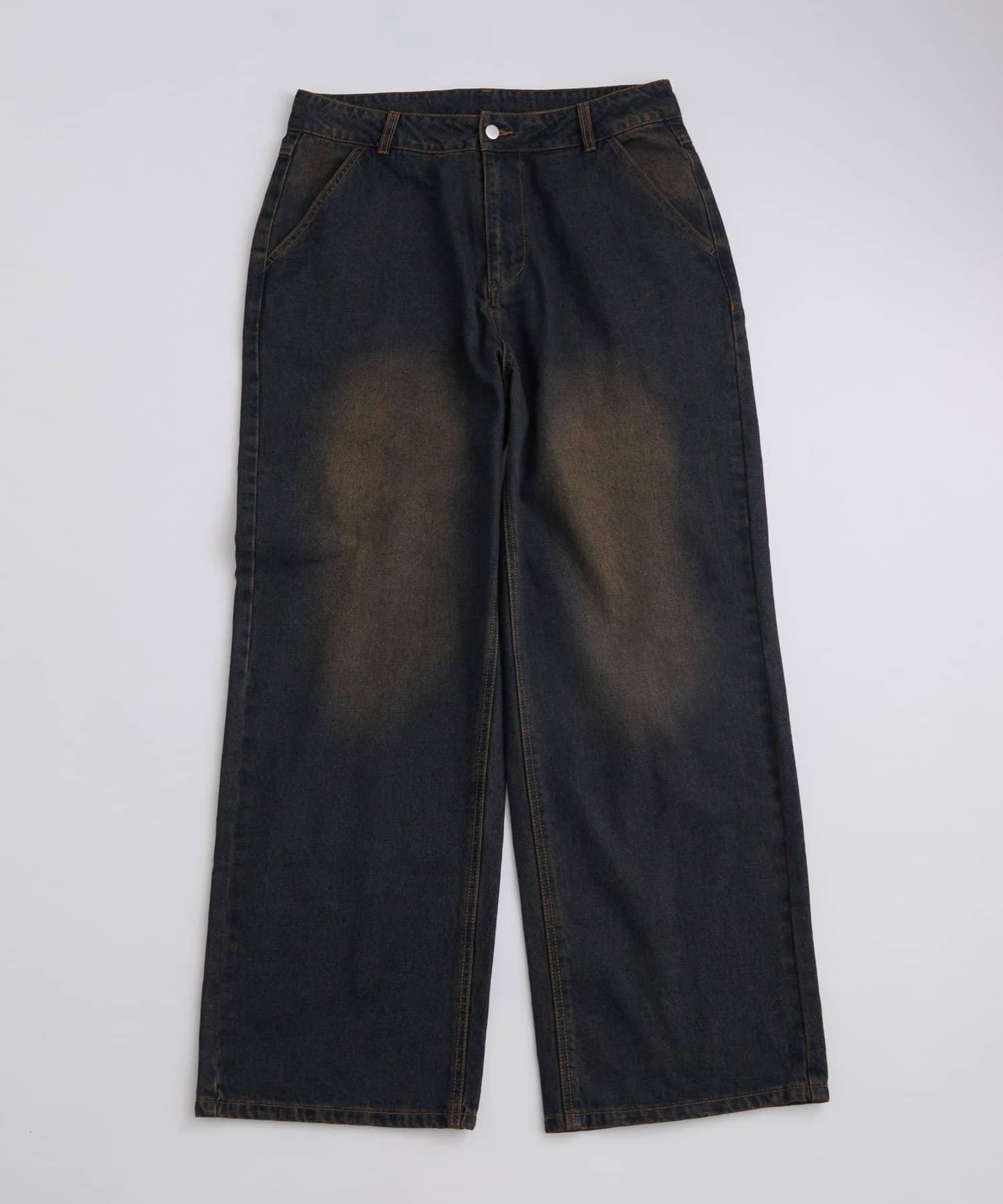 寬鬆牛仔褲,採用時尚獨特的噴砂處理。
