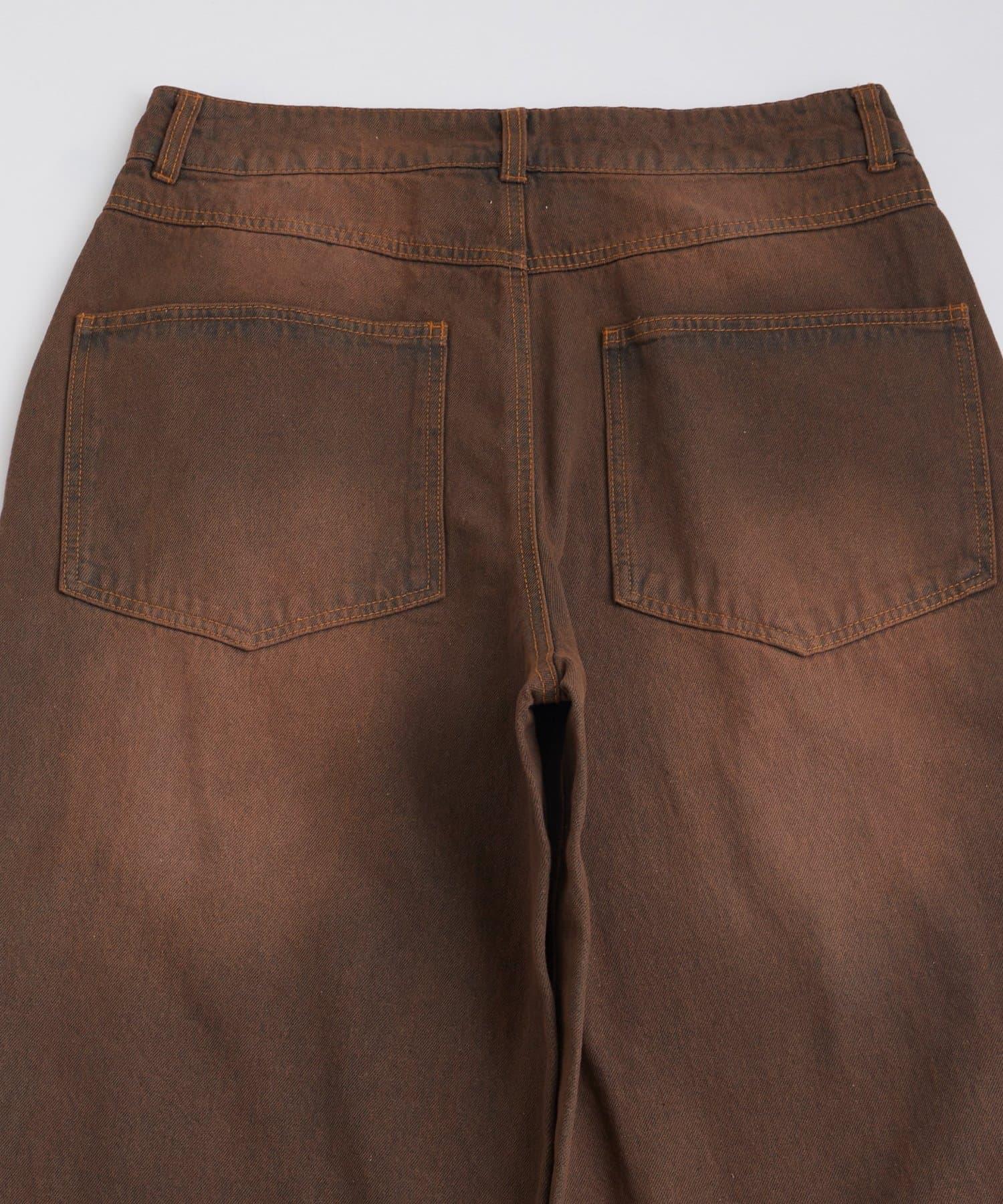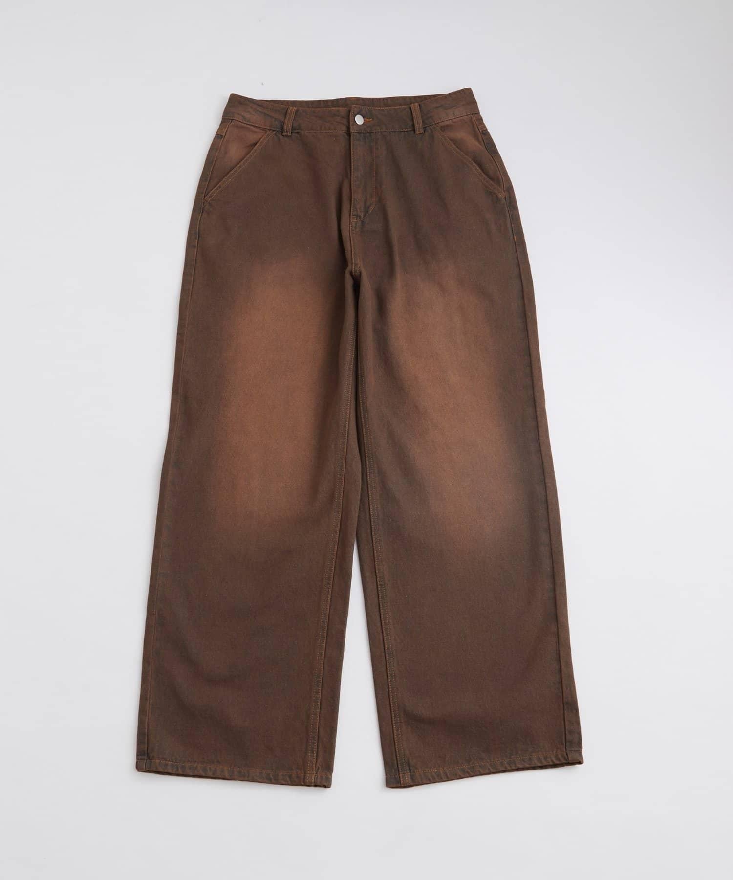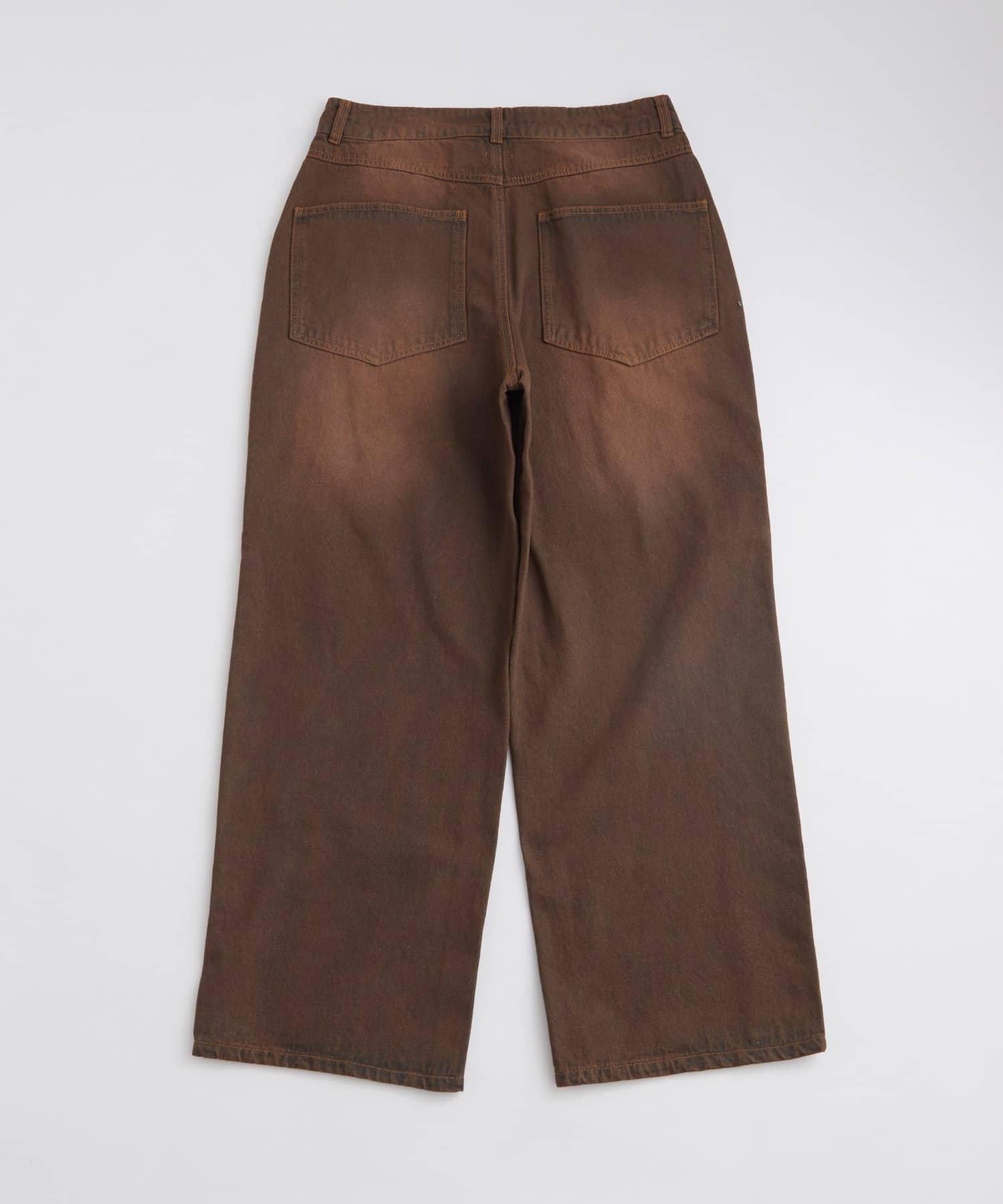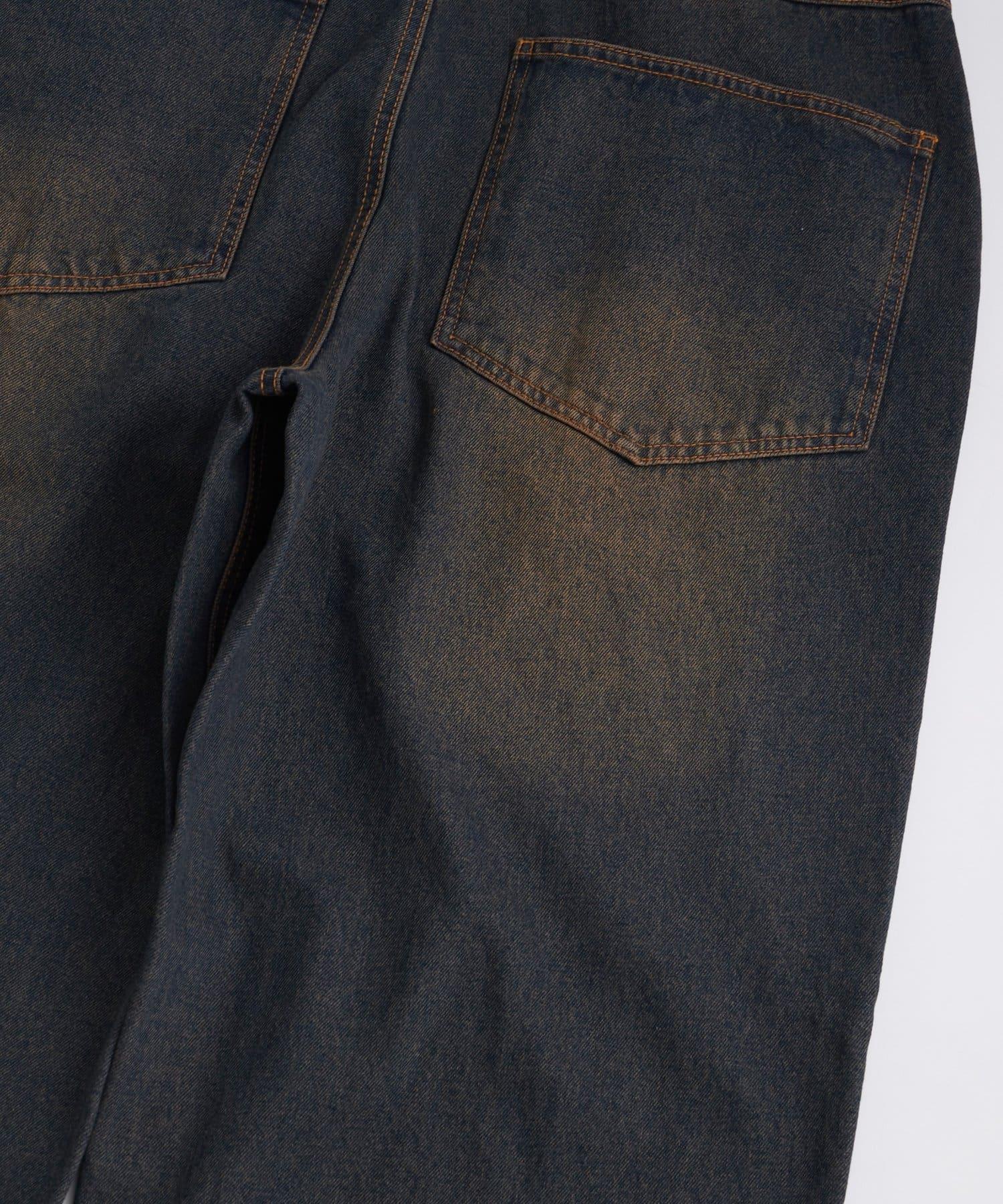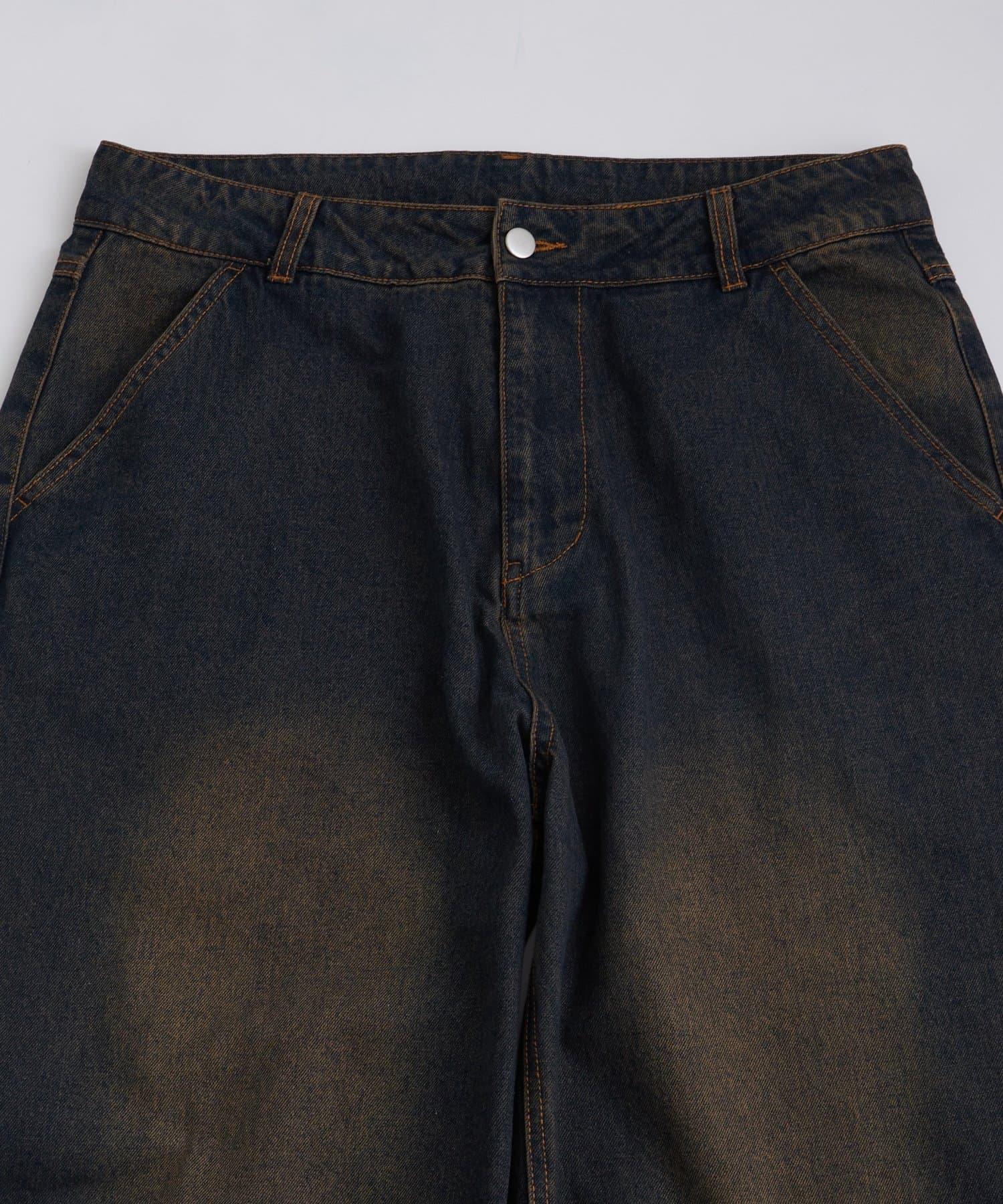 寬鬆牛仔褲,採用時尚獨特的噴砂處理。