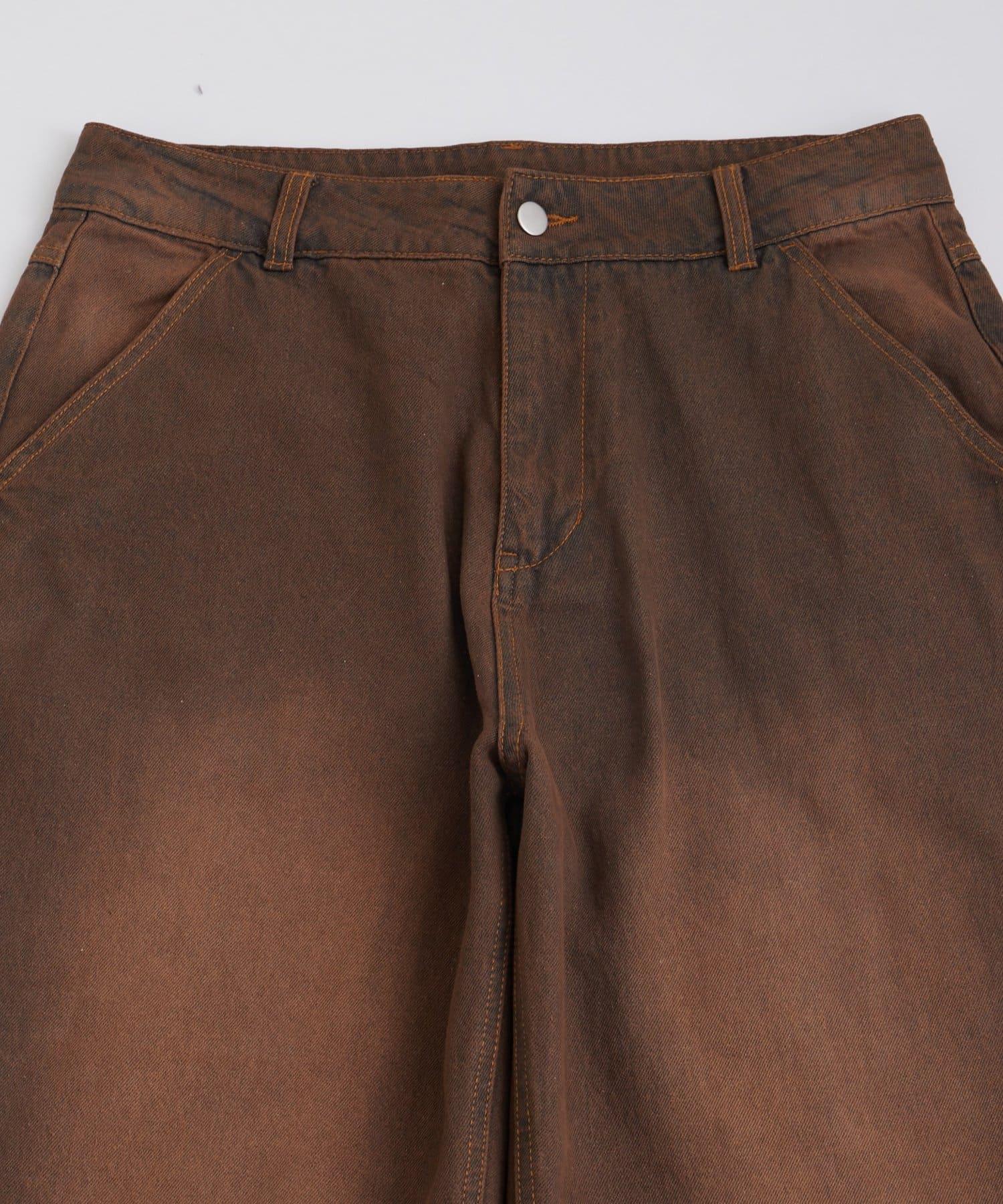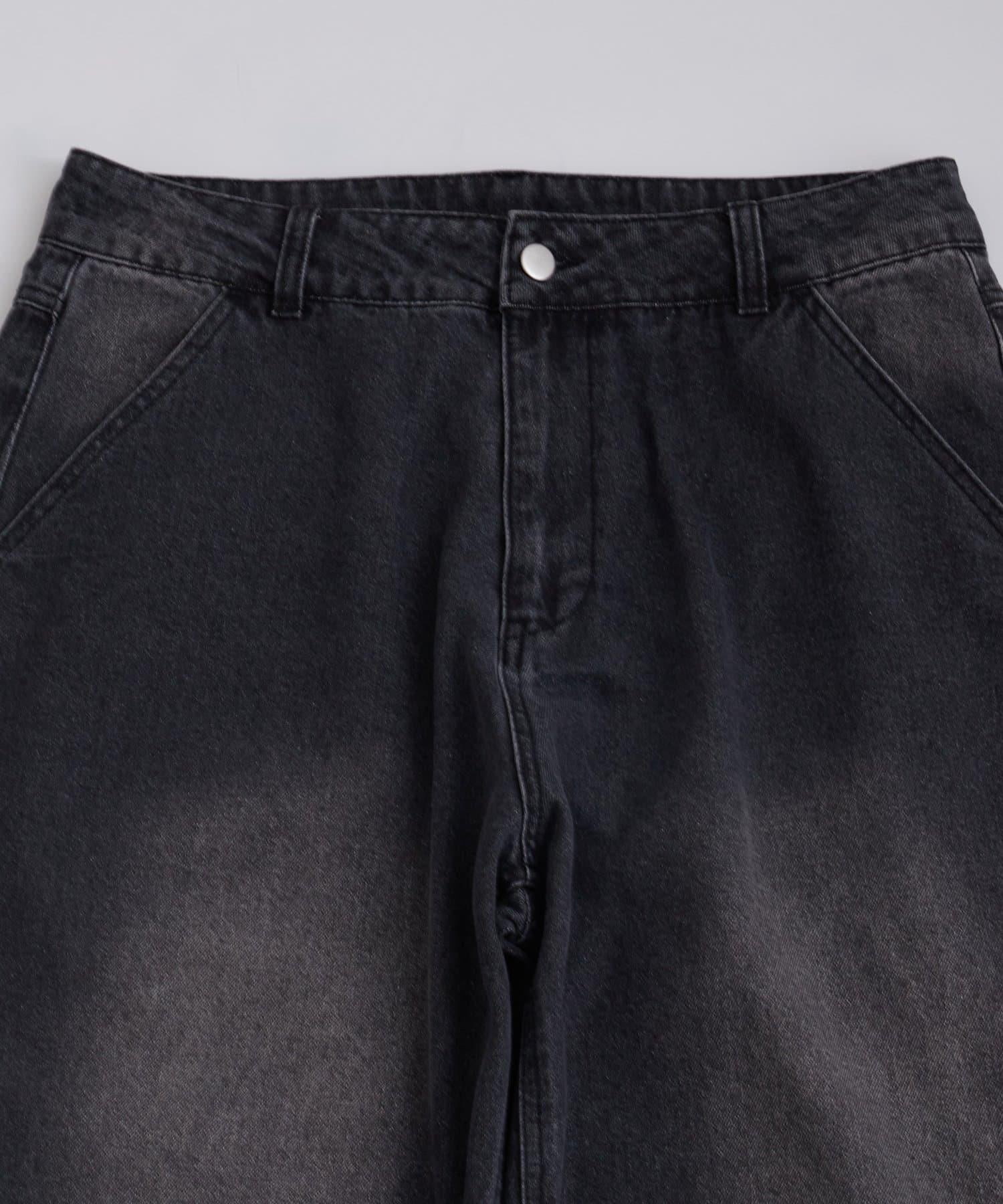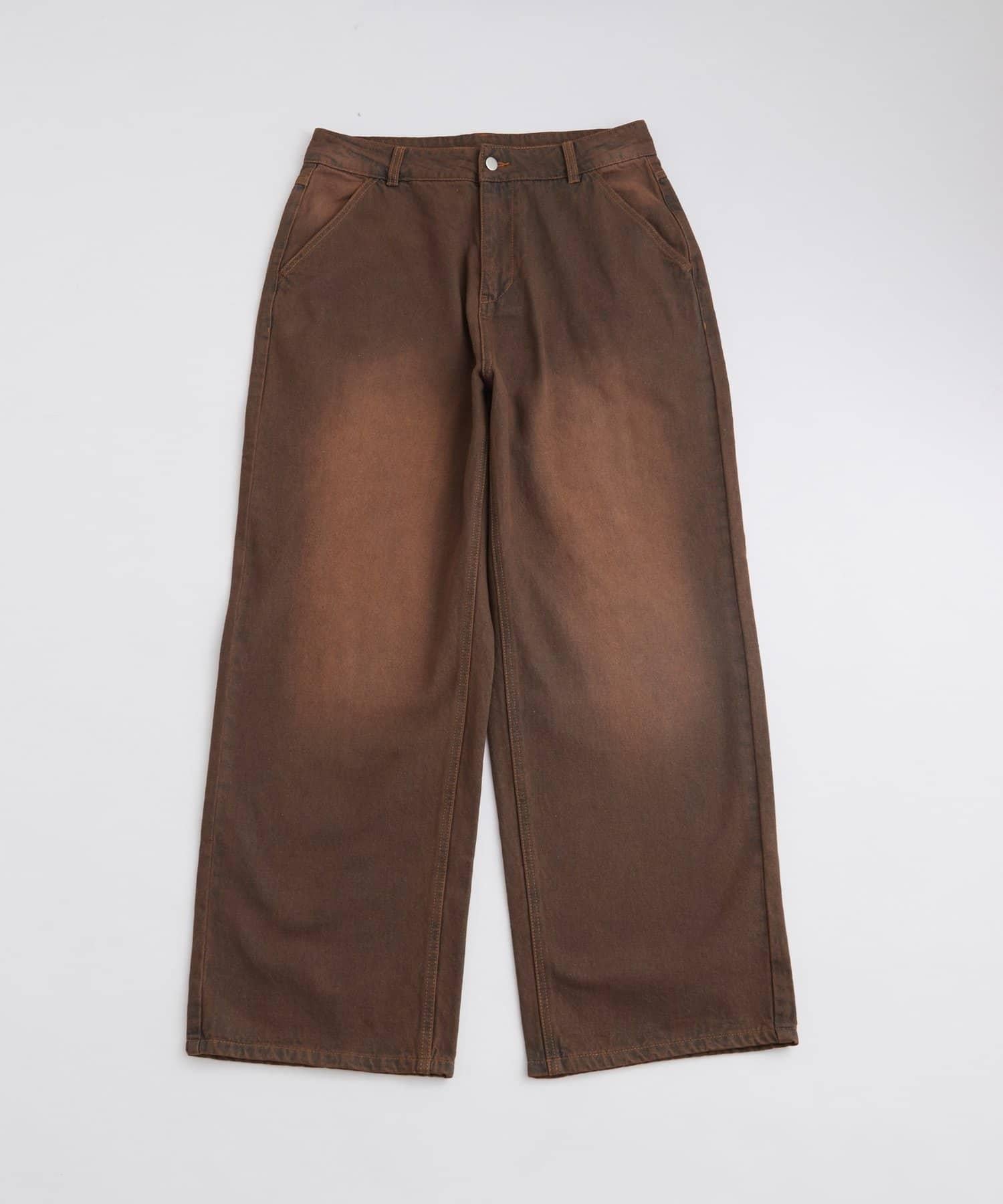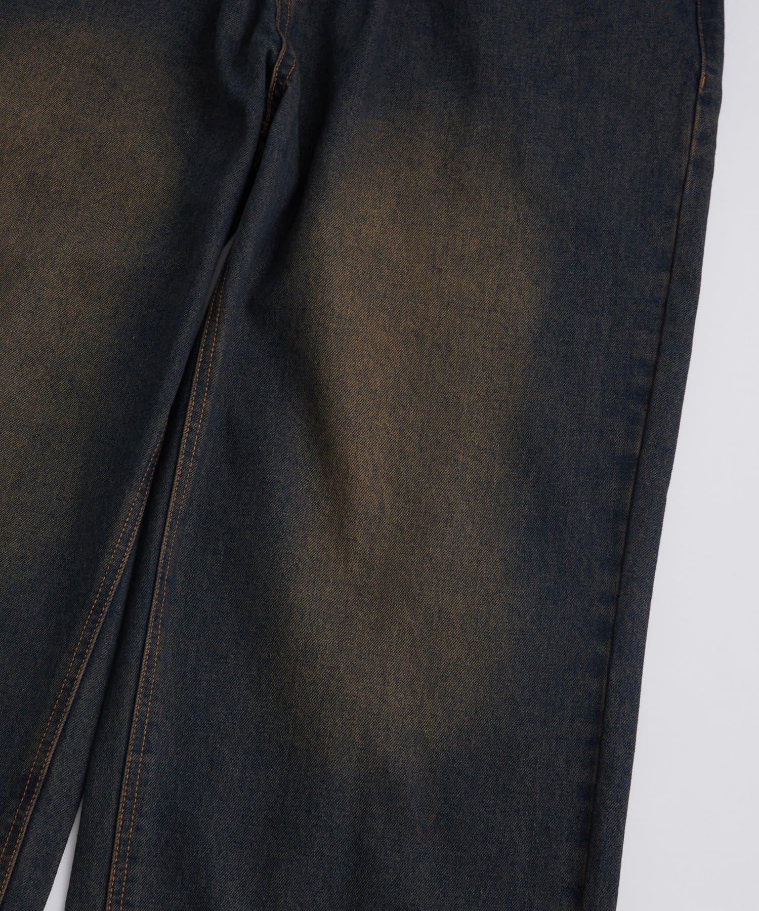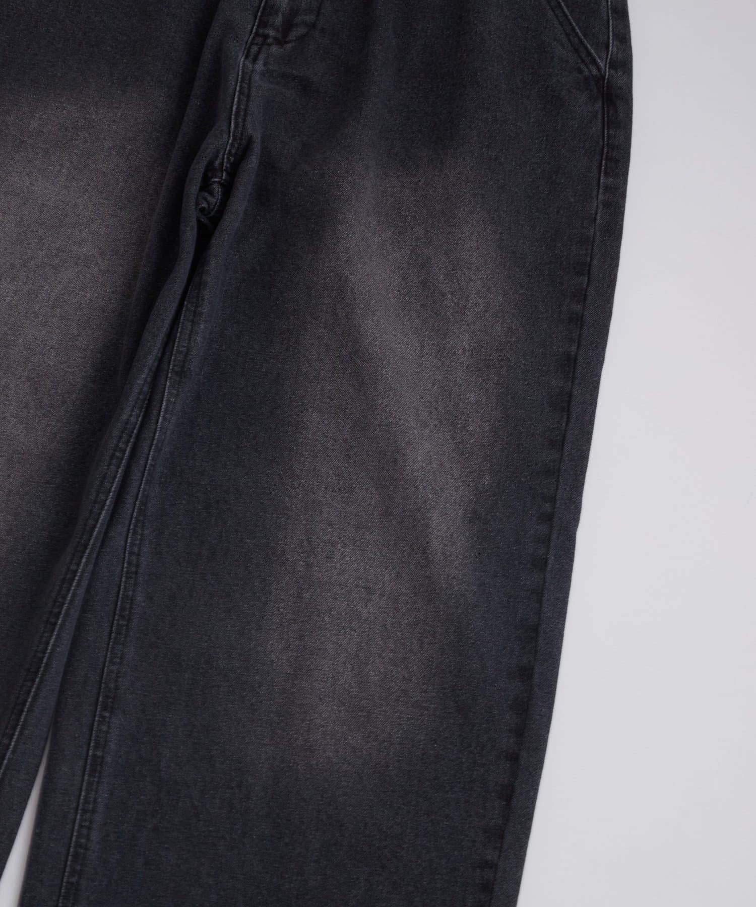 寬鬆牛仔褲,採用時尚獨特的噴砂處理。