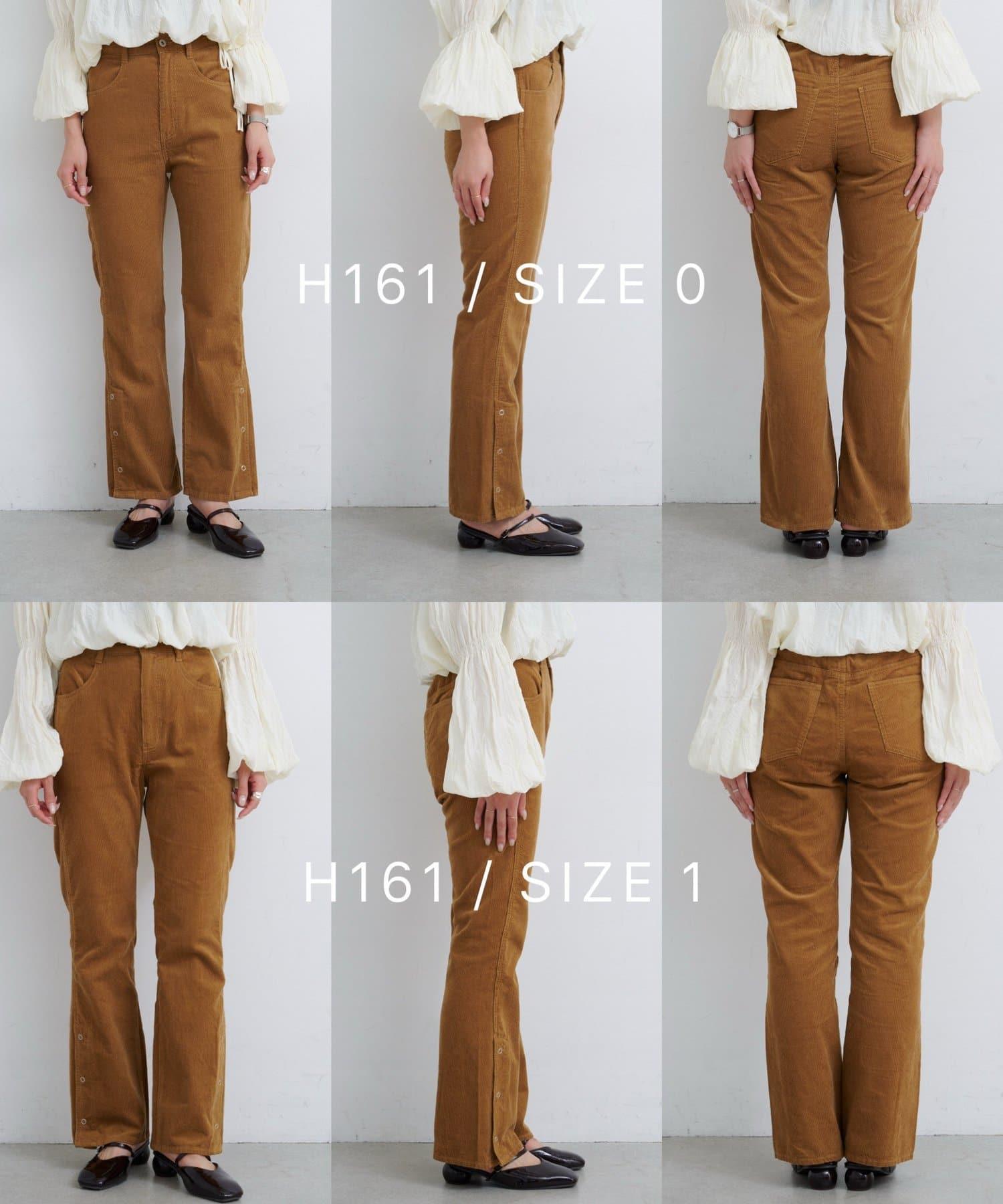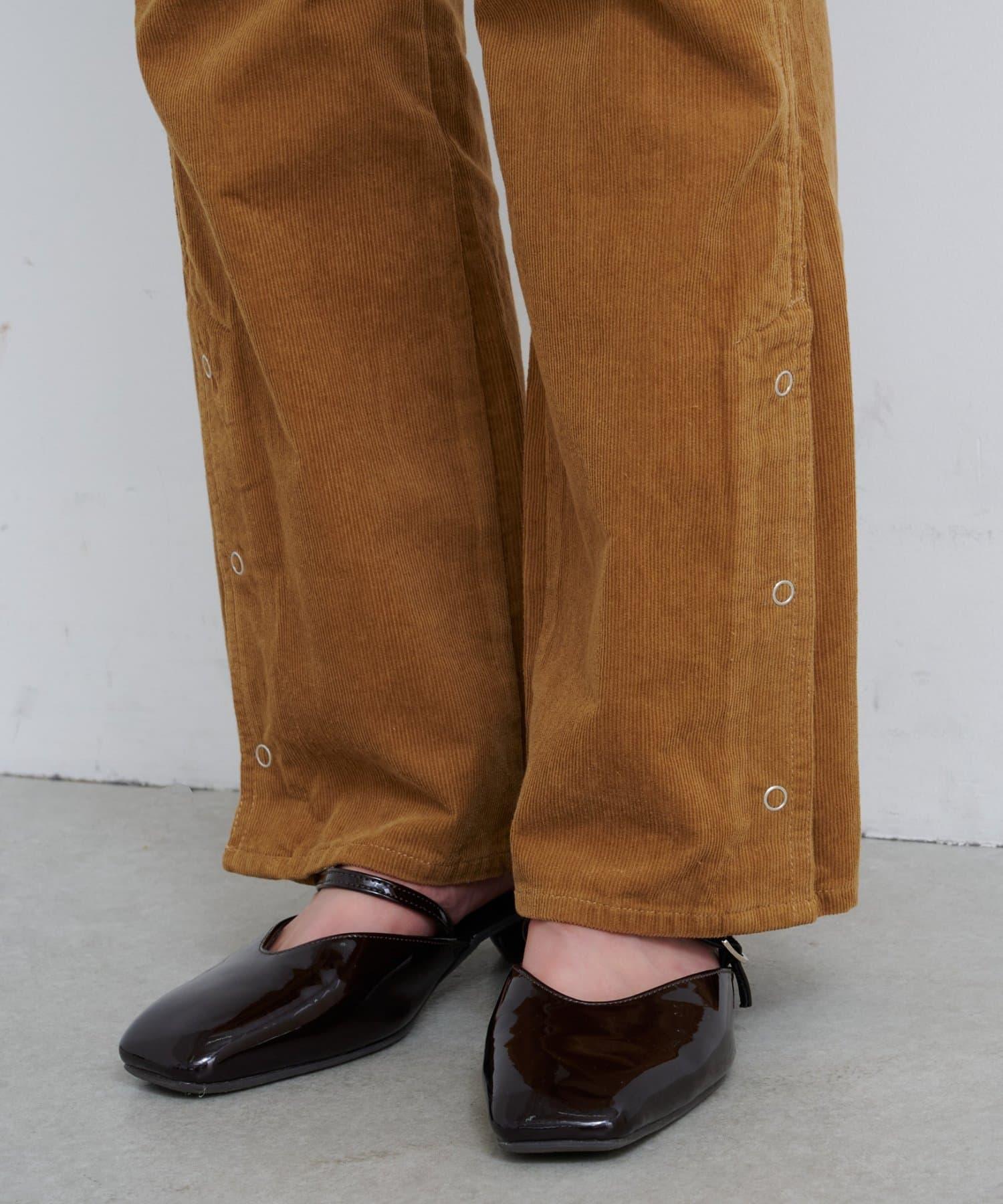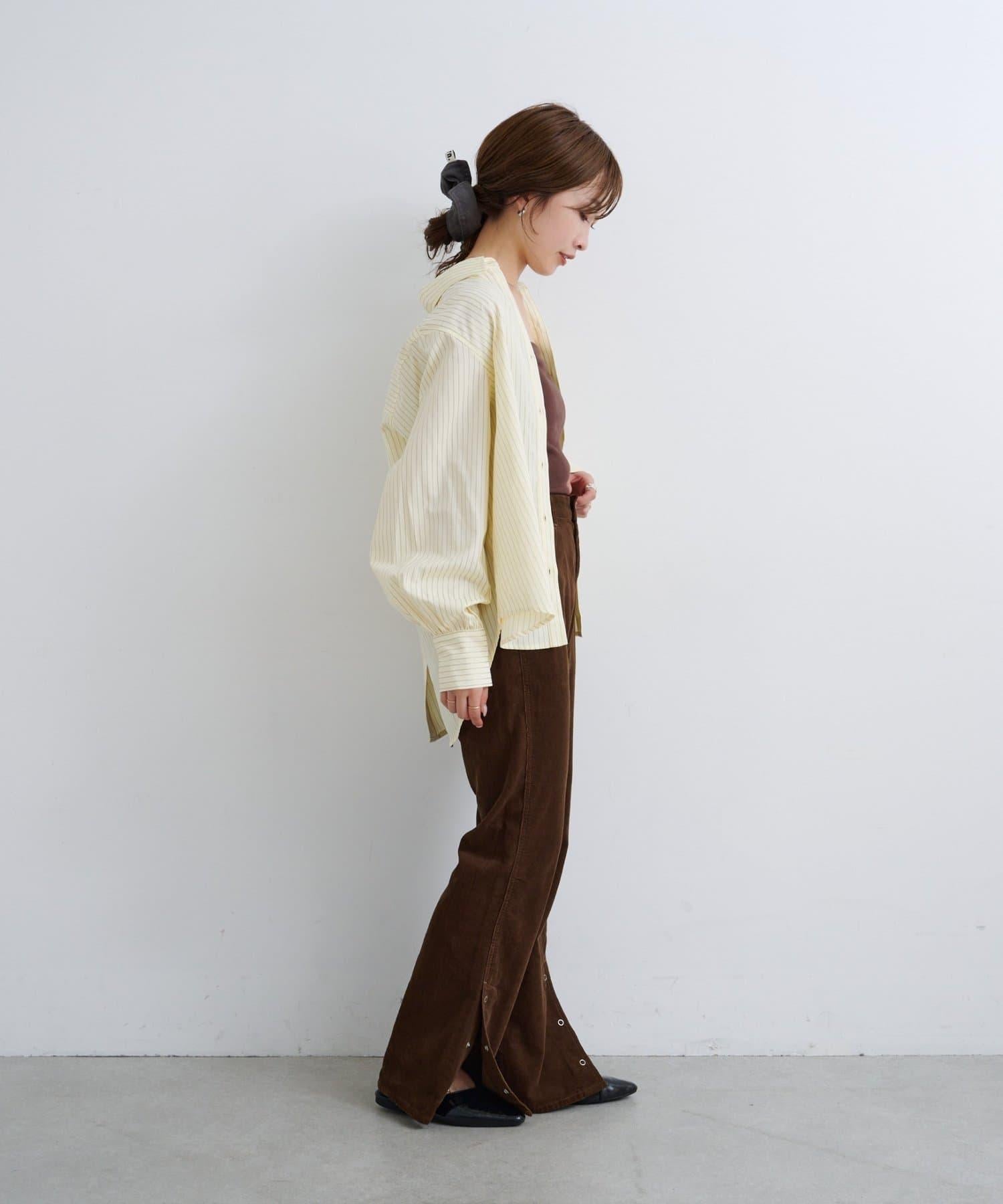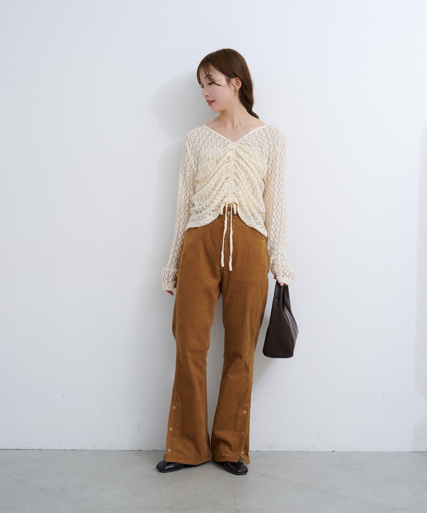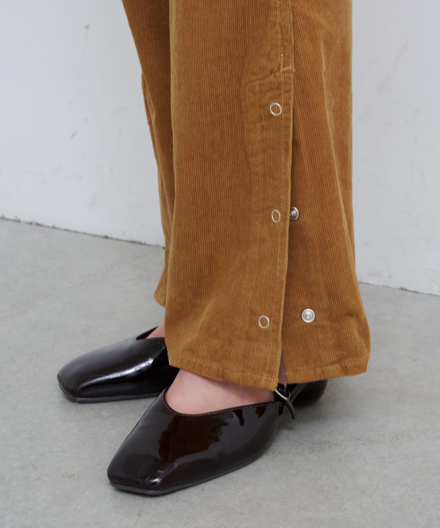 當季流行的燈芯絨長褲,開衩寬鬆,與眾不同。