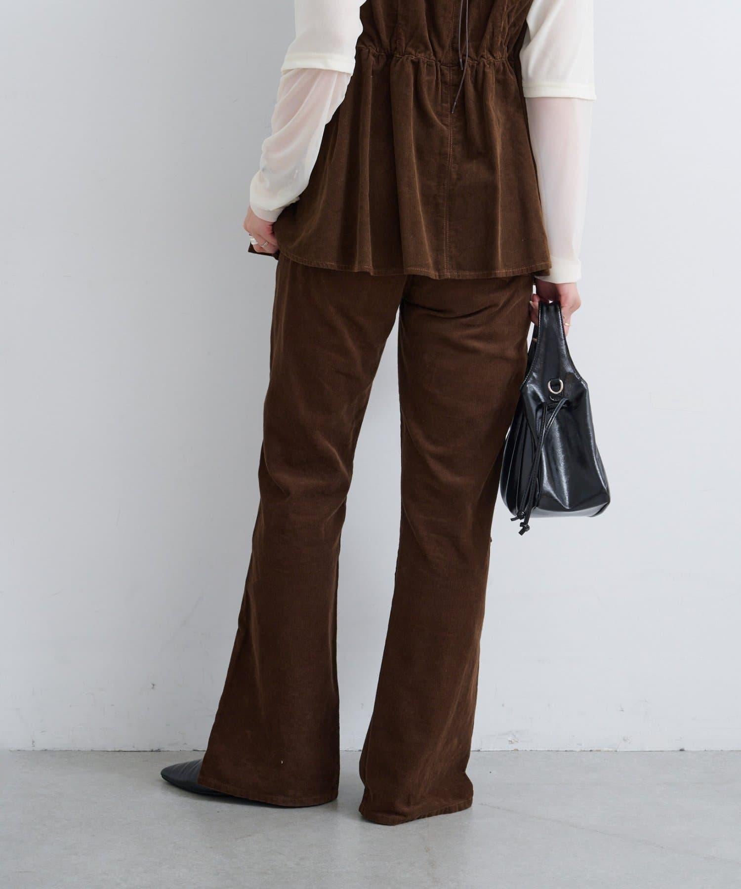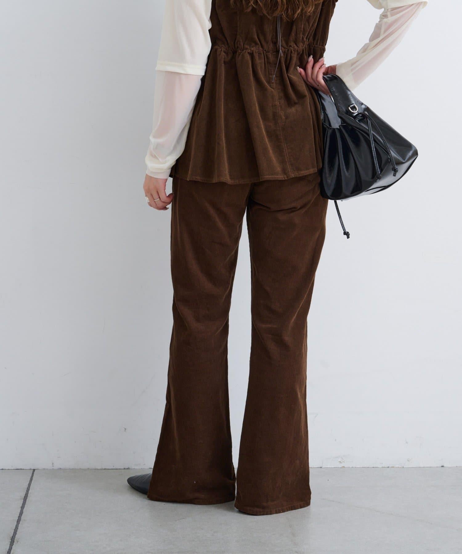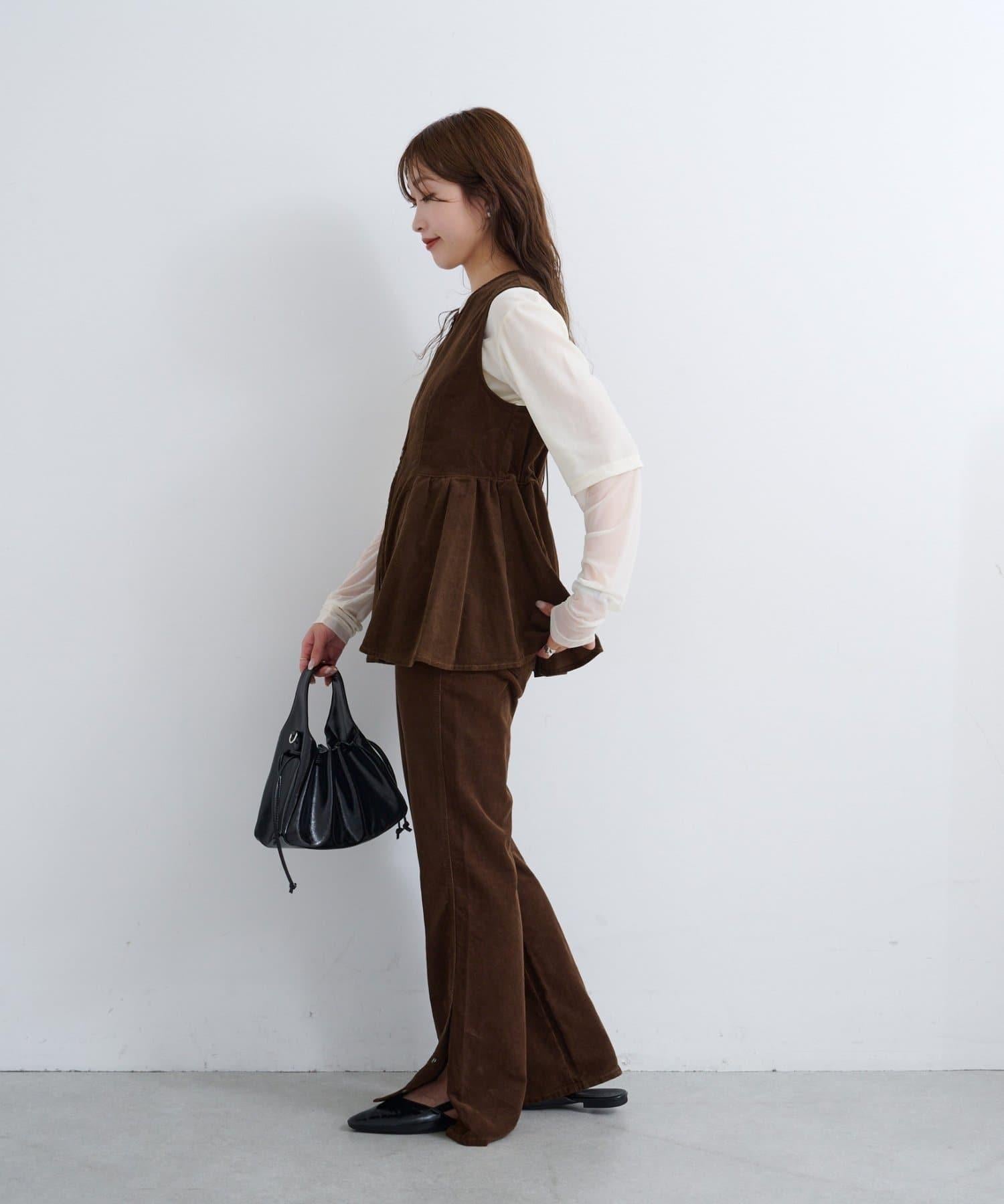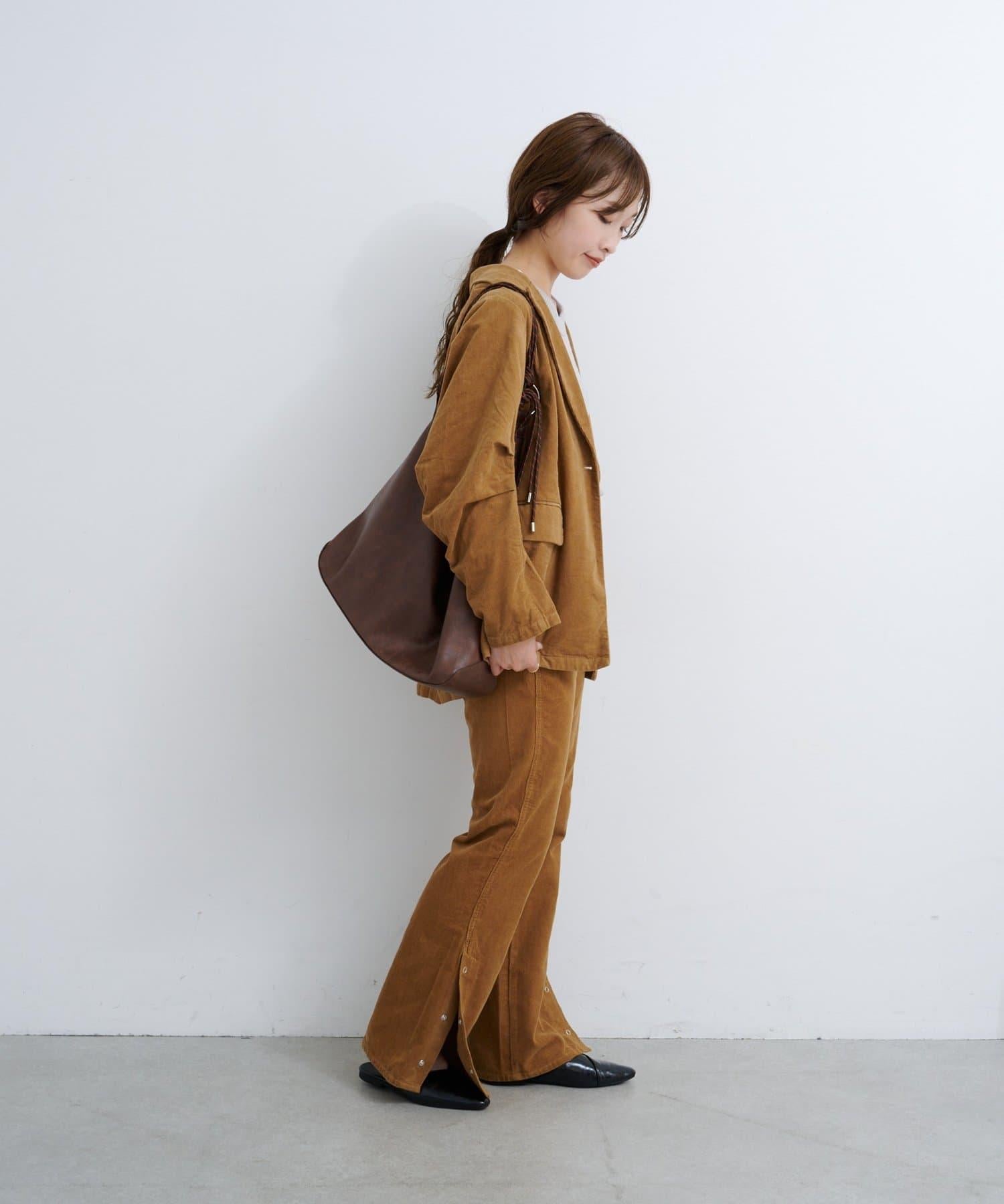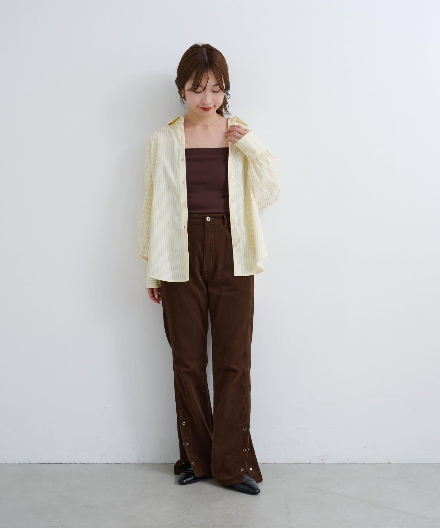 當季流行的燈芯絨長褲,開衩寬鬆,與眾不同。