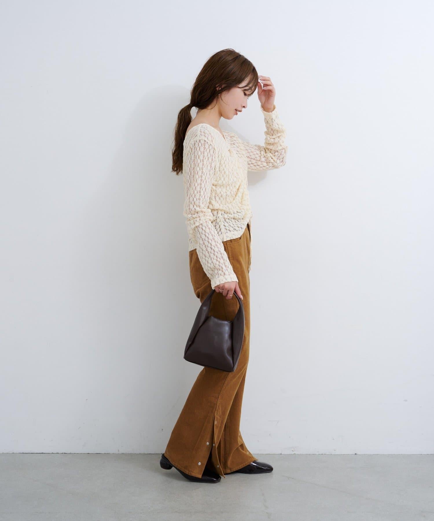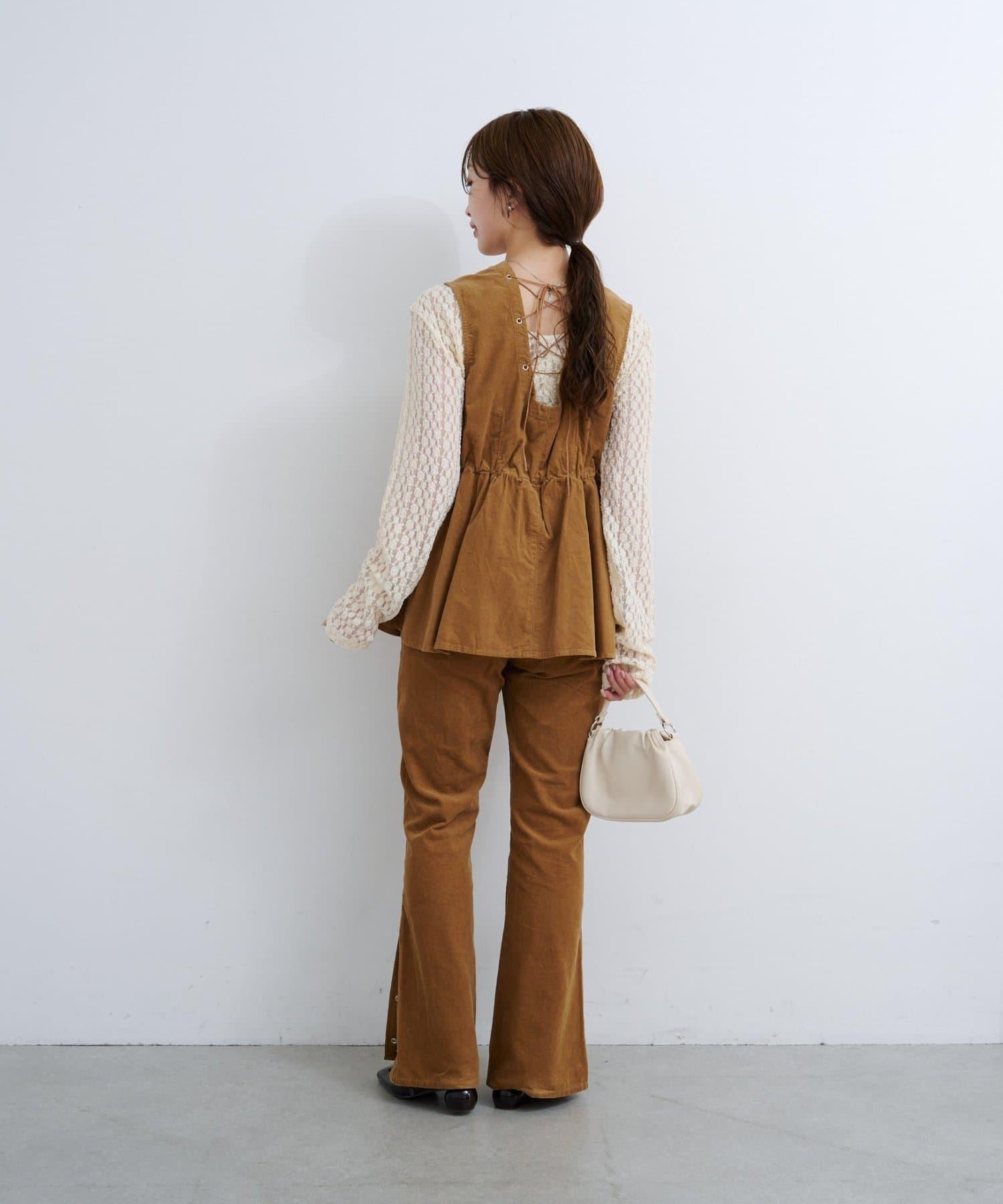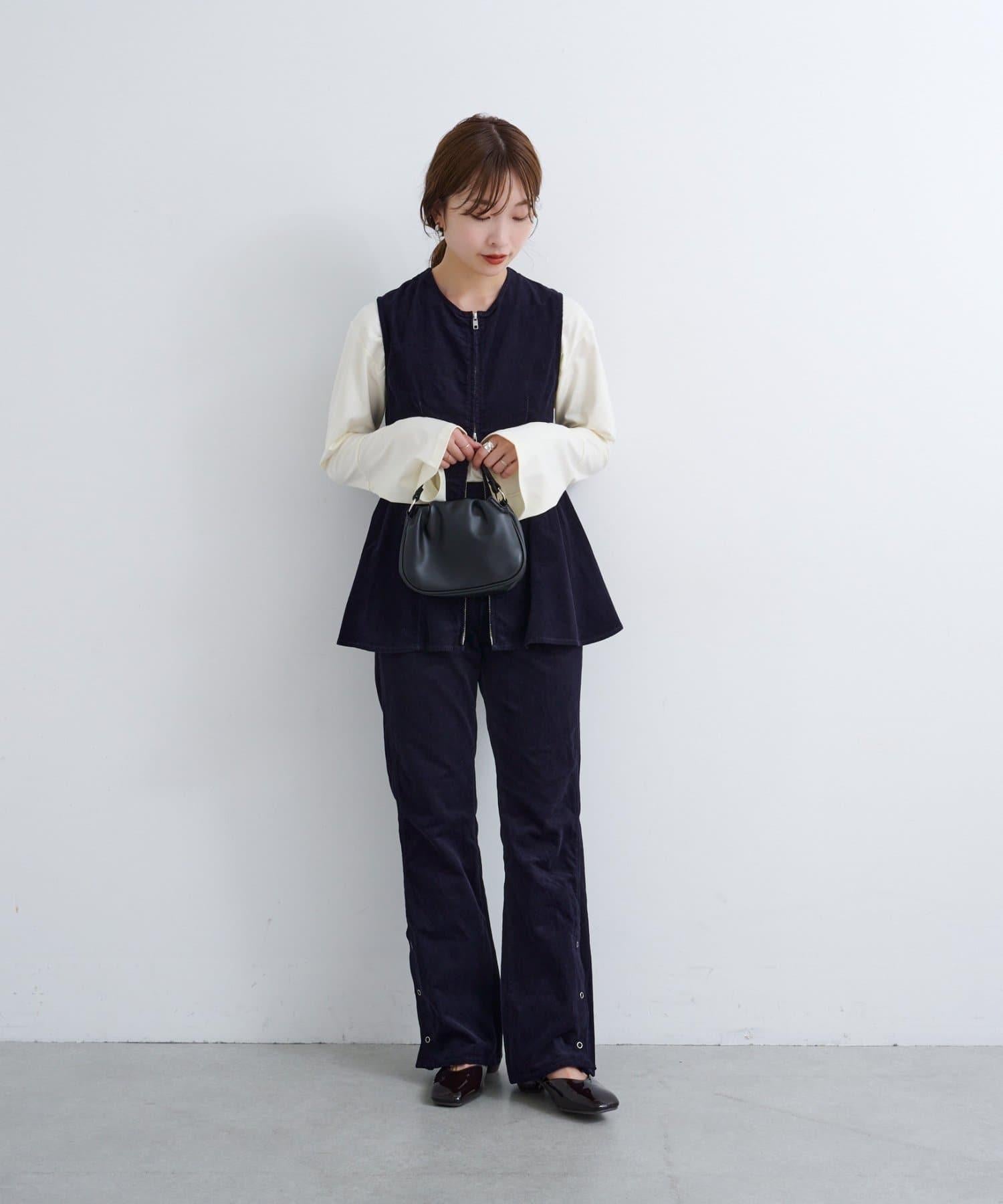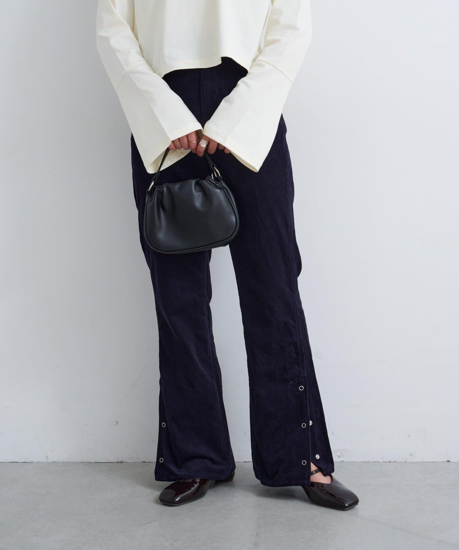 當季流行的燈芯絨長褲,開衩寬鬆,與眾不同。