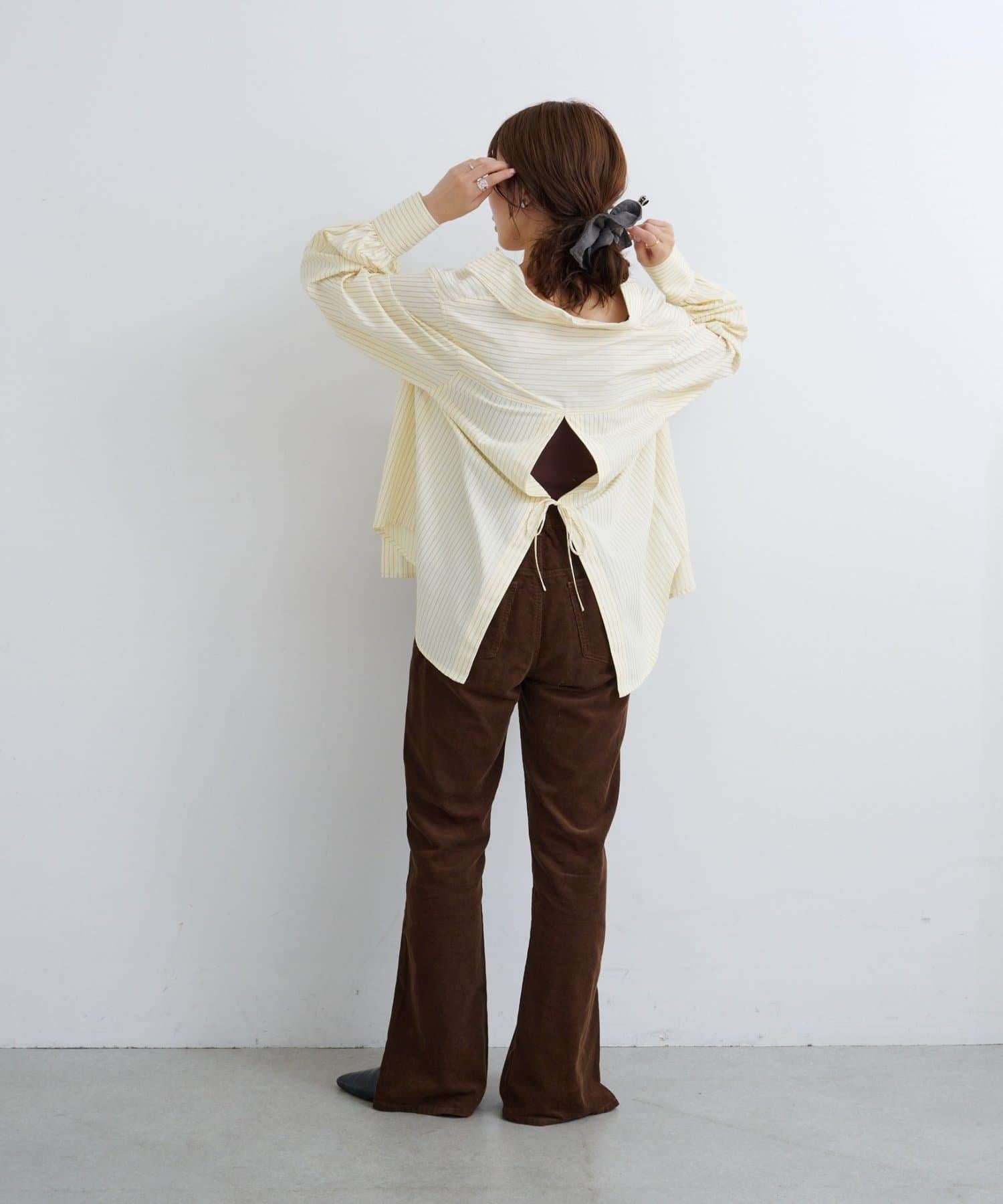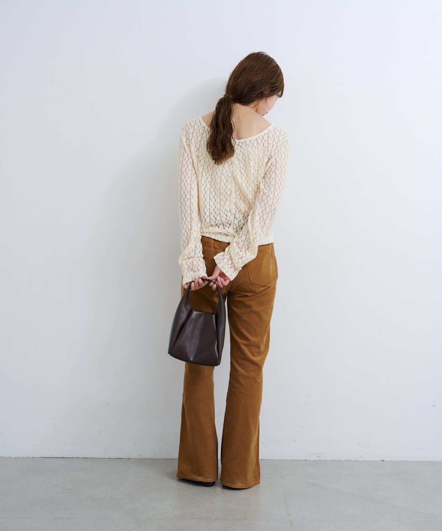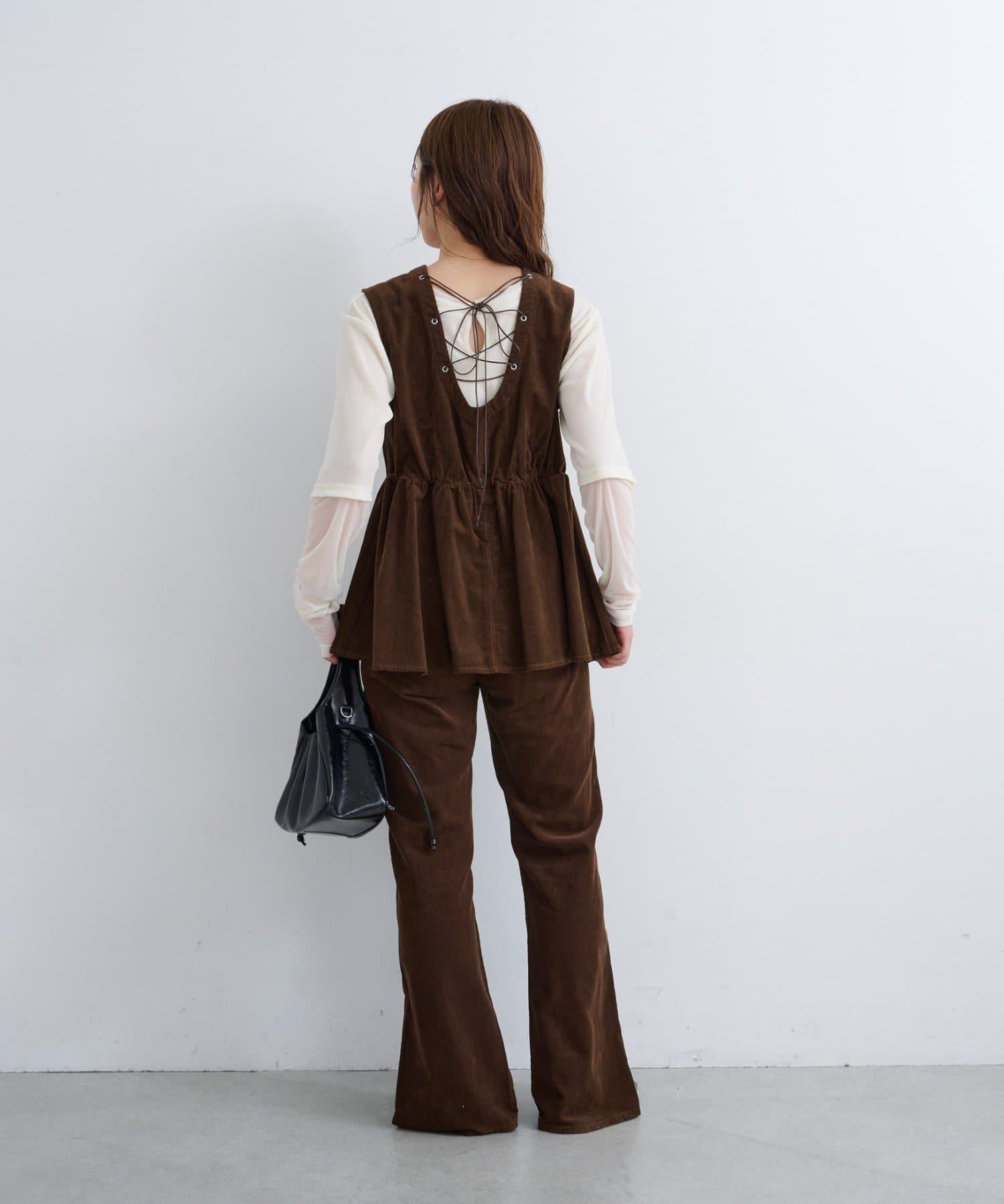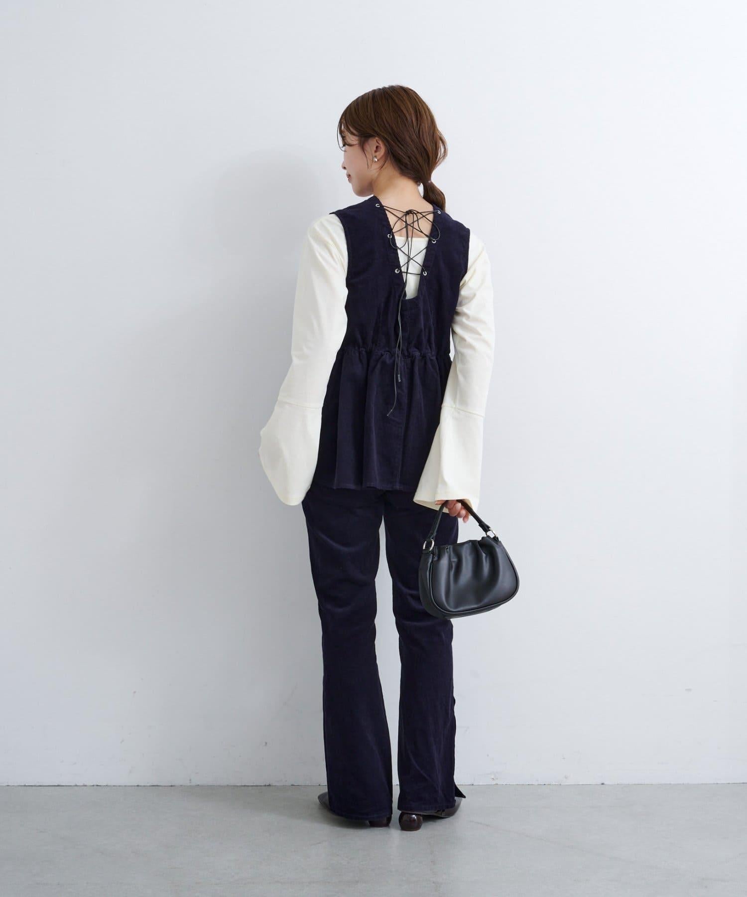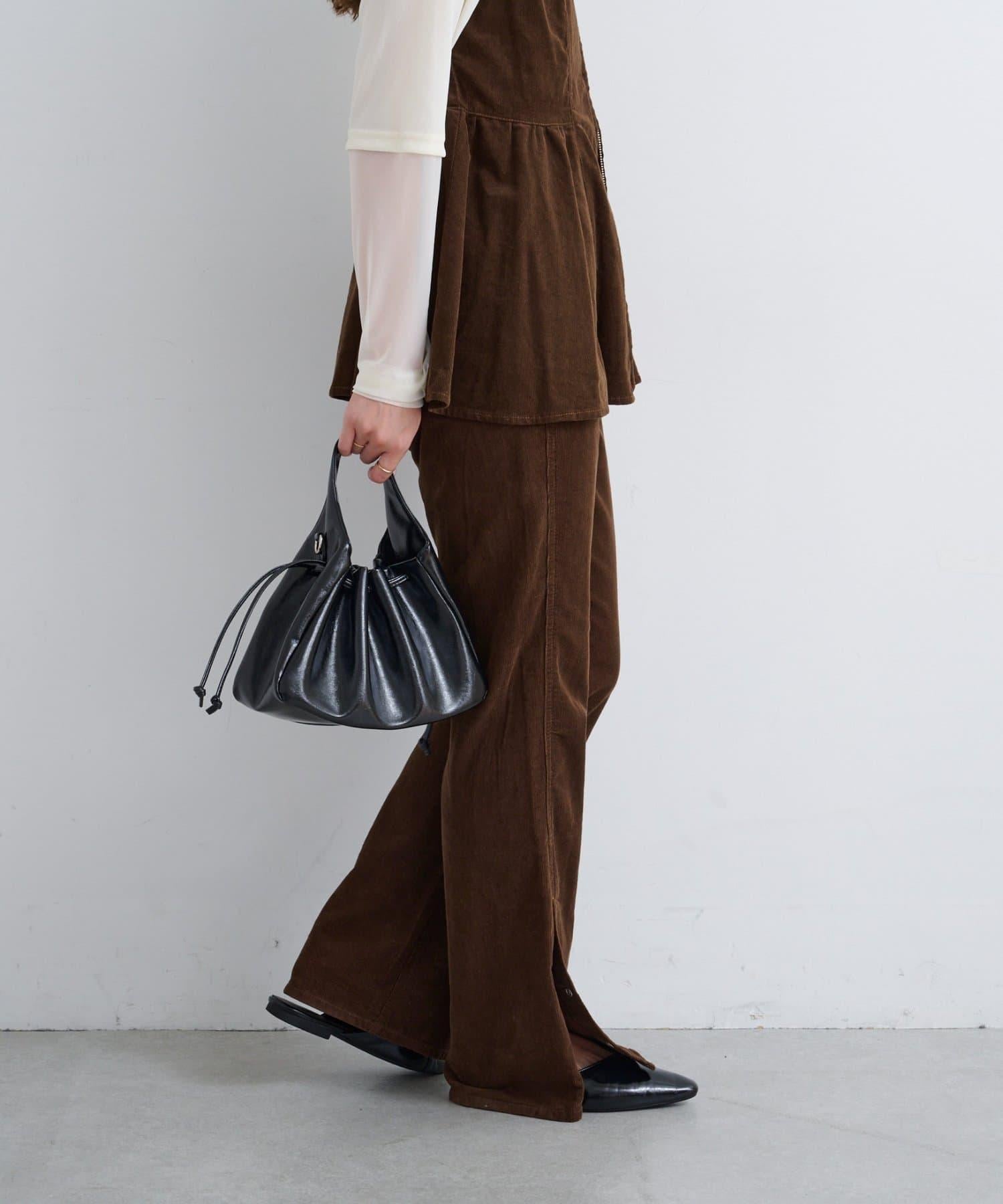 當季流行的燈芯絨長褲,開衩寬鬆,與眾不同。